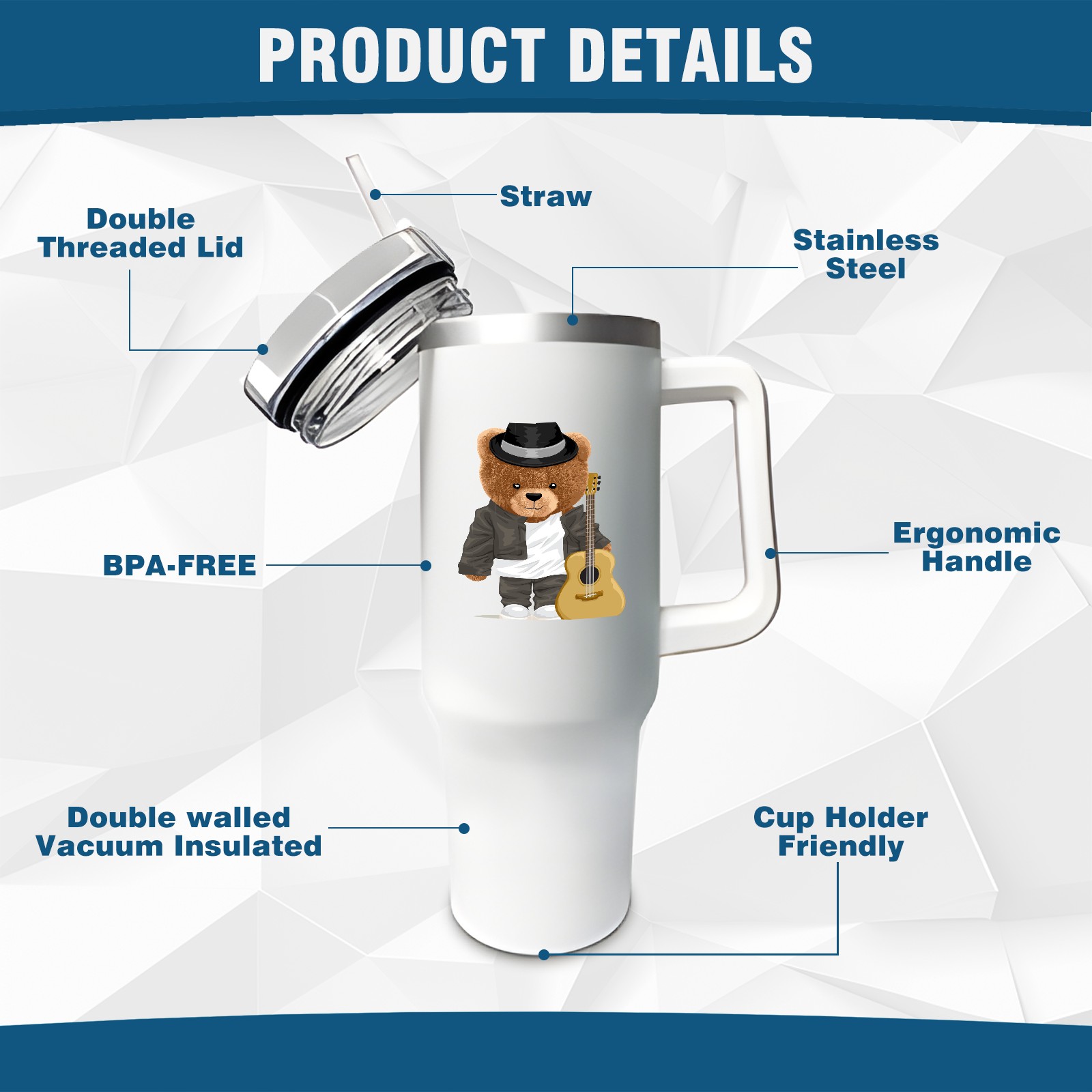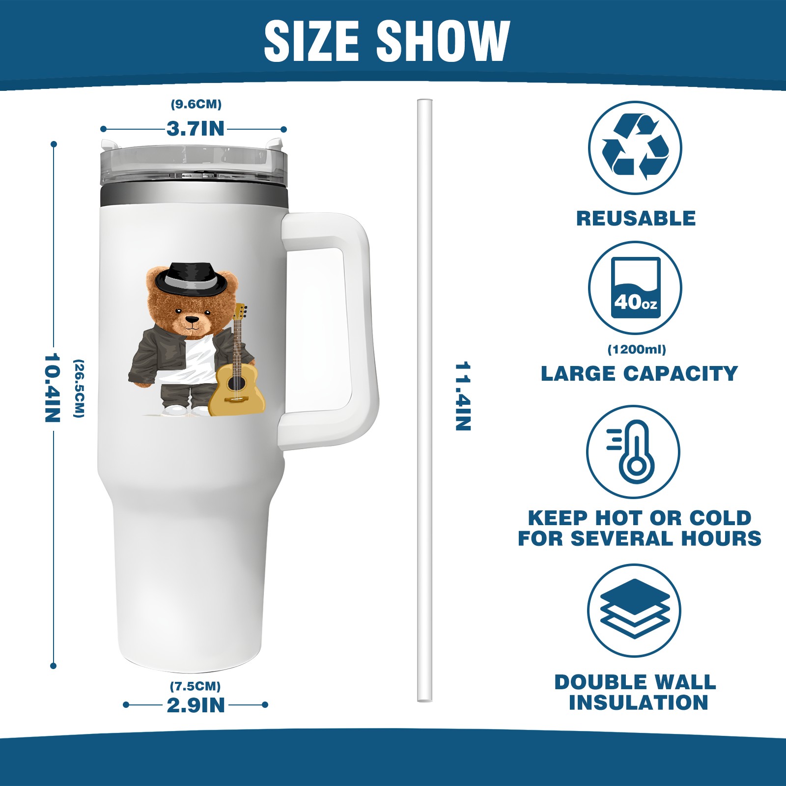 40oz Tumbler with Straw Lid , Handle& Double Wall Vacuum Insulated Cup Reusable Stainless Steel Bottle Trave Mug coffee tumblers BPA Powder Coated Music (2)