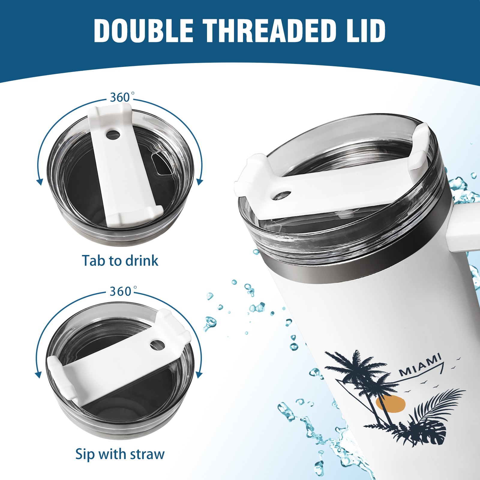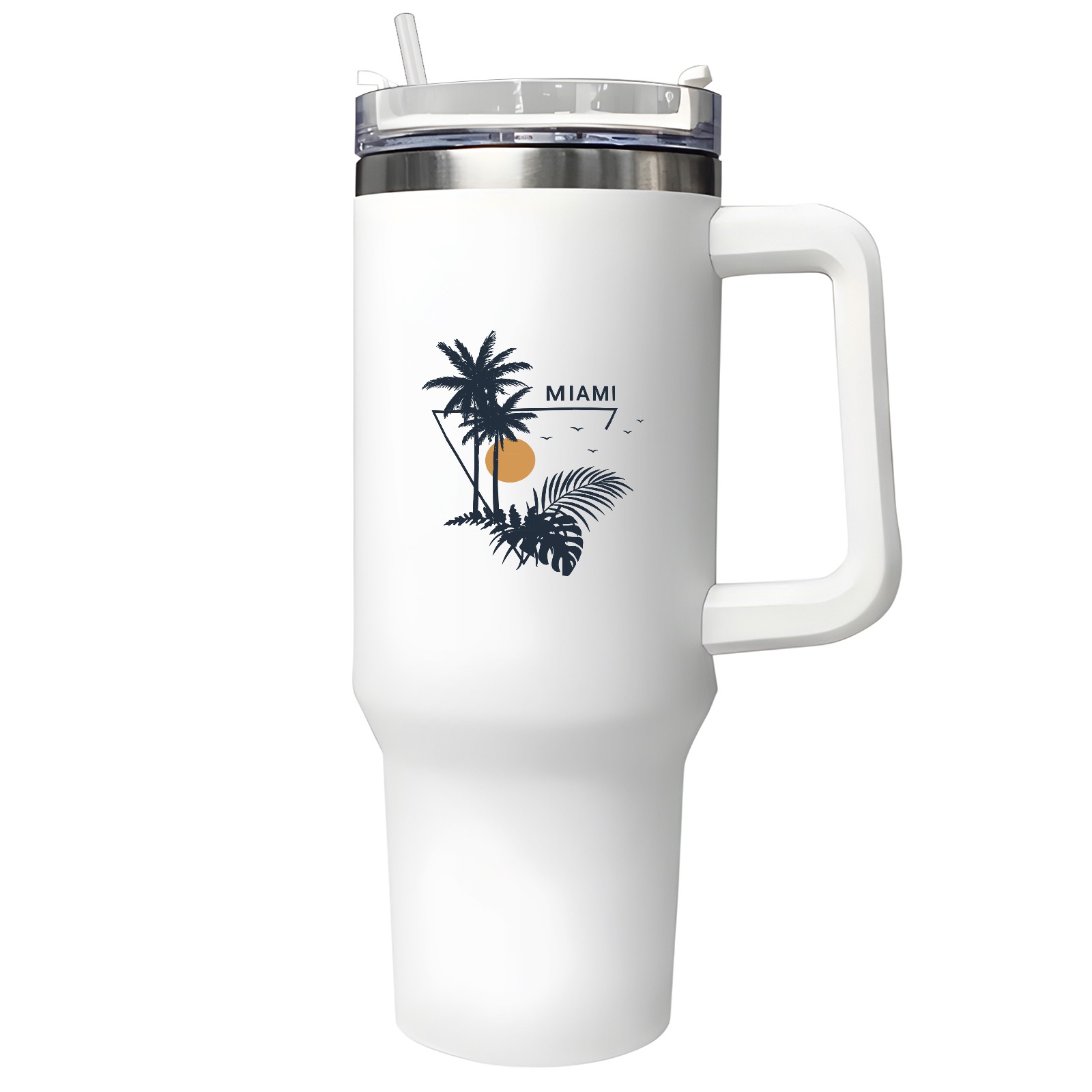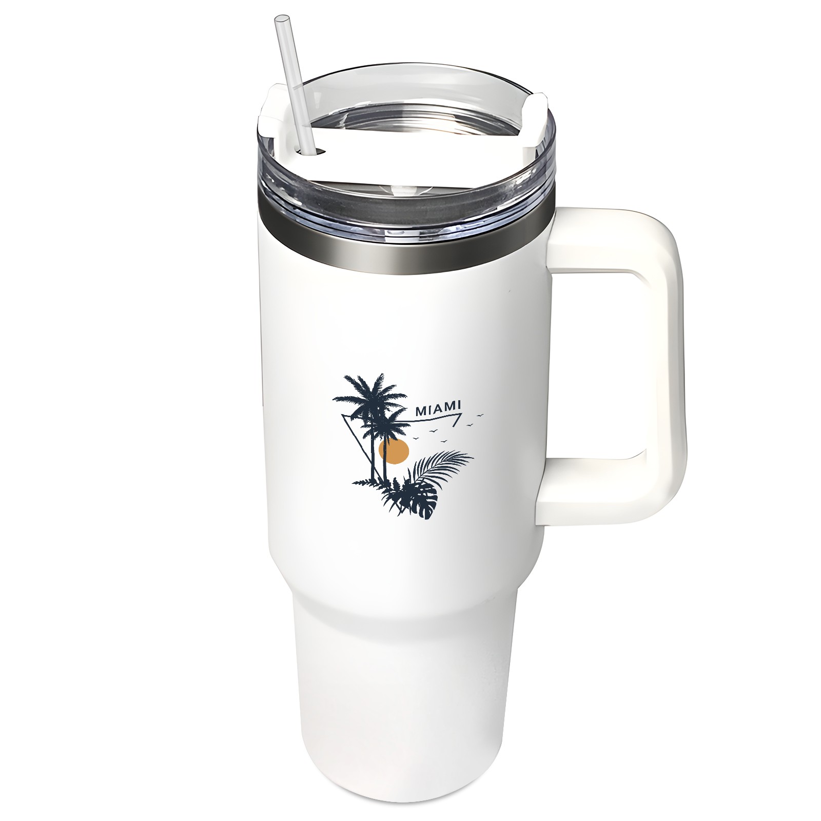 40oz Tumbler with Straw Lid , Handle& Double Wall Vacuum Insulated Cup Reusable Stainless Steel Bottle Trave Mug coffee tumblers BPA Powder Coated Miami
