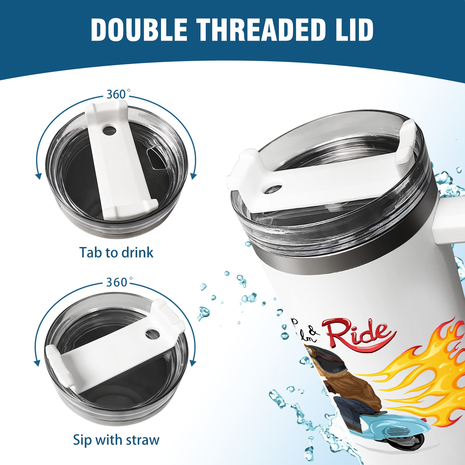 <b>ZXIVGOQFR Tumbler Is Your Dream Cup! </b>Whichever way your day flows, tumbler keeps you refreshed with fewer refills. </br> </br> ●<b>Double Wall Vacuum Insulation </b>means drinks stay cold, iced or hot for hours. </br> ●With advanced lid construction,STRAW OPENING designed to resist splashes with a seal that holds the reusable straw in place, a drink opening, and a full-cover top for added leak resistance. Totally spill proof! </br> ●ZXIVGOQFR Tumbler also included an ergonomic, comfort-grip HANDLE, 40 ounce tumbler cup is 2.9” wide at the base and 3.7” at the top. Narrow base fits just about any car cup holder. So you can bring a smoothie cup, iced coffee cup or extra espresso for your daily commute or weekend outing.