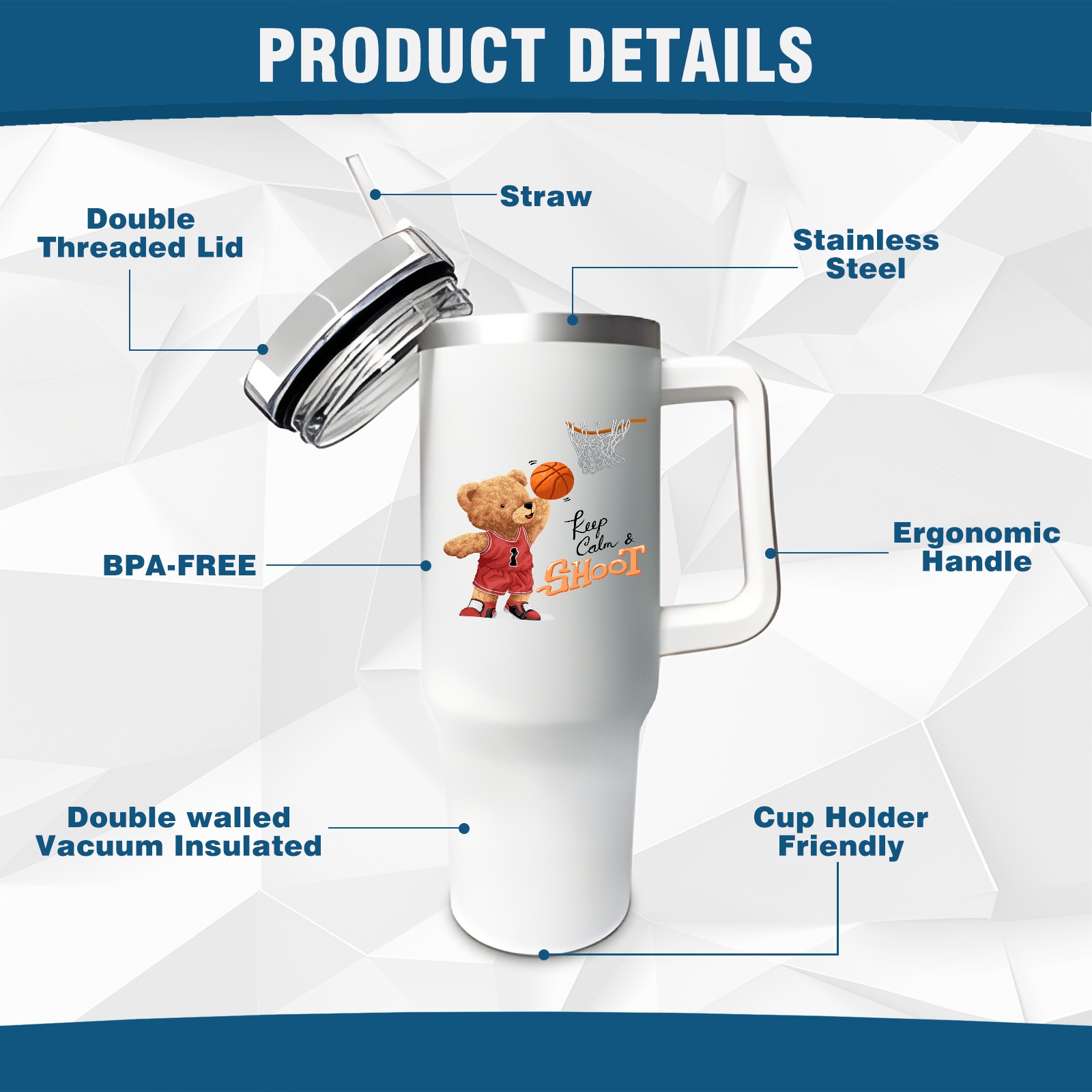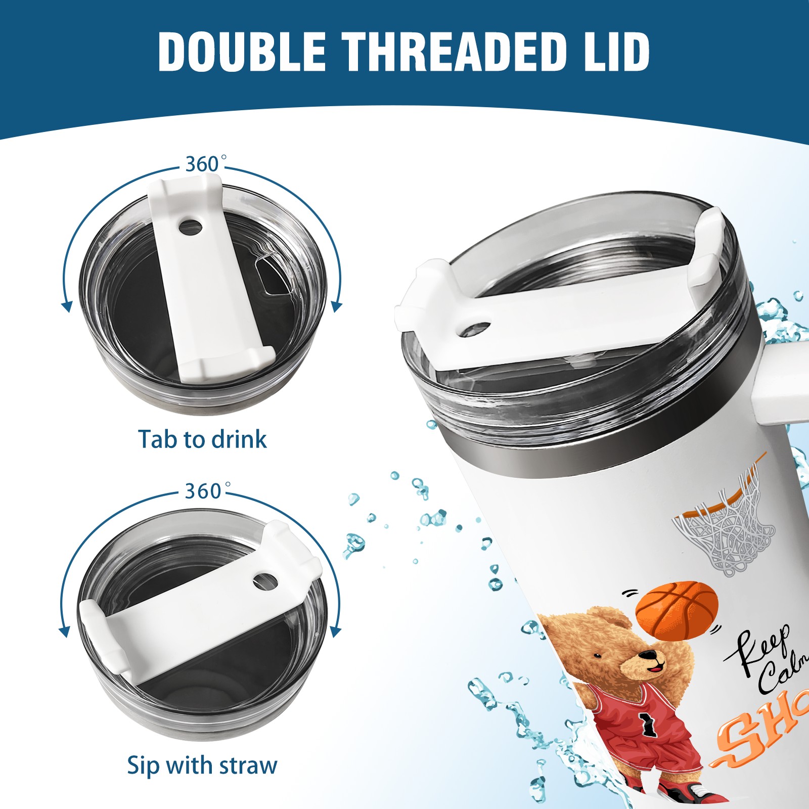 <b>ZXIVGOQFR Tumbler Is Your Dream Cup! </b>Whichever way your day flows, tumbler keeps you refreshed with fewer refills. </br> </br> ●<b>Double Wall Vacuum Insulation </b>means drinks stay cold, iced or hot for hours. </br> ●With advanced lid construction,STRAW OPENING designed to resist splashes with a seal that holds the reusable straw in place, a drink opening, and a full-cover top for added leak resistance. Totally spill proof! </br> ●ZXIVGOQFR Tumbler also included an ergonomic, comfort-grip HANDLE, 40 ounce tumbler cup is 2.9” wide at the base and 3.7” at the top. Narrow base fits just about any car cup holder. So you can bring a smoothie cup, iced coffee cup or extra espresso for your daily commute or weekend outing.