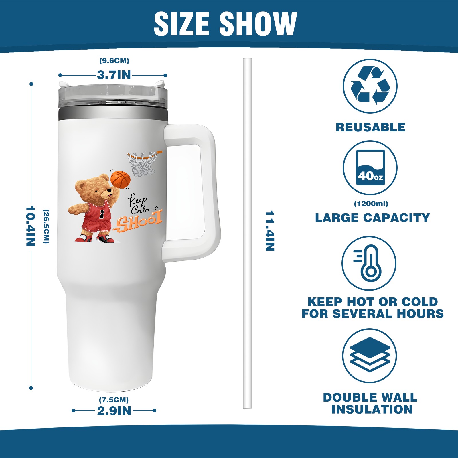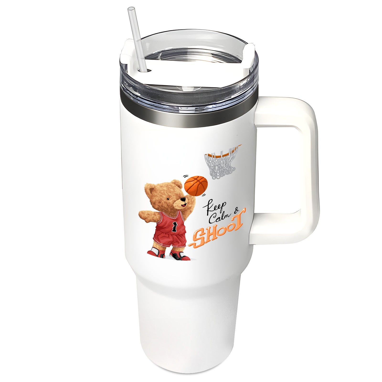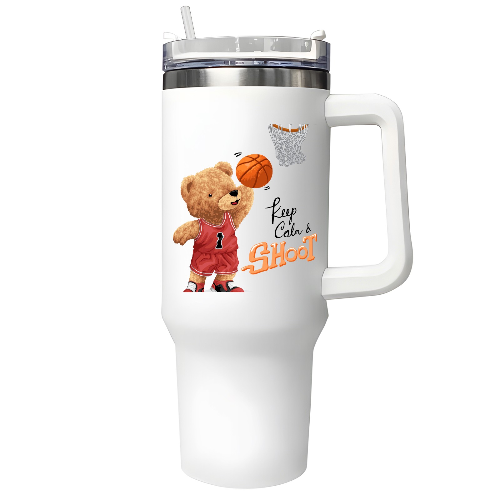 40oz Tumbler with Straw Lid , Handle& Double Wall Vacuum Insulated Cup Reusable Stainless Steel Bottle Trave Mug coffee tumblers BPA Powder Coated Keep Calm Shoot