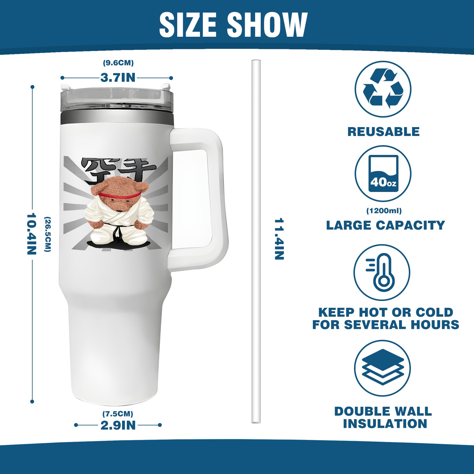 40oz Tumbler with Straw Lid , Handle& Double Wall Vacuum Insulated Cup Reusable Stainless Steel Bottle Trave Mug coffee tumblers BPA Powder Coated Karate