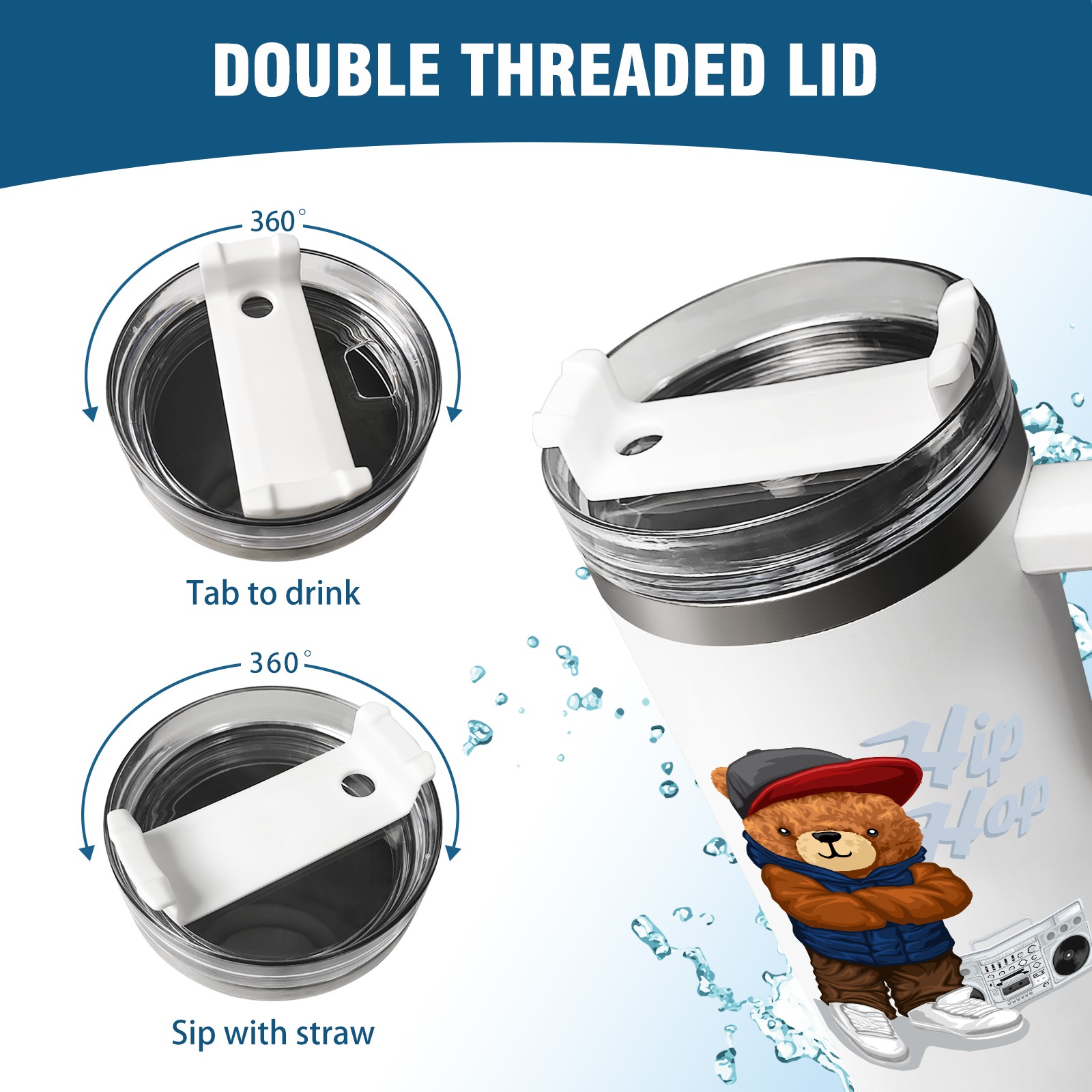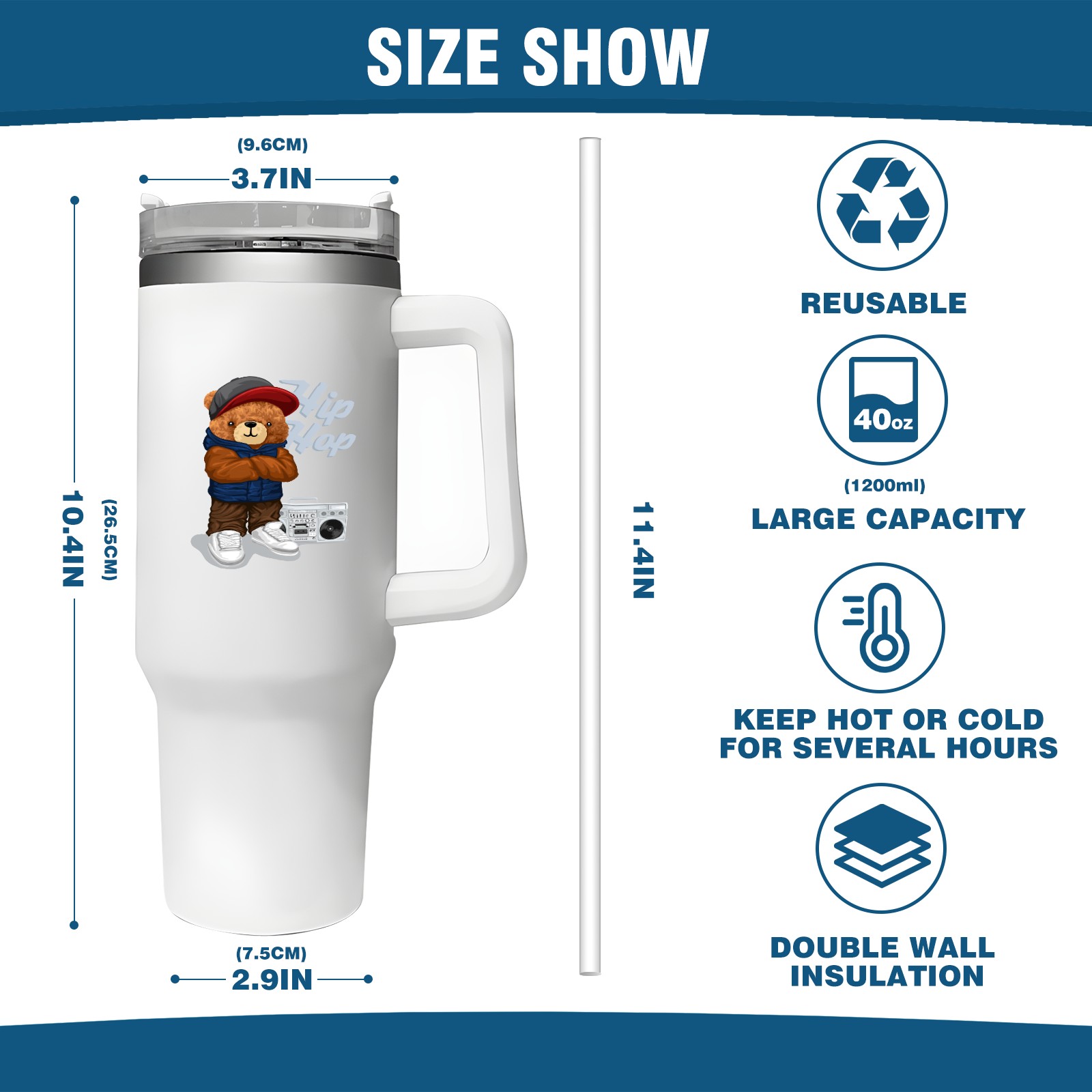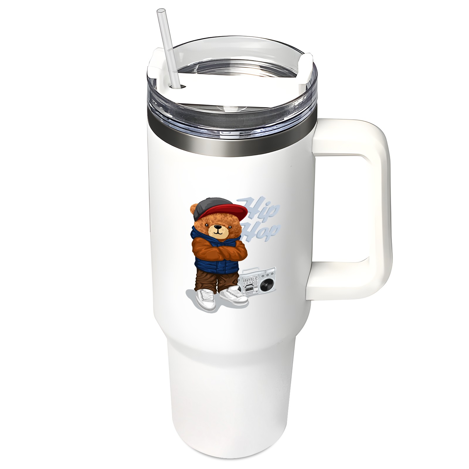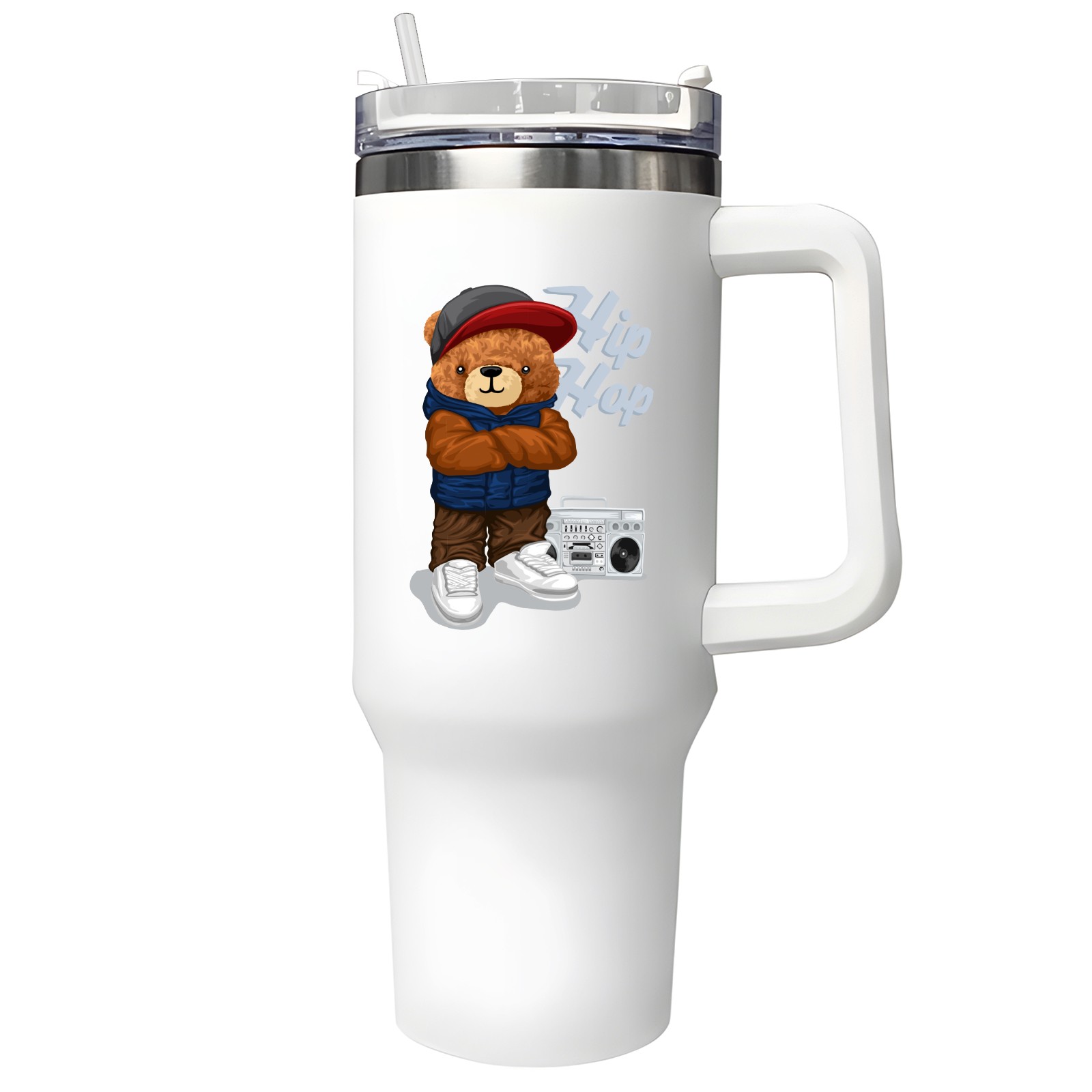 40oz Tumbler with Straw Lid , Handle& Double Wall Vacuum Insulated Cup Reusable Stainless Steel Bottle Trave Mug coffee tumblers BPA Powder Coated Hip Hop (2)
