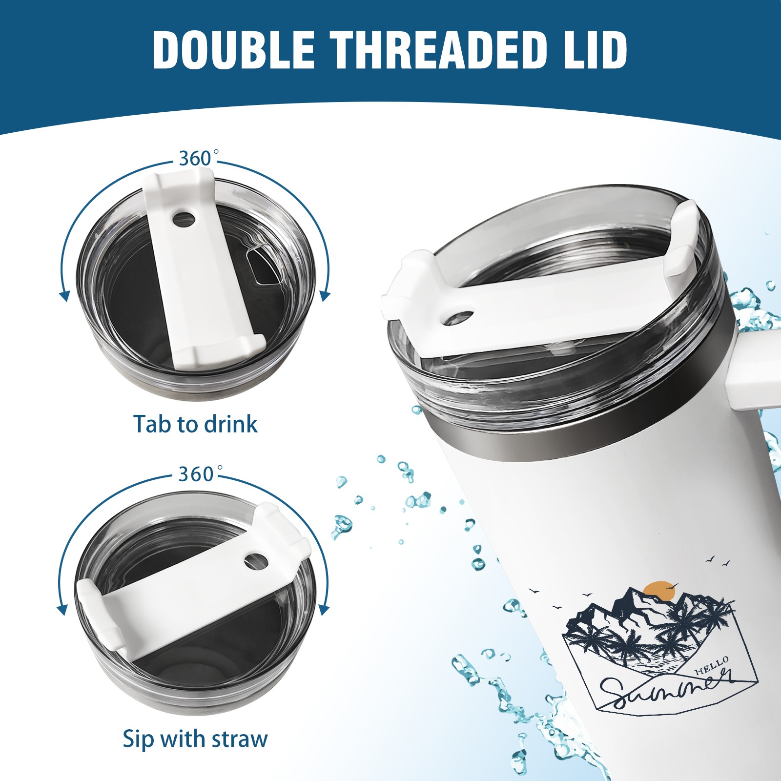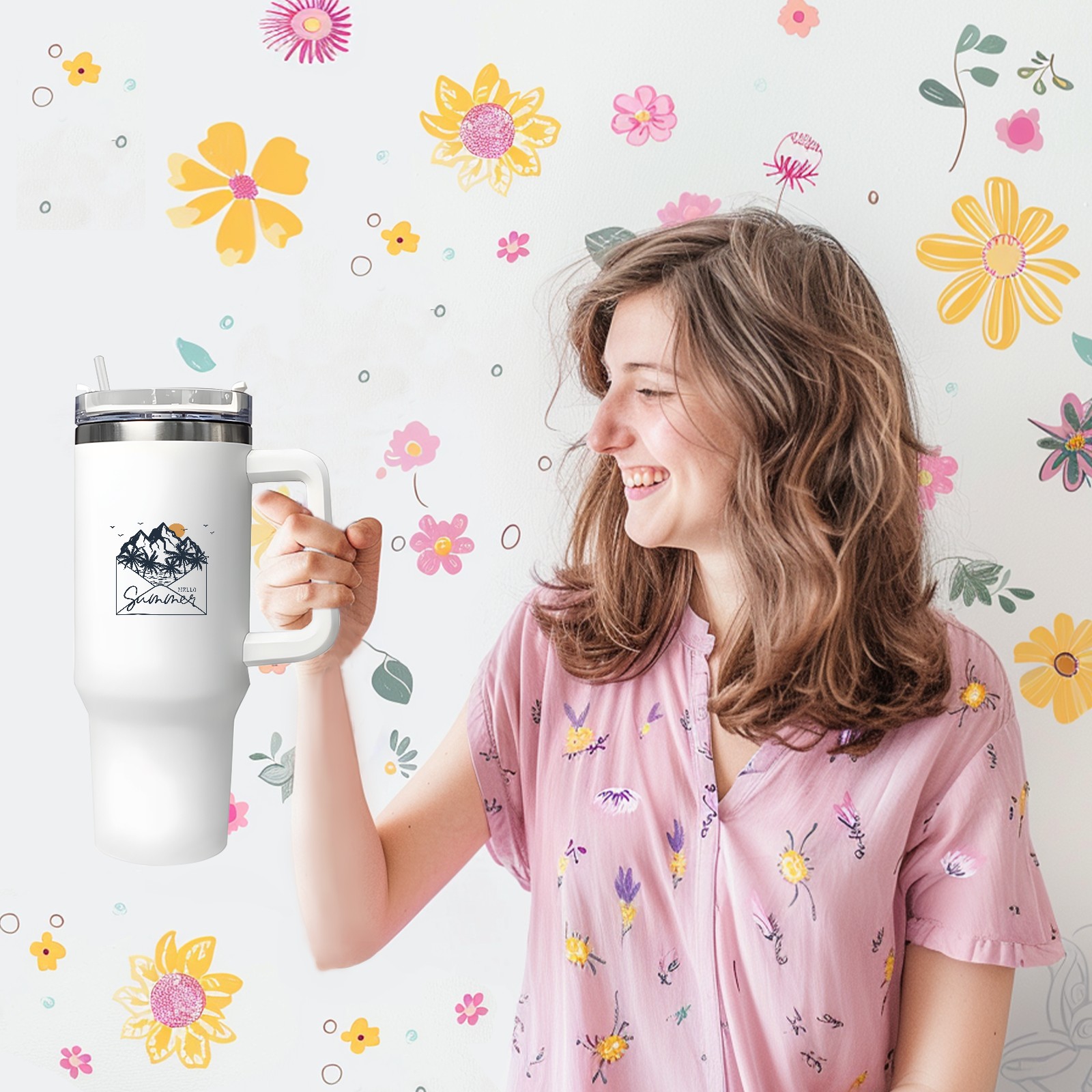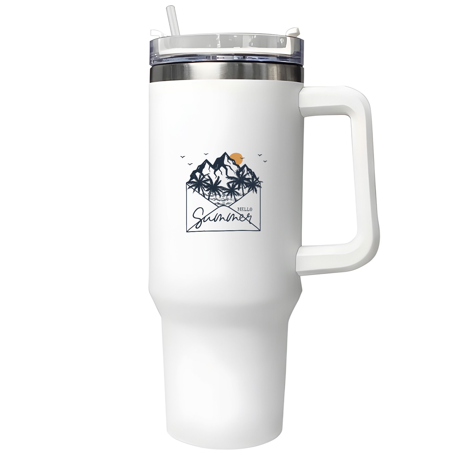 40oz Tumbler with Straw Lid , Handle& Double Wall Vacuum Insulated Cup Reusable Stainless Steel Bottle Trave Mug coffee tumblers BPA Powder Coated Hello Summer (2)