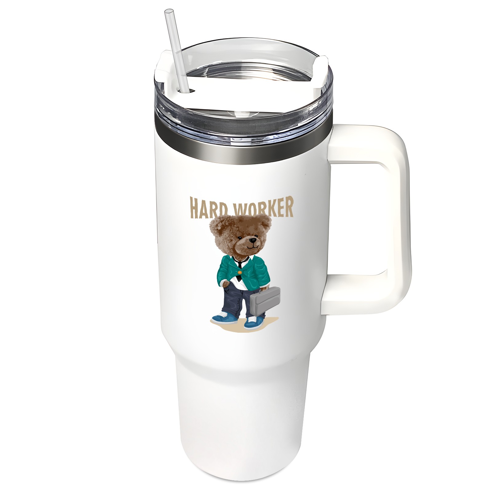 40oz Tumbler with Straw Lid , Handle& Double Wall Vacuum Insulated Cup Reusable Stainless Steel Bottle Trave Mug coffee tumblers BPA Powder Coated Haro Worker