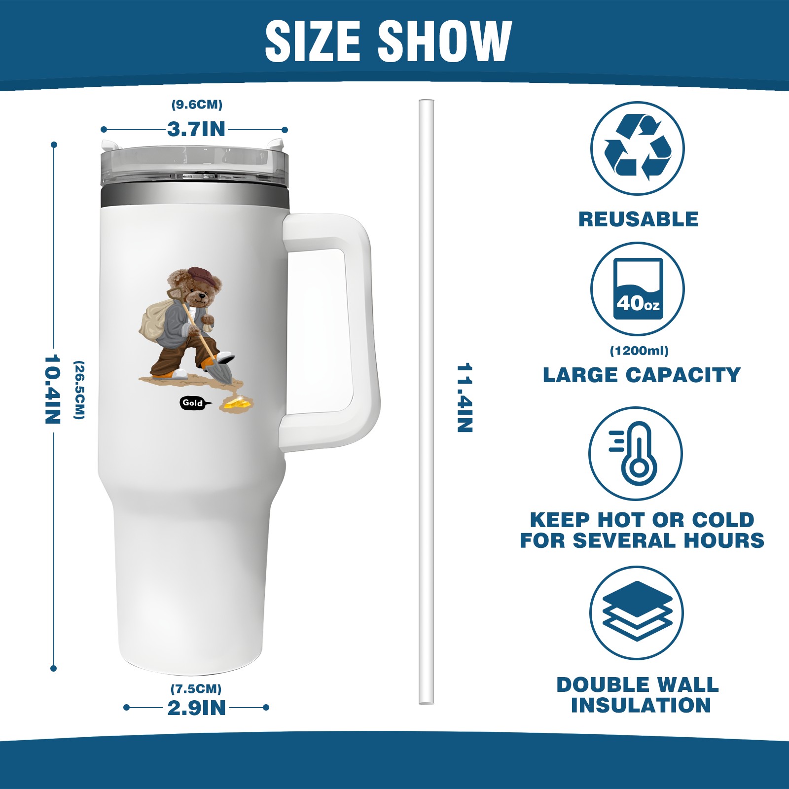 <b>ZXIVGOQFR Tumbler Is Your Dream Cup! </b>Whichever way your day flows, tumbler keeps you refreshed with fewer refills. </br> </br> ●<b>Double Wall Vacuum Insulation </b>means drinks stay cold, iced or hot for hours. </br> ●With advanced lid construction,STRAW OPENING designed to resist splashes with a seal that holds the reusable straw in place, a drink opening, and a full-cover top for added leak resistance. Totally spill proof! </br> ●ZXIVGOQFR Tumbler also included an ergonomic, comfort-grip HANDLE, 40 ounce tumbler cup is 2.9” wide at the base and 3.7” at the top. Narrow base fits just about any car cup holder. So you can bring a smoothie cup, iced coffee cup or extra espresso for your daily commute or weekend outing.