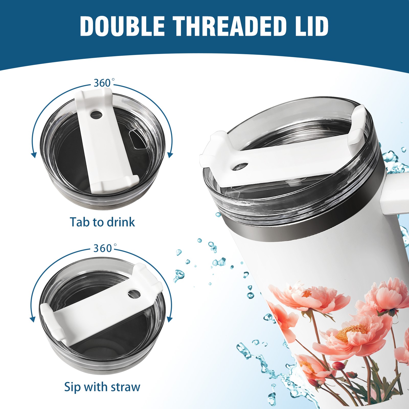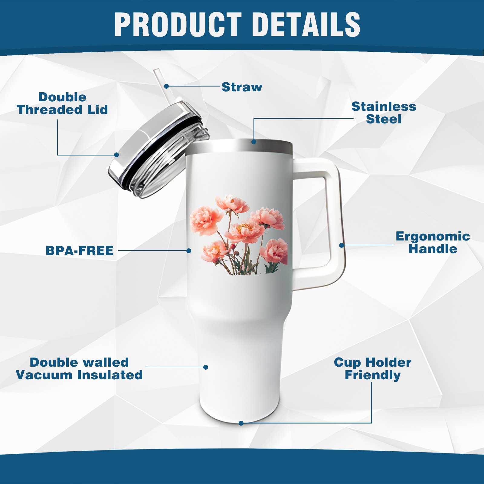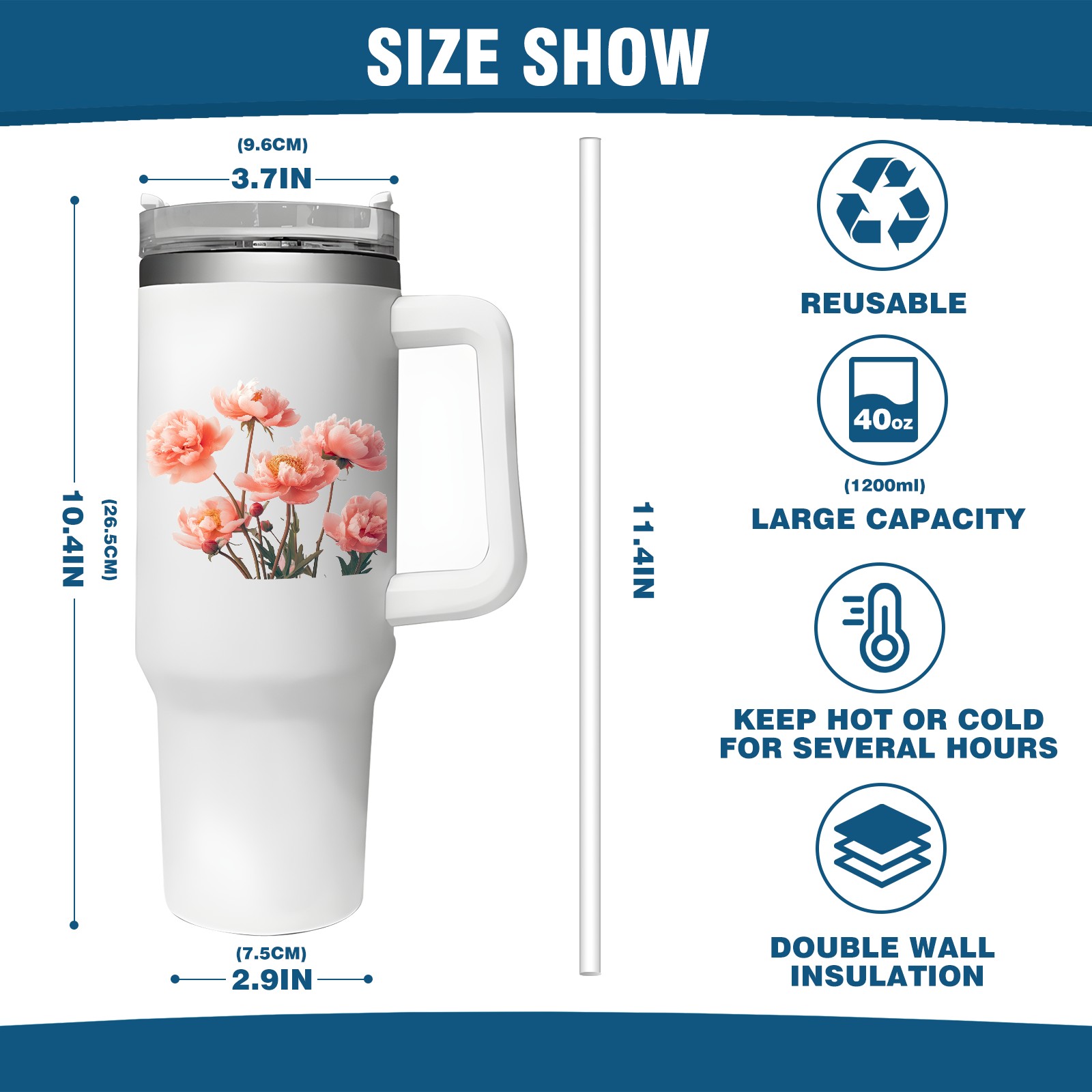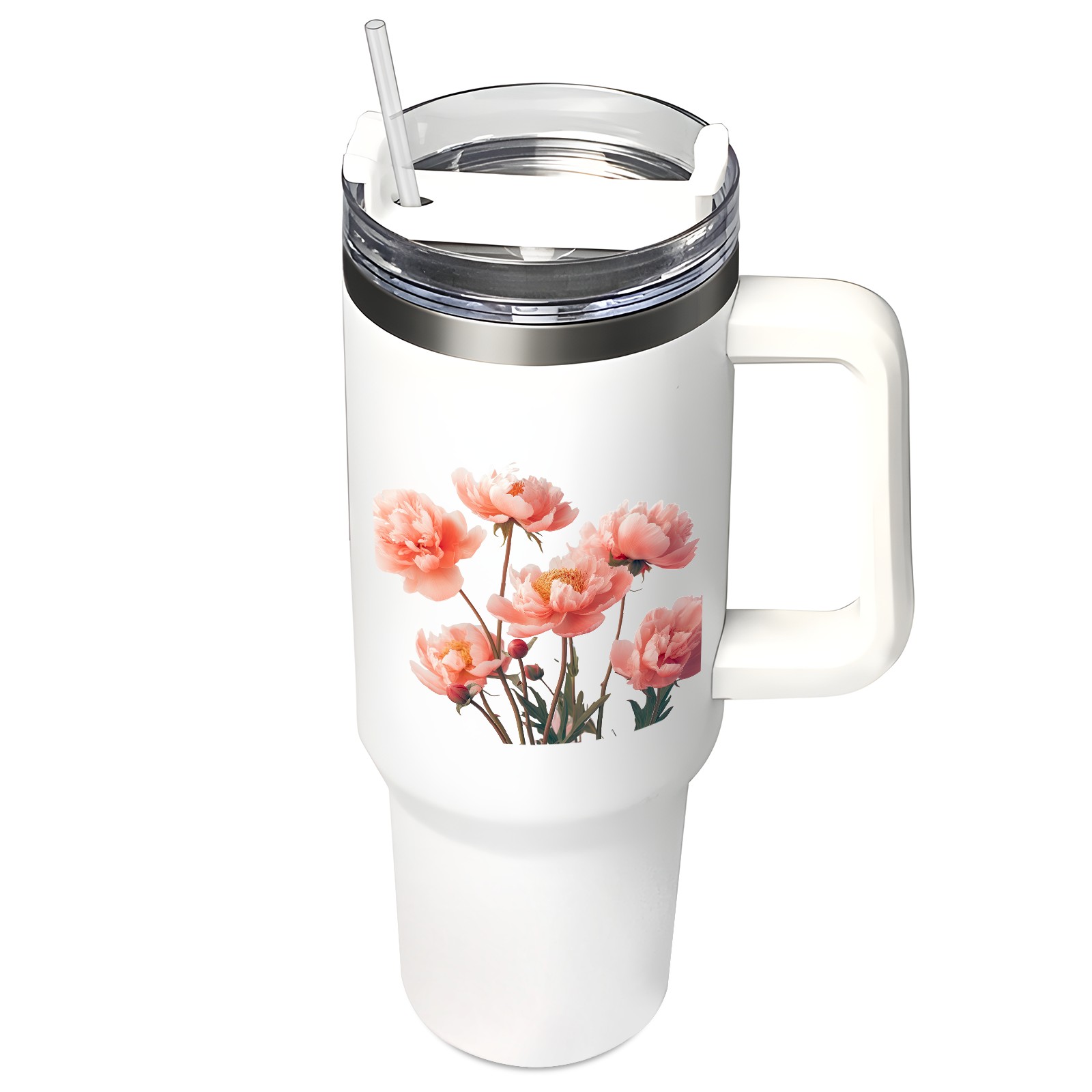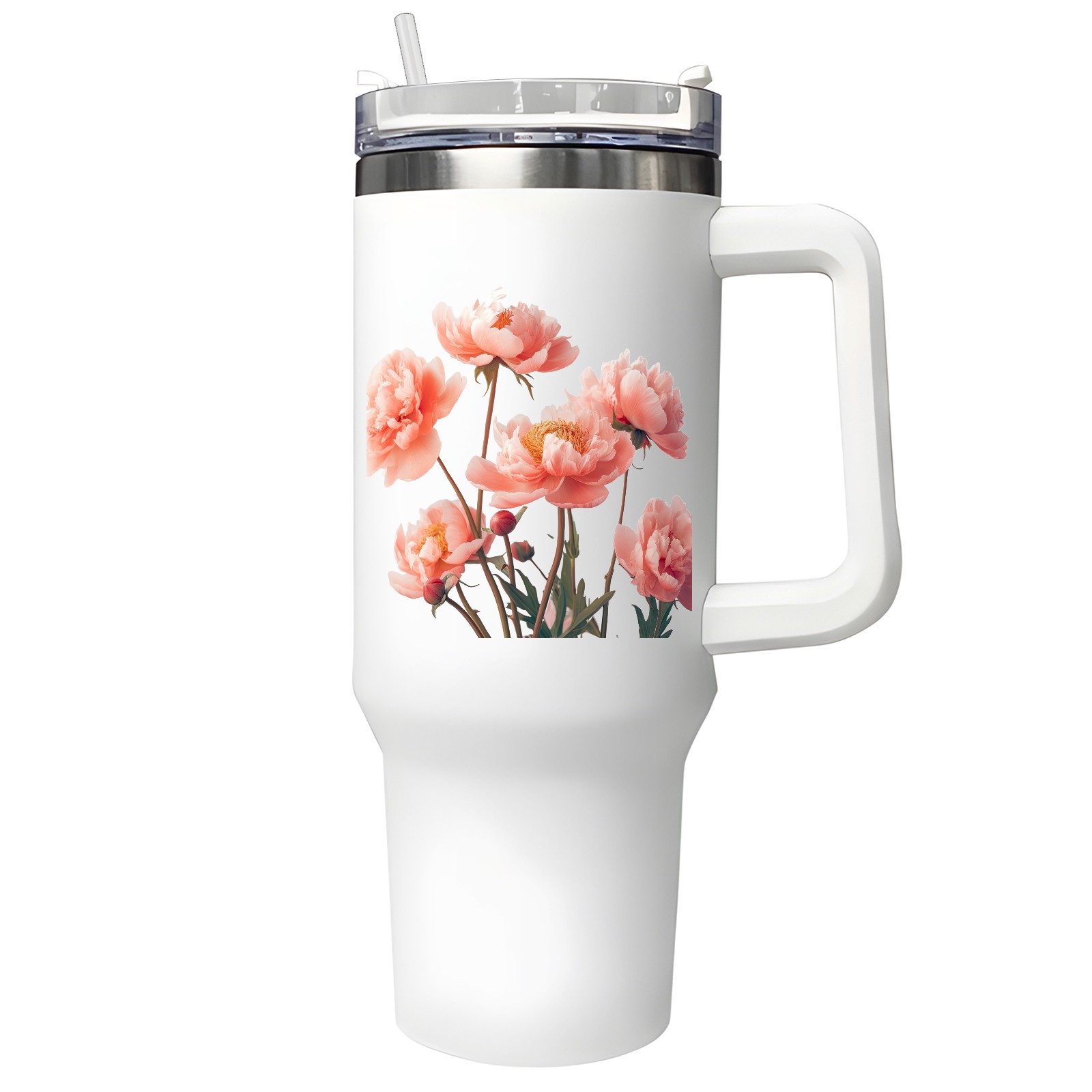 40oz Tumbler with Straw Lid , Handle& Double Wall Vacuum Insulated Cup Reusable Stainless Steel Bottle Trave Mug coffee tumblers BPA Powder Coated Flower (208)