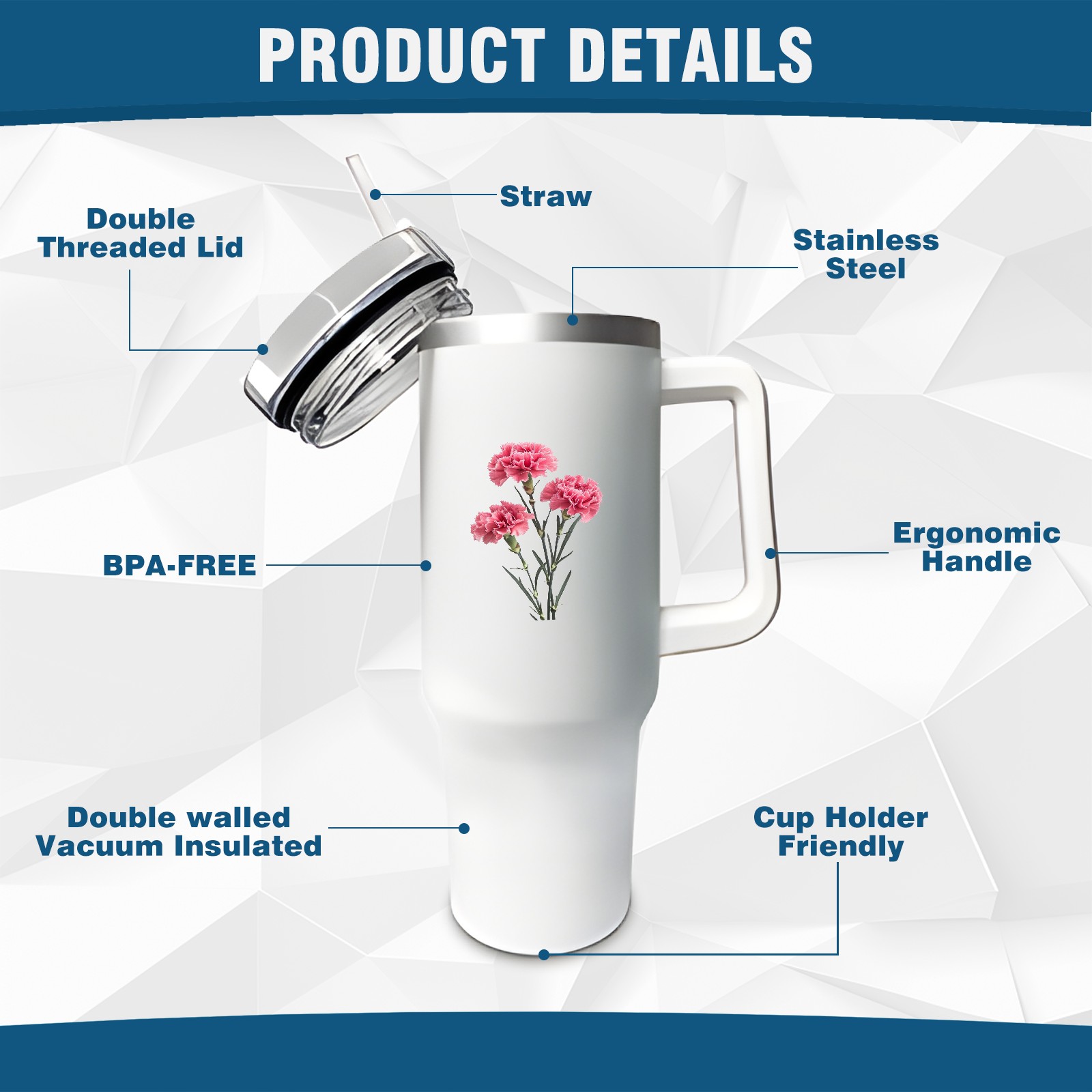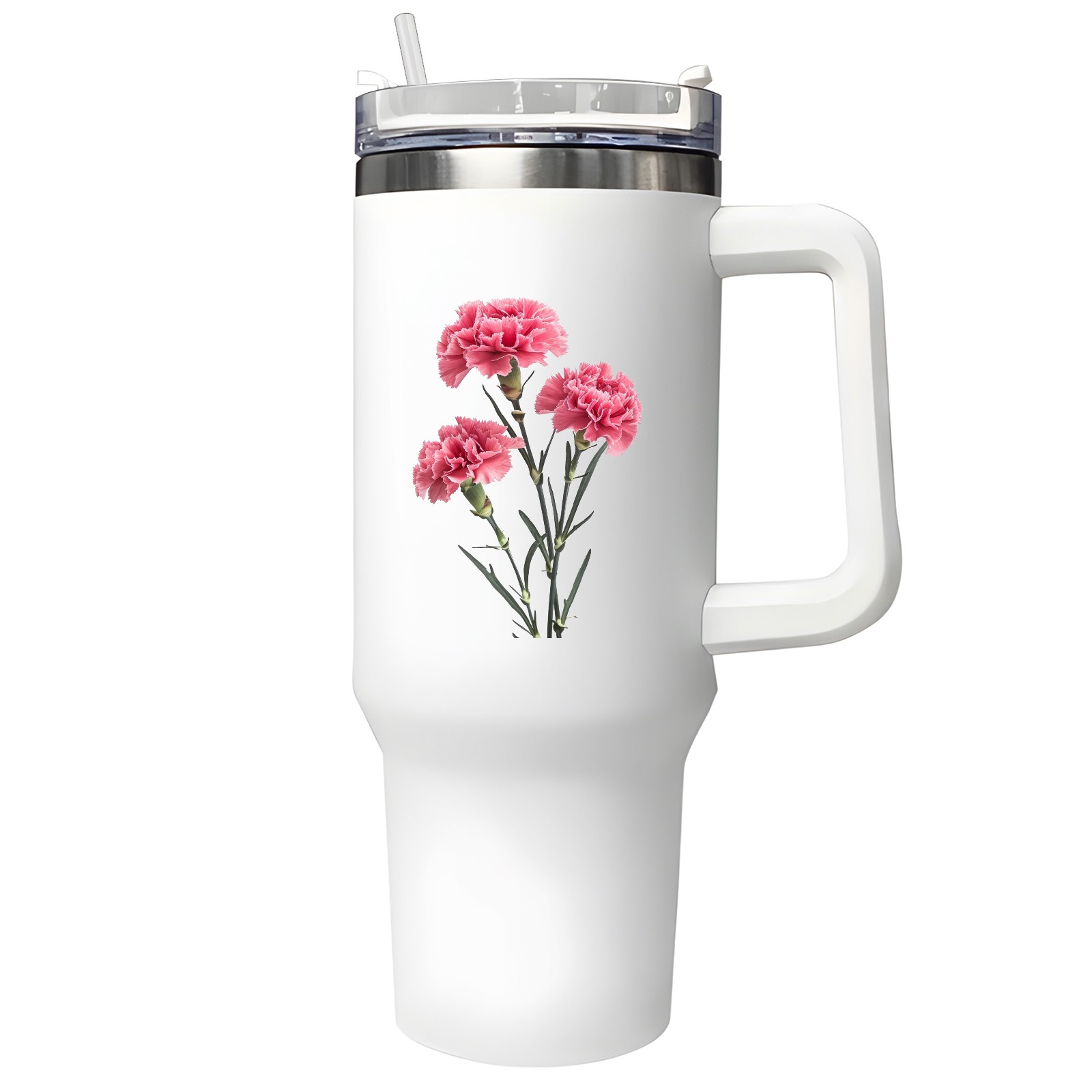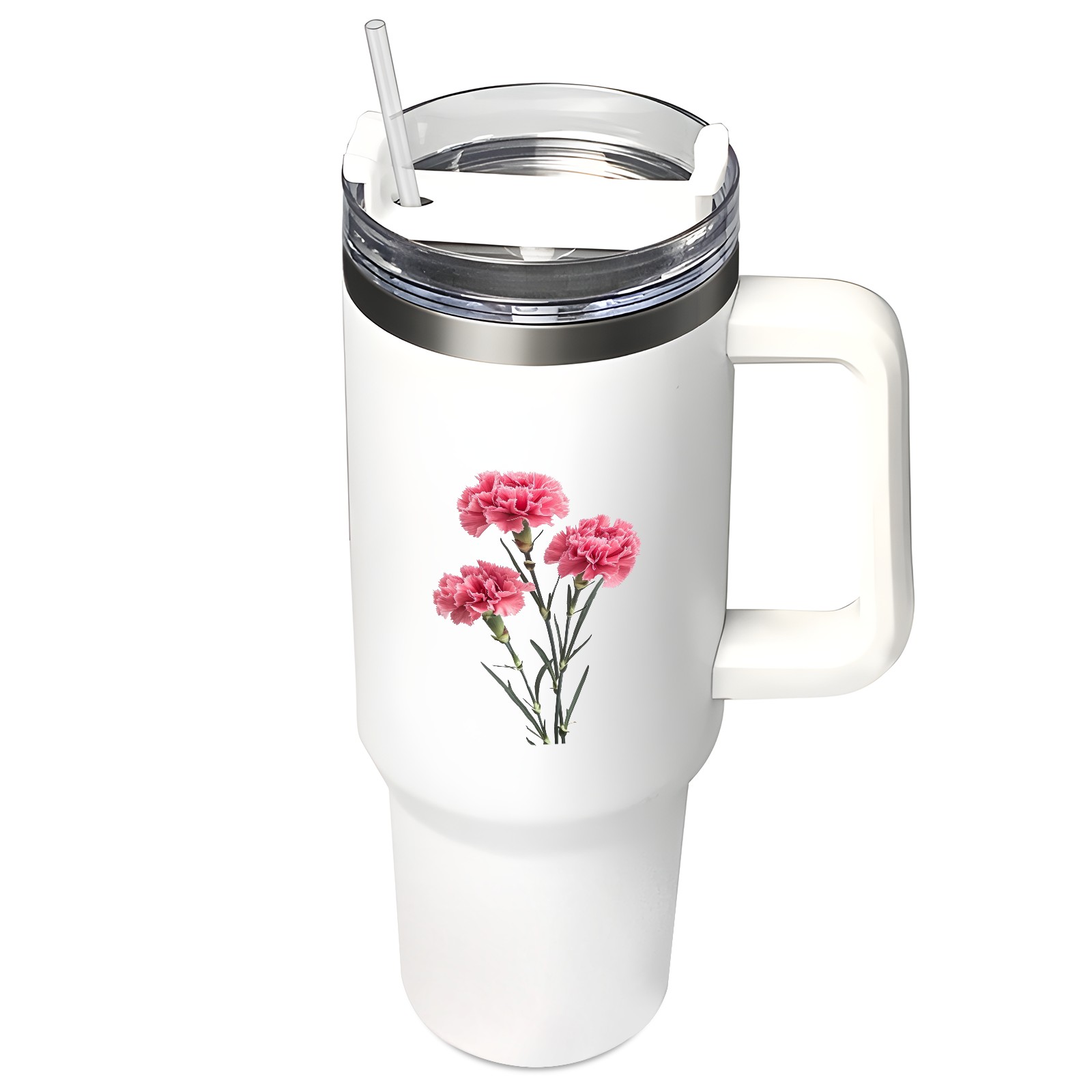 40oz Tumbler with Straw Lid , Handle& Double Wall Vacuum Insulated Cup Reusable Stainless Steel Bottle Trave Mug coffee tumblers BPA Powder Coated Flower (217)