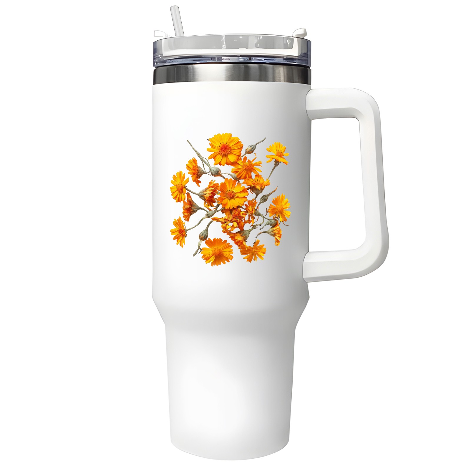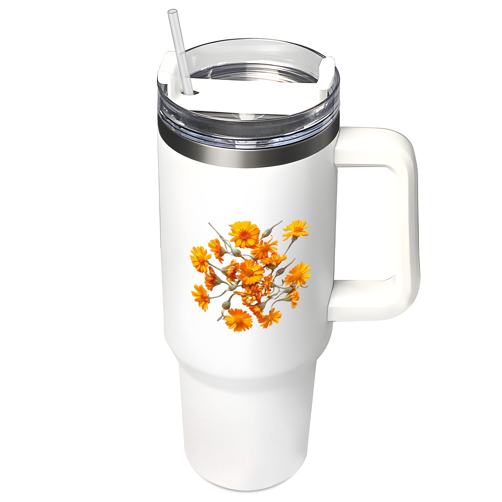 40oz Tumbler with Straw Lid , Handle& Double Wall Vacuum Insulated Cup Reusable Stainless Steel Bottle Trave Mug coffee tumblers BPA Powder Coated Flower (215)