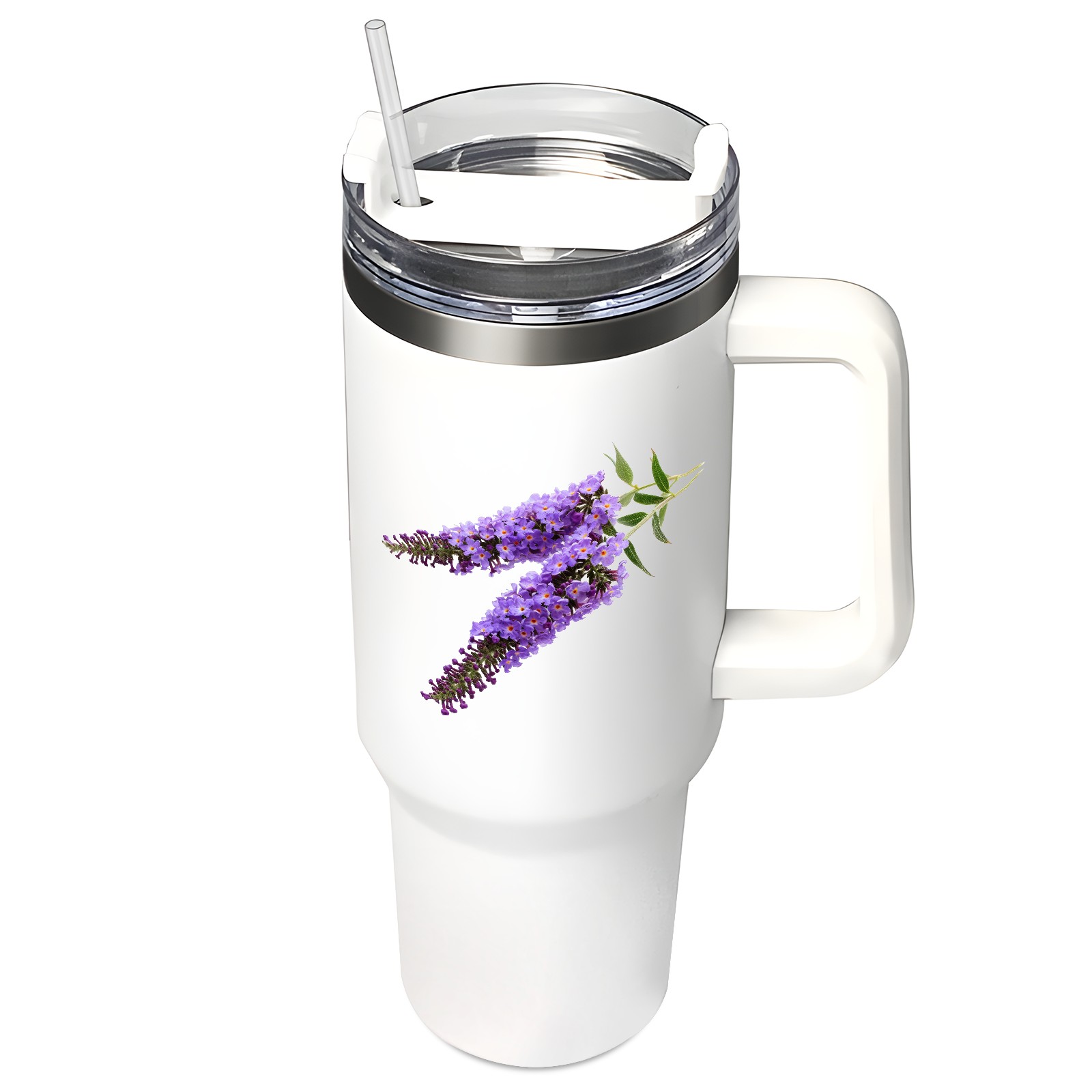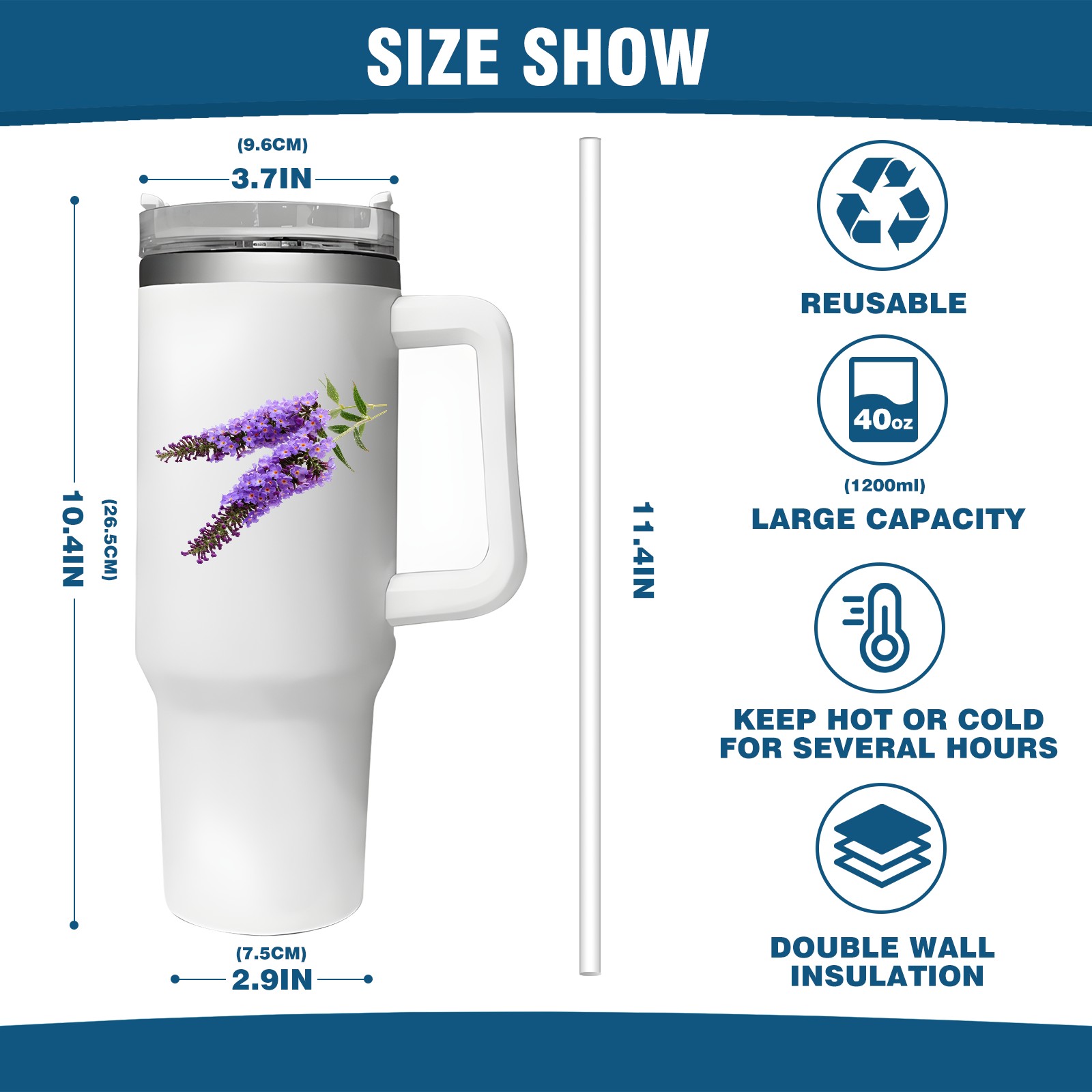 40oz Tumbler with Straw Lid , Handle& Double Wall Vacuum Insulated Cup Reusable Stainless Steel Bottle Trave Mug coffee tumblers BPA Powder Coated Flower (213)