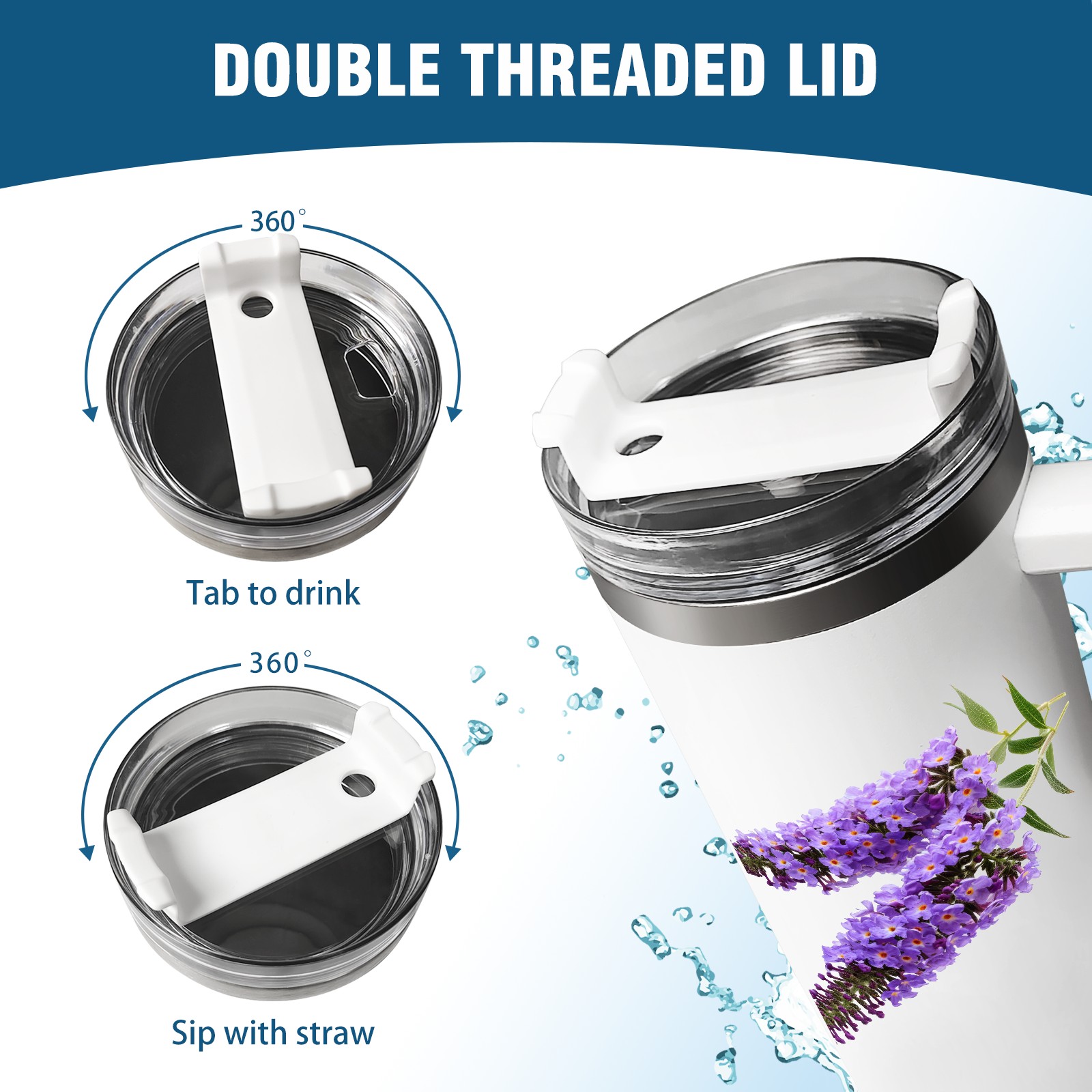 <b>ZXIVGOQFR Tumbler Is Your Dream Cup! </b>Whichever way your day flows, tumbler keeps you refreshed with fewer refills. </br> </br> ●<b>Double Wall Vacuum Insulation </b>means drinks stay cold, iced or hot for hours. </br> ●With advanced lid construction,STRAW OPENING designed to resist splashes with a seal that holds the reusable straw in place, a drink opening, and a full-cover top for added leak resistance. Totally spill proof! </br> ●ZXIVGOQFR Tumbler also included an ergonomic, comfort-grip HANDLE, 40 ounce tumbler cup is 2.9” wide at the base and 3.7” at the top. Narrow base fits just about any car cup holder. So you can bring a smoothie cup, iced coffee cup or extra espresso for your daily commute or weekend outing.