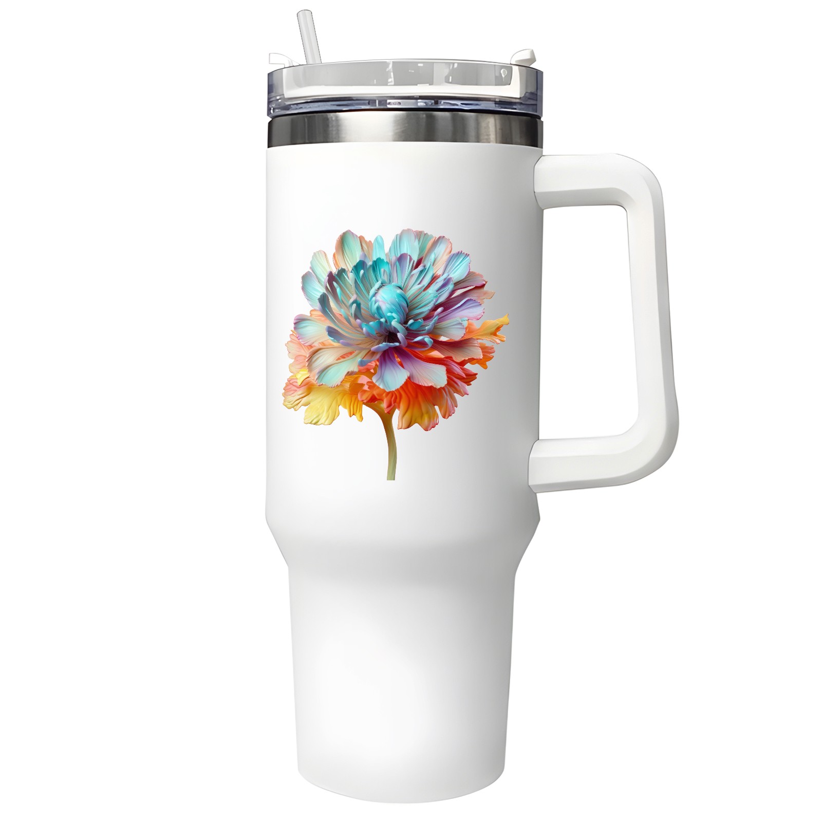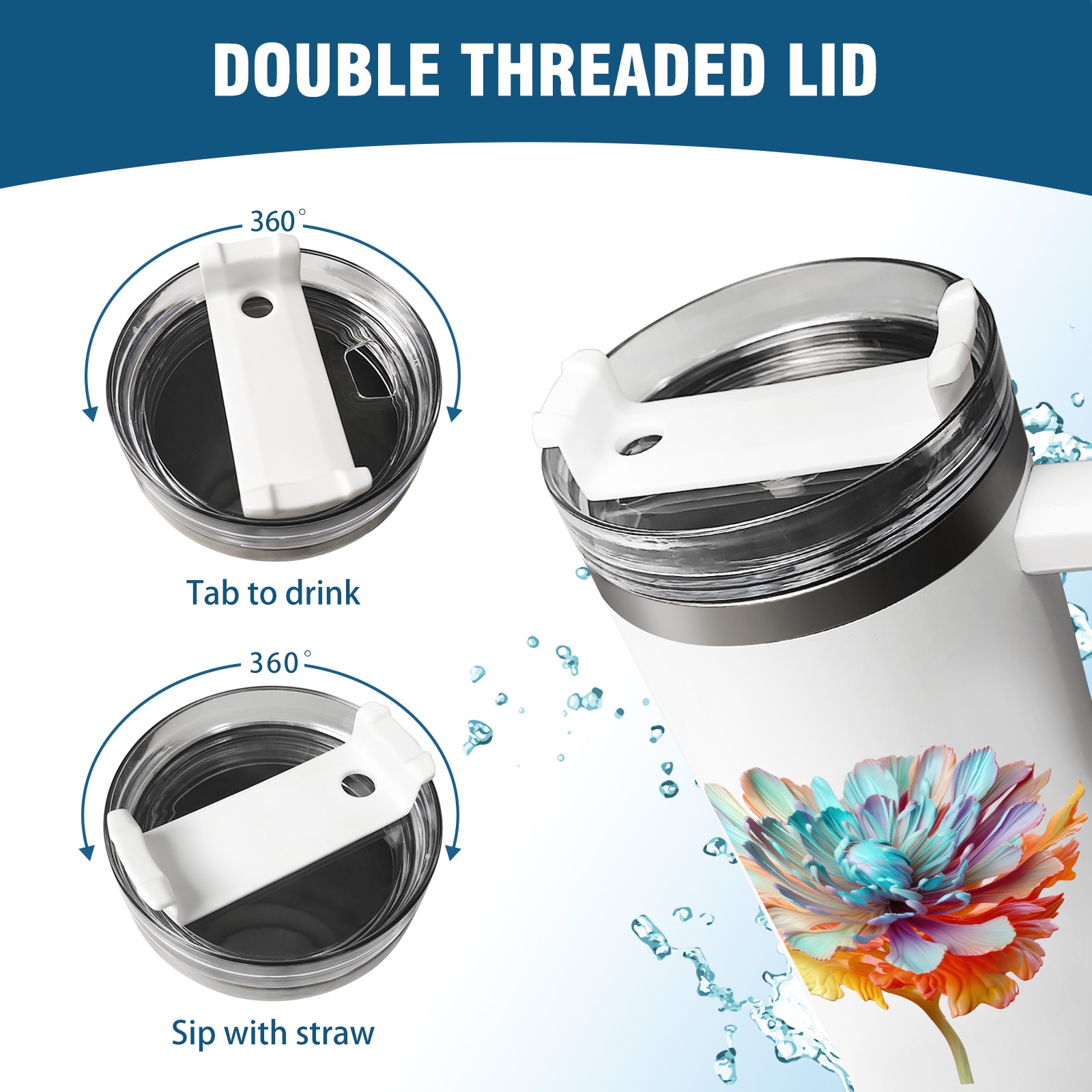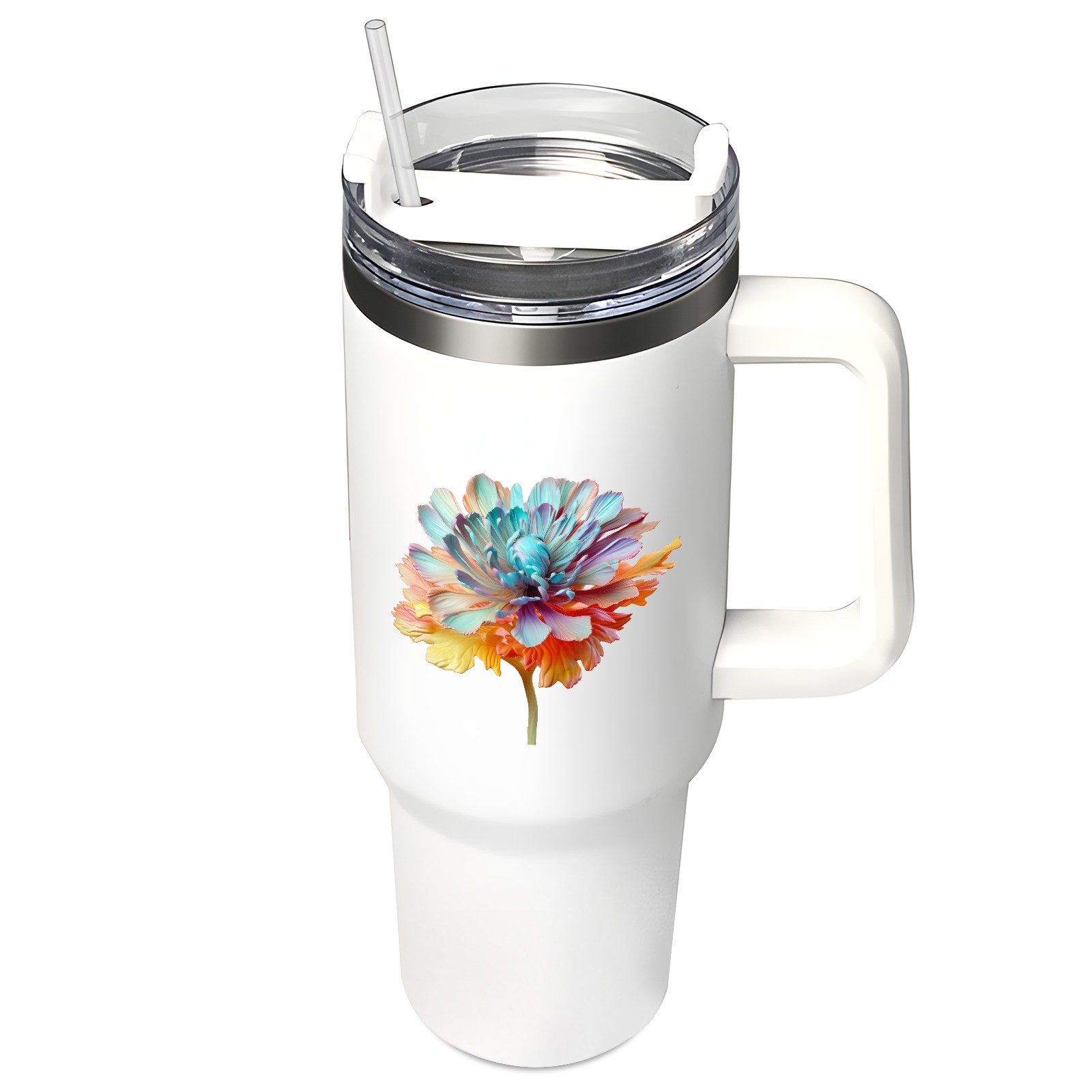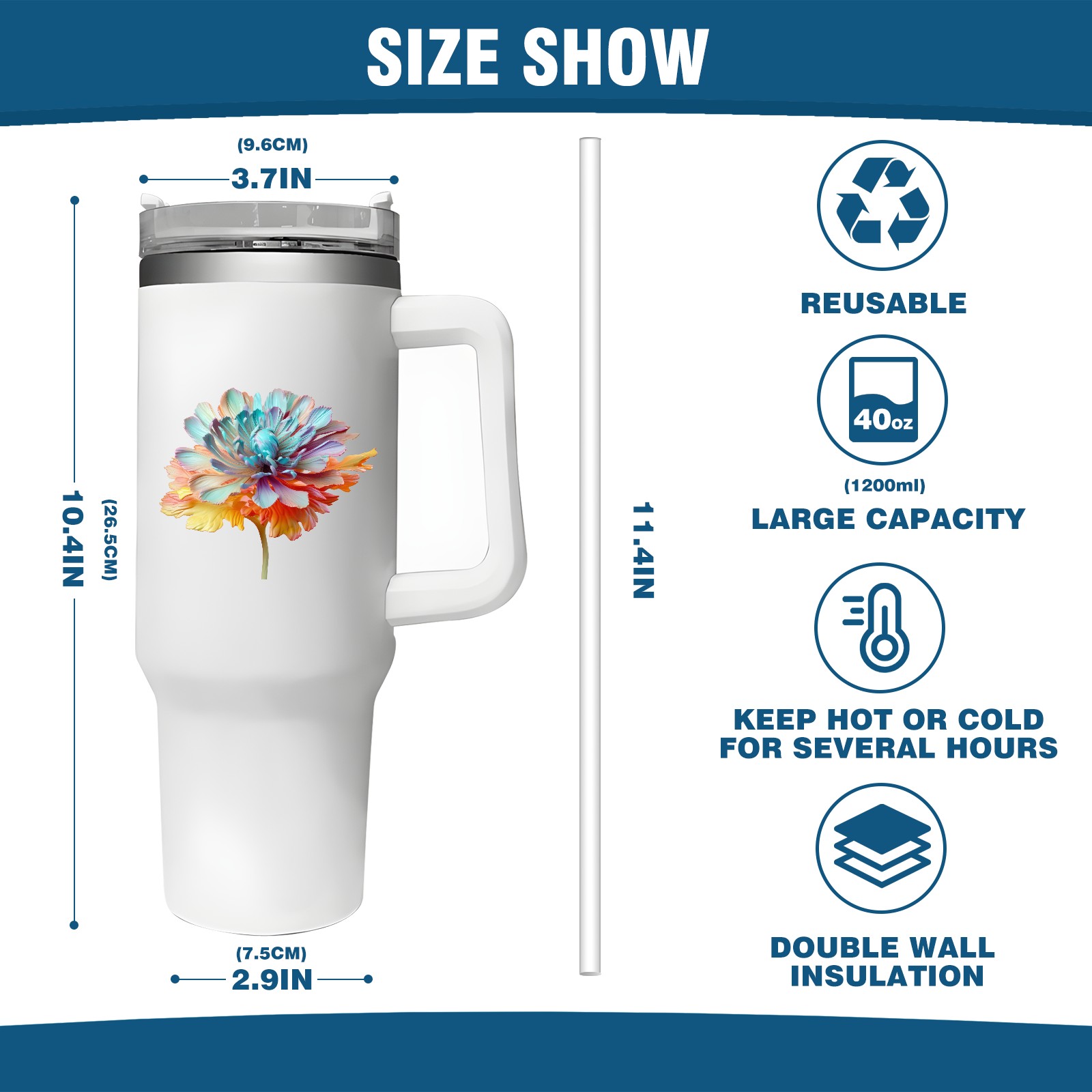 40oz Tumbler with Straw Lid , Handle& Double Wall Vacuum Insulated Cup Reusable Stainless Steel Bottle Trave Mug coffee tumblers BPA Powder Coated Flower (212)