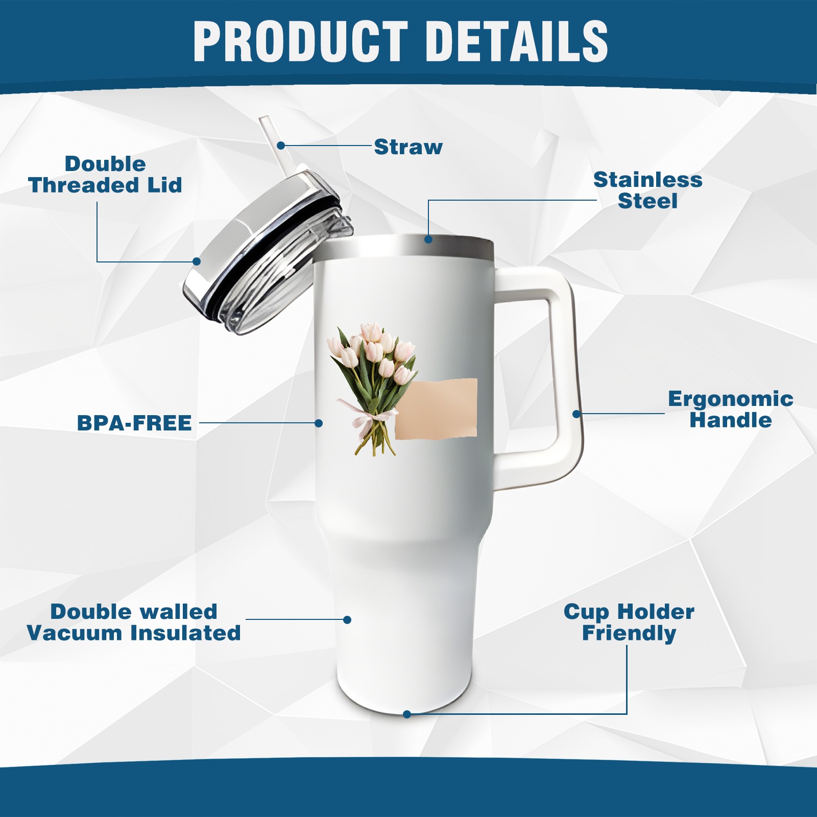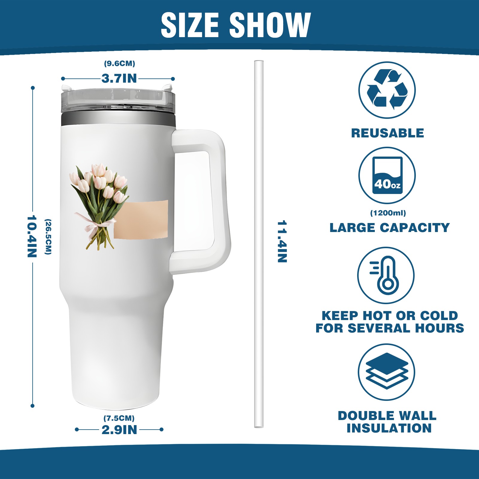 <b>ZXIVGOQFR Tumbler Is Your Dream Cup! </b>Whichever way your day flows, tumbler keeps you refreshed with fewer refills. </br> </br> ●<b>Double Wall Vacuum Insulation </b>means drinks stay cold, iced or hot for hours. </br> ●With advanced lid construction,STRAW OPENING designed to resist splashes with a seal that holds the reusable straw in place, a drink opening, and a full-cover top for added leak resistance. Totally spill proof! </br> ●ZXIVGOQFR Tumbler also included an ergonomic, comfort-grip HANDLE, 40 ounce tumbler cup is 2.9” wide at the base and 3.7” at the top. Narrow base fits just about any car cup holder. So you can bring a smoothie cup, iced coffee cup or extra espresso for your daily commute or weekend outing.