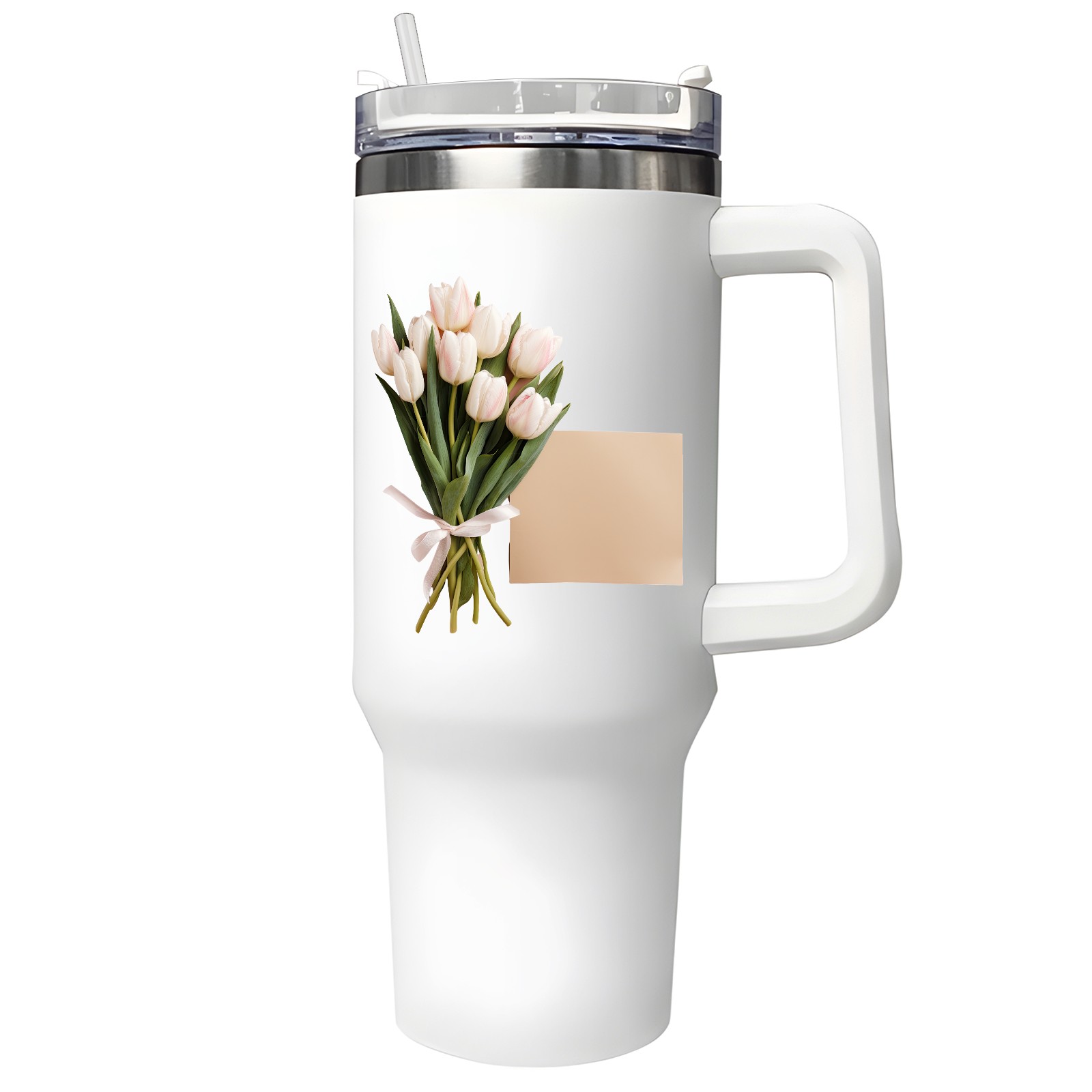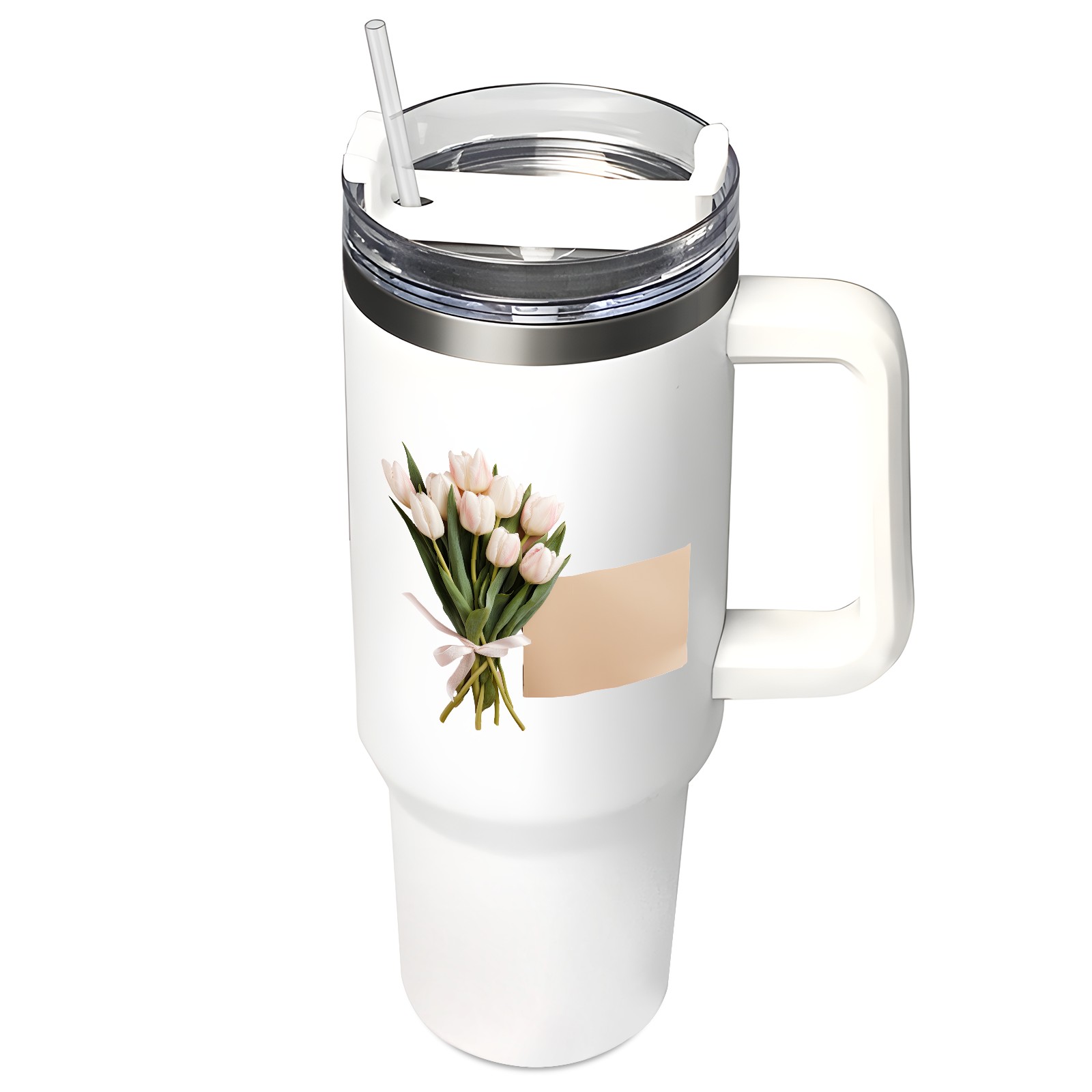 40oz Tumbler with Straw Lid , Handle& Double Wall Vacuum Insulated Cup Reusable Stainless Steel Bottle Trave Mug coffee tumblers BPA Powder Coated Flower (211)