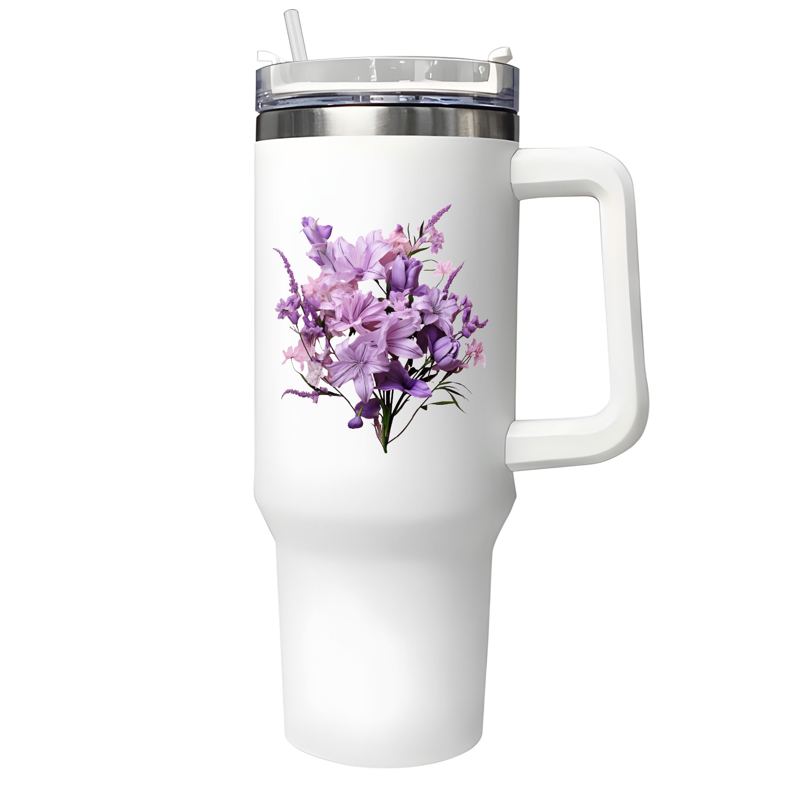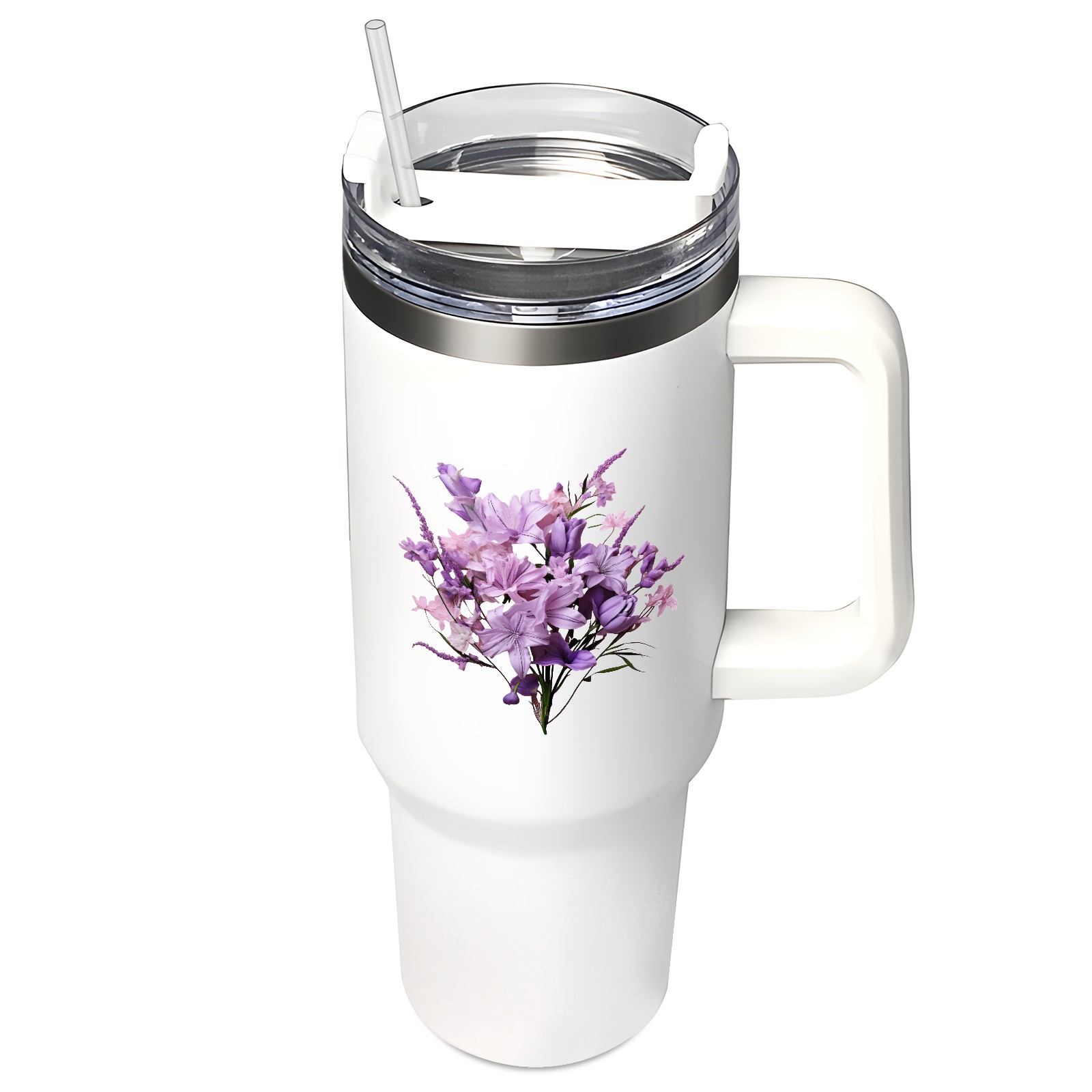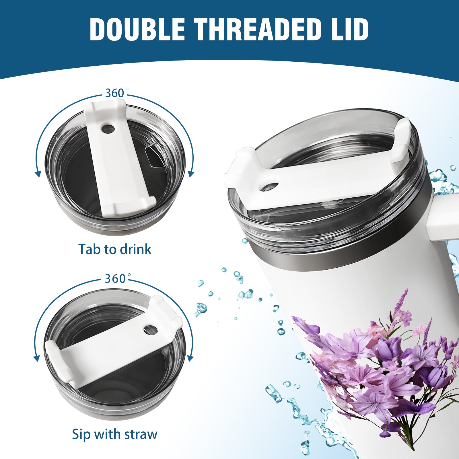 40oz Tumbler with Straw Lid , Handle& Double Wall Vacuum Insulated Cup Reusable Stainless Steel Bottle Trave Mug coffee tumblers BPA Powder Coated Flower (207)