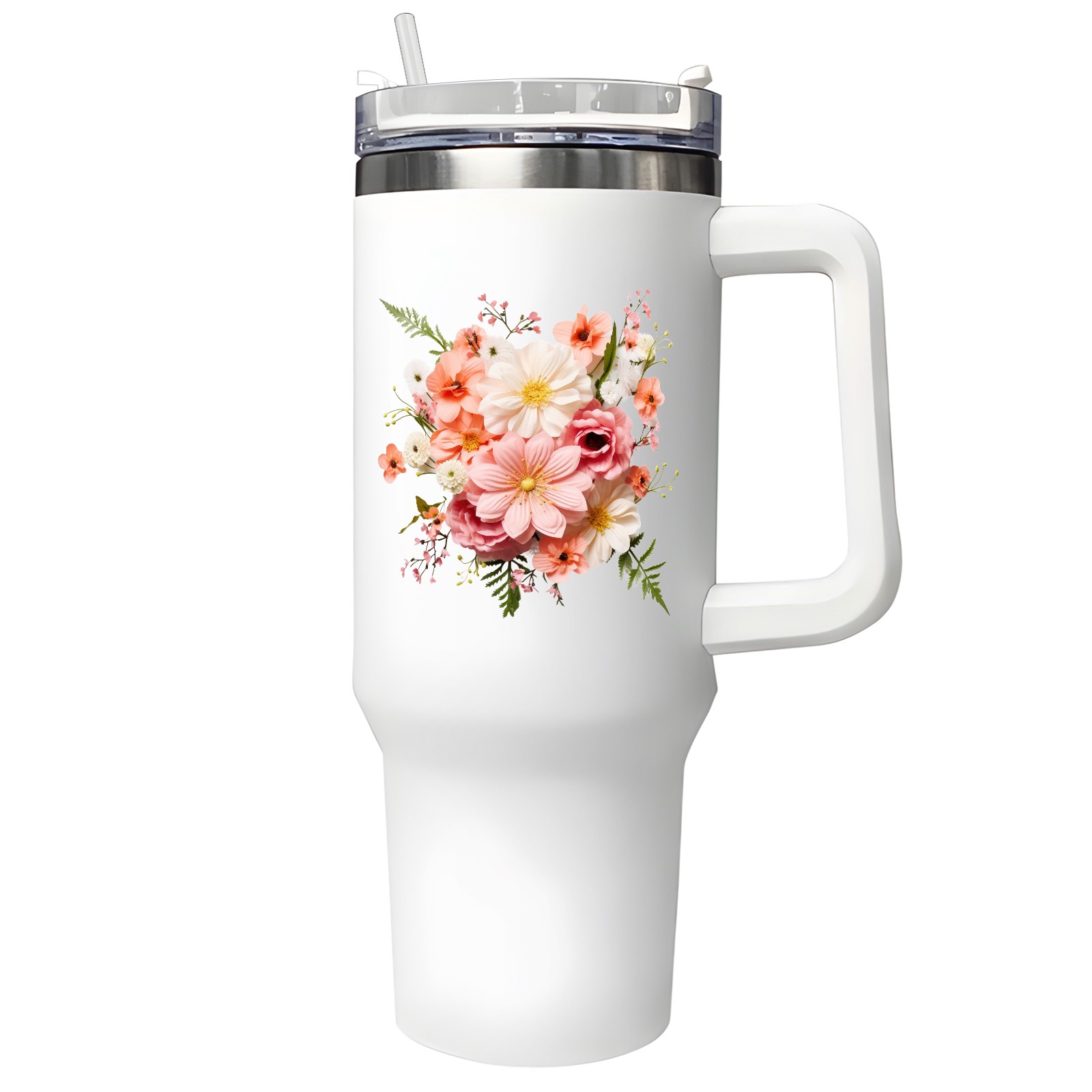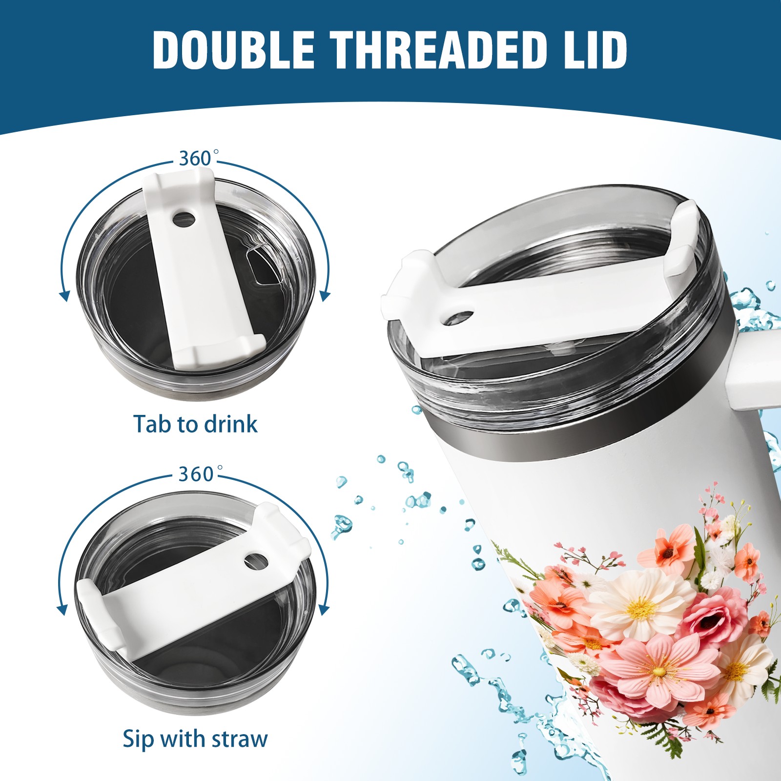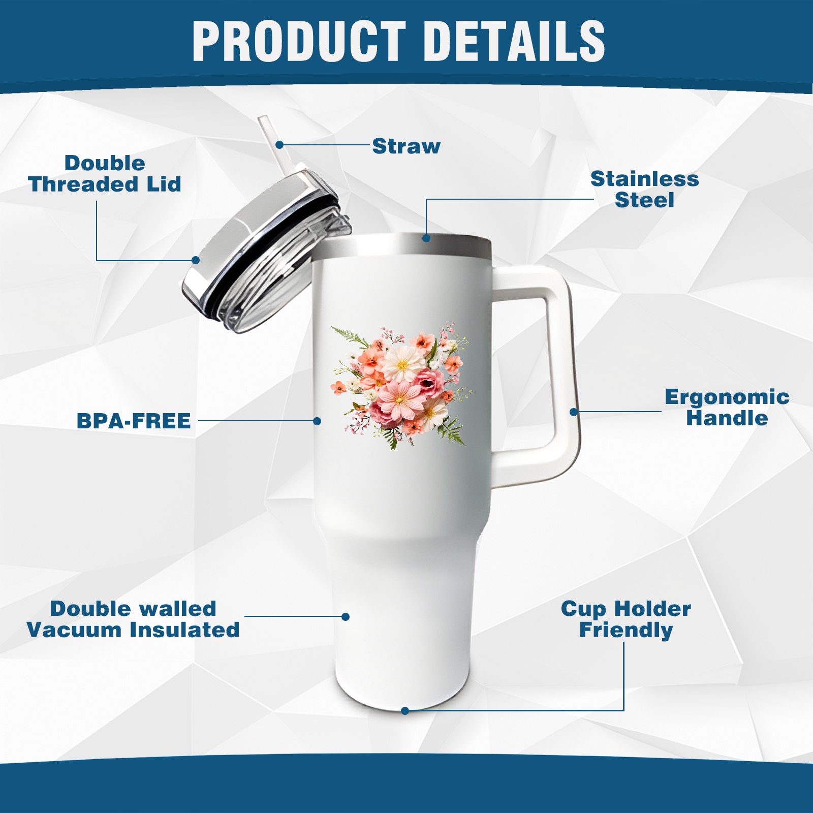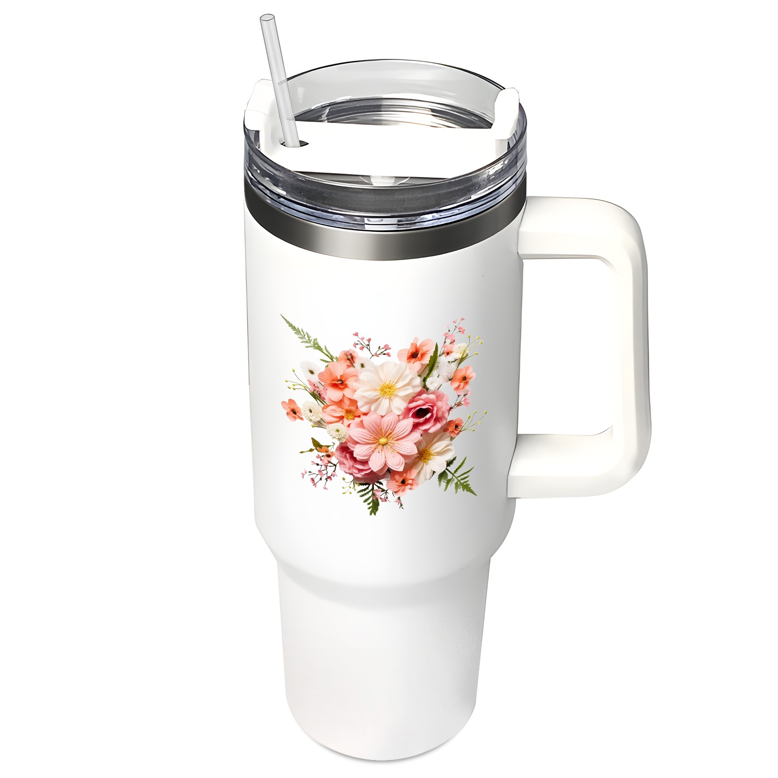 40oz Tumbler with Straw Lid , Handle& Double Wall Vacuum Insulated Cup Reusable Stainless Steel Bottle Trave Mug coffee tumblers BPA Powder Coated Flower (205)