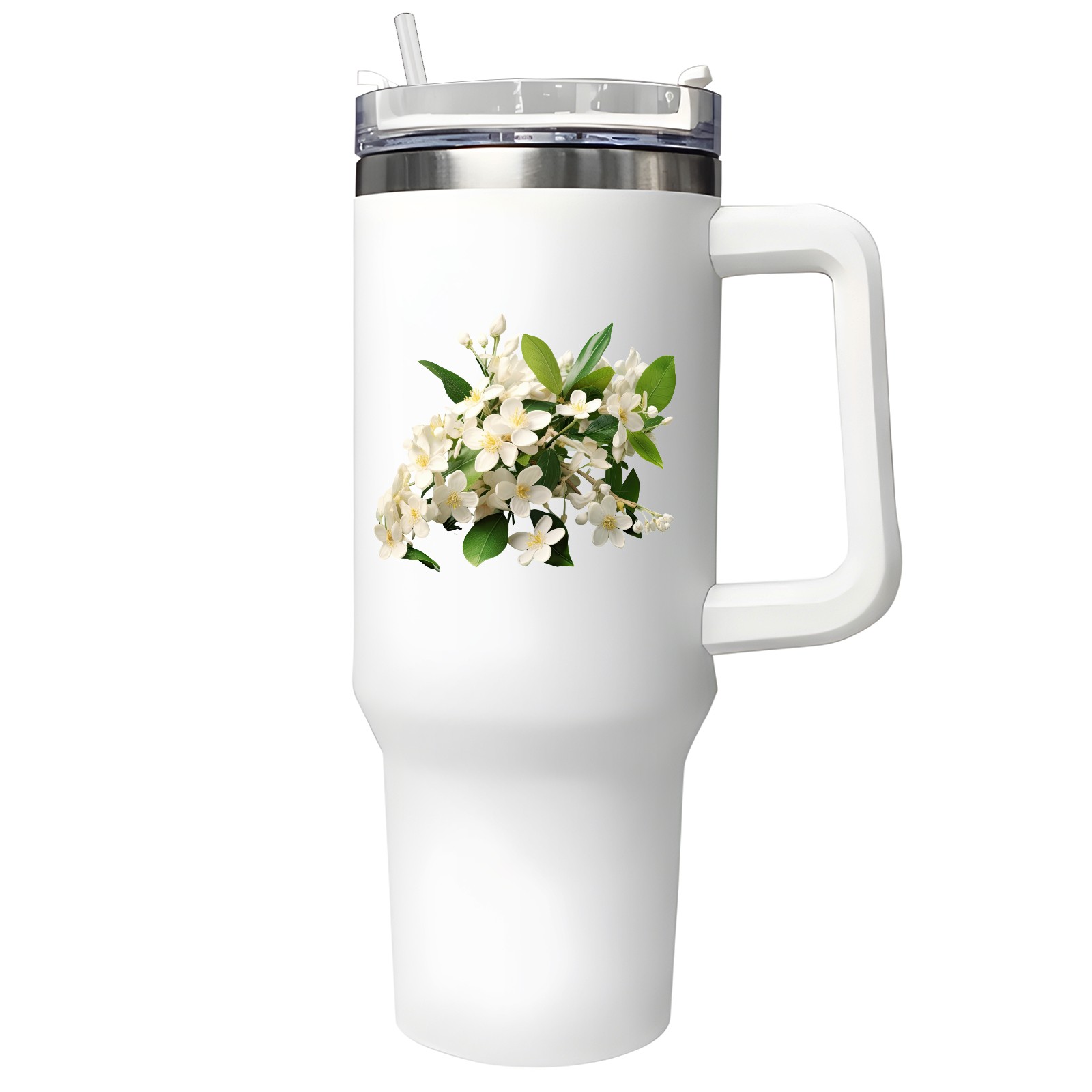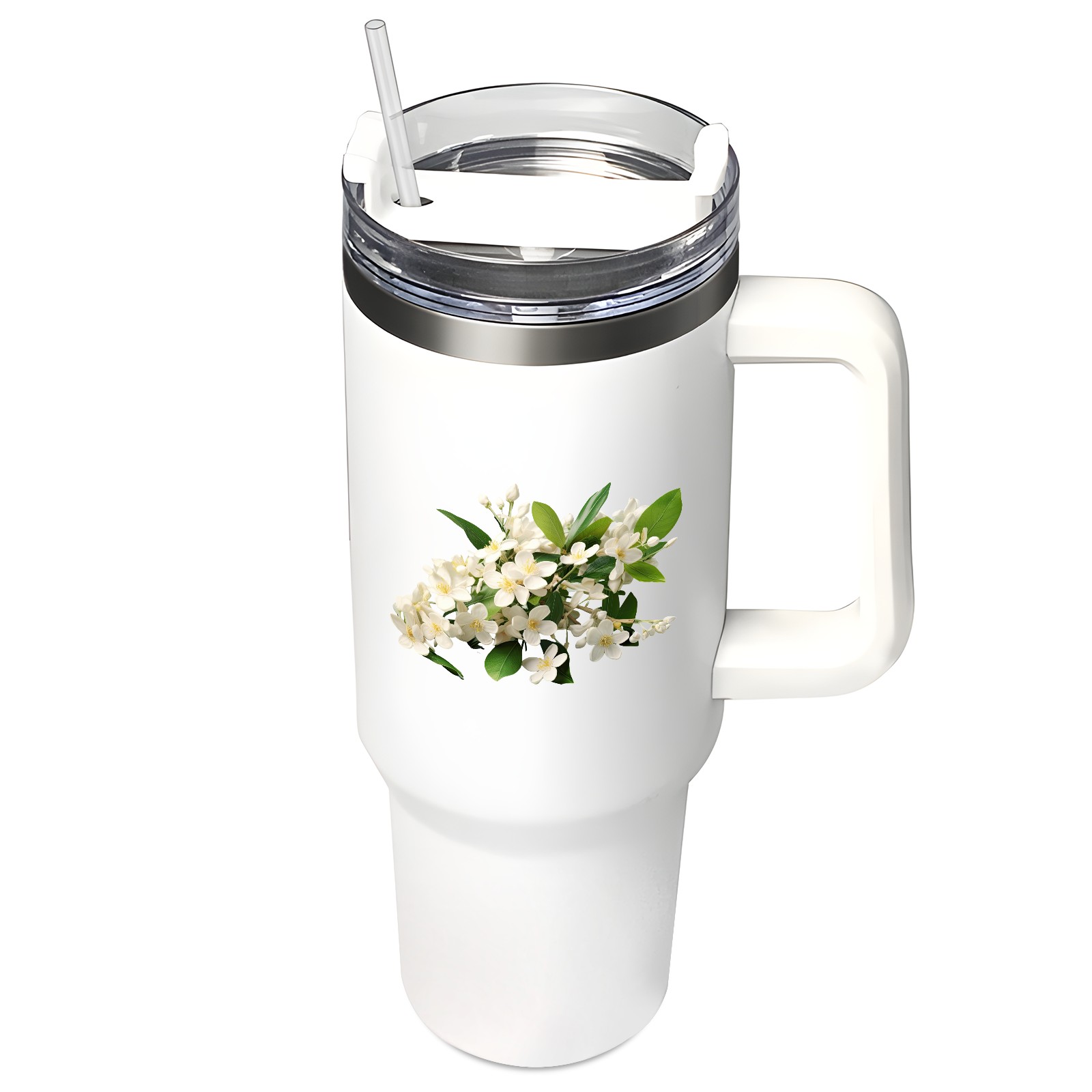 40oz Tumbler with Straw Lid , Handle& Double Wall Vacuum Insulated Cup Reusable Stainless Steel Bottle Trave Mug coffee tumblers BPA Powder Coated Flower (204)