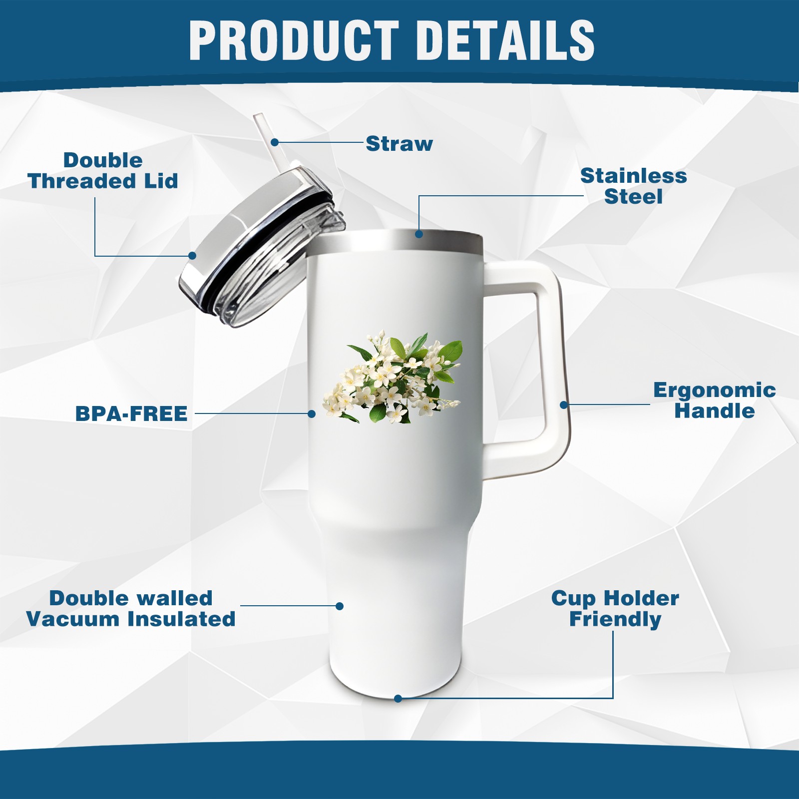 <b>ZXIVGOQFR Tumbler Is Your Dream Cup! </b>Whichever way your day flows, tumbler keeps you refreshed with fewer refills. </br> </br> ●<b>Double Wall Vacuum Insulation </b>means drinks stay cold, iced or hot for hours. </br> ●With advanced lid construction,STRAW OPENING designed to resist splashes with a seal that holds the reusable straw in place, a drink opening, and a full-cover top for added leak resistance. Totally spill proof! </br> ●ZXIVGOQFR Tumbler also included an ergonomic, comfort-grip HANDLE, 40 ounce tumbler cup is 2.9” wide at the base and 3.7” at the top. Narrow base fits just about any car cup holder. So you can bring a smoothie cup, iced coffee cup or extra espresso for your daily commute or weekend outing.
