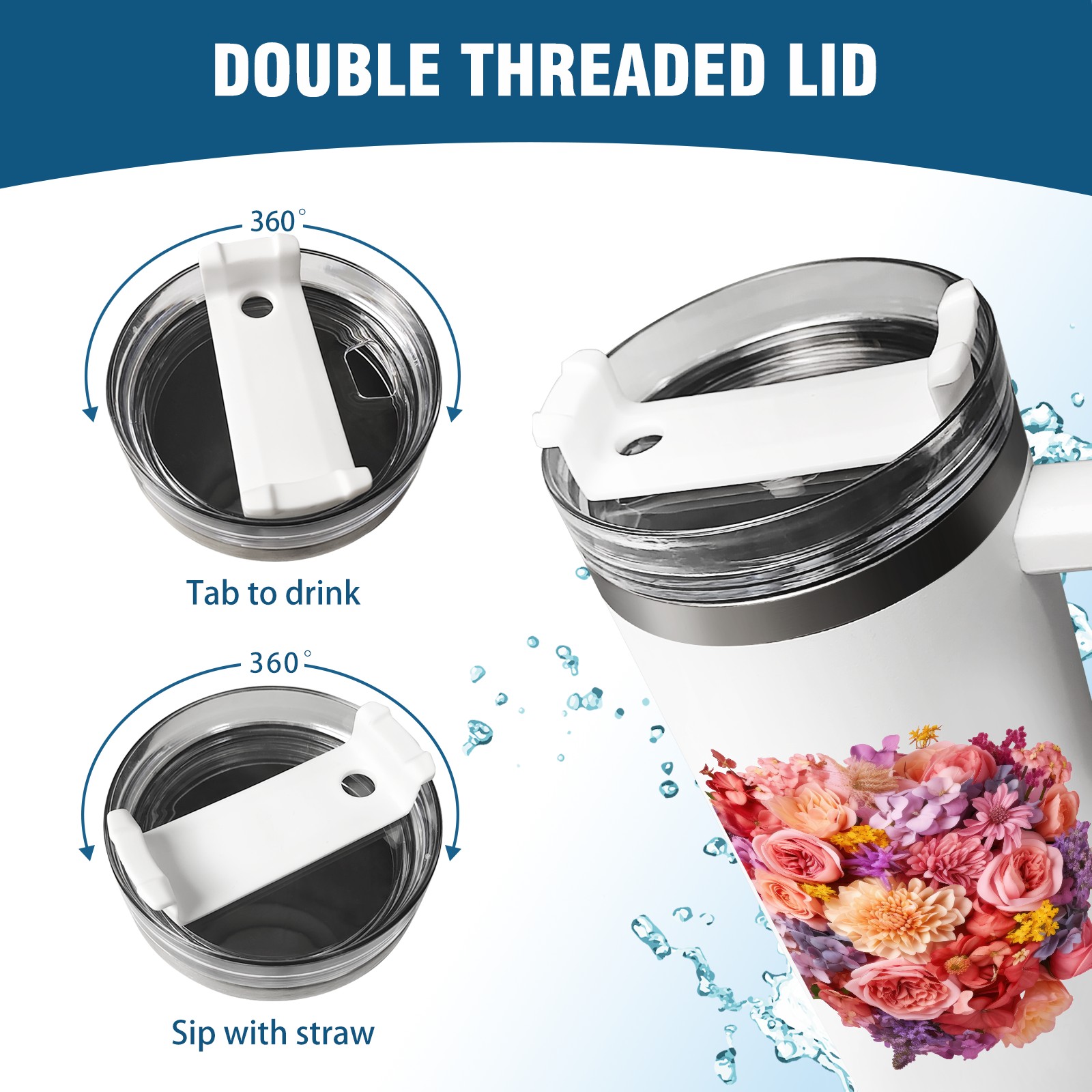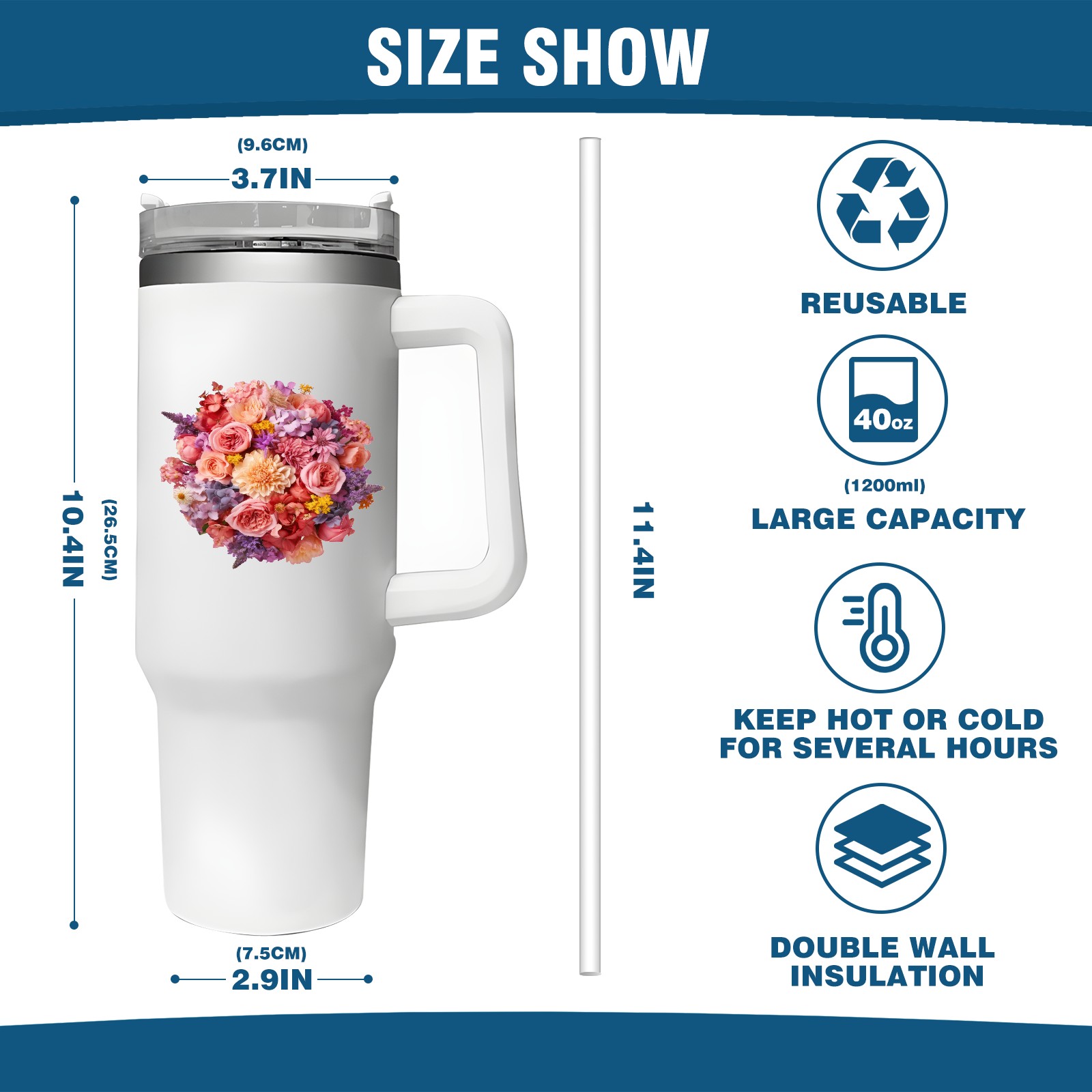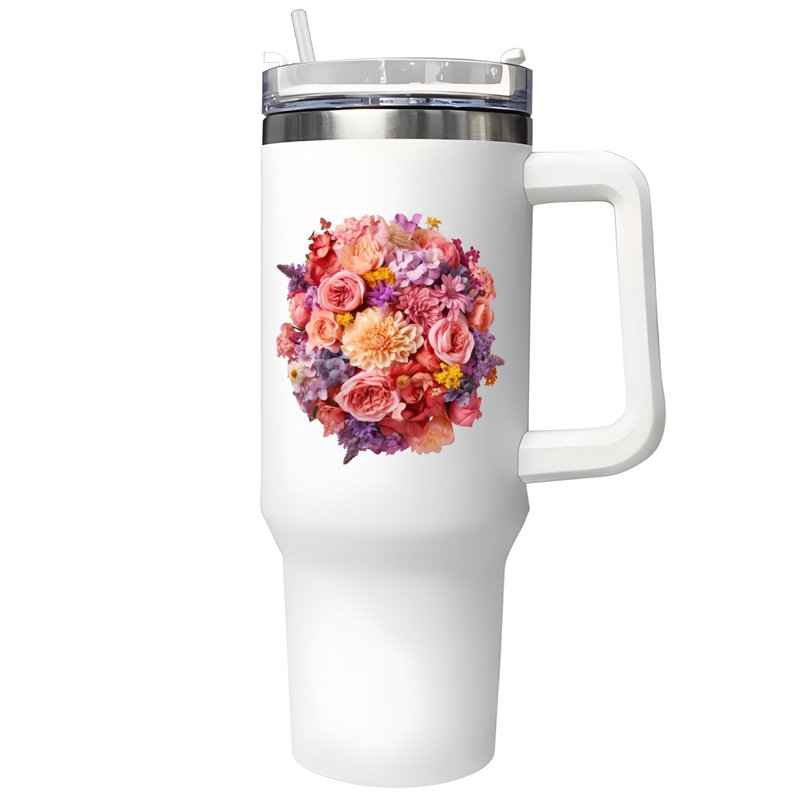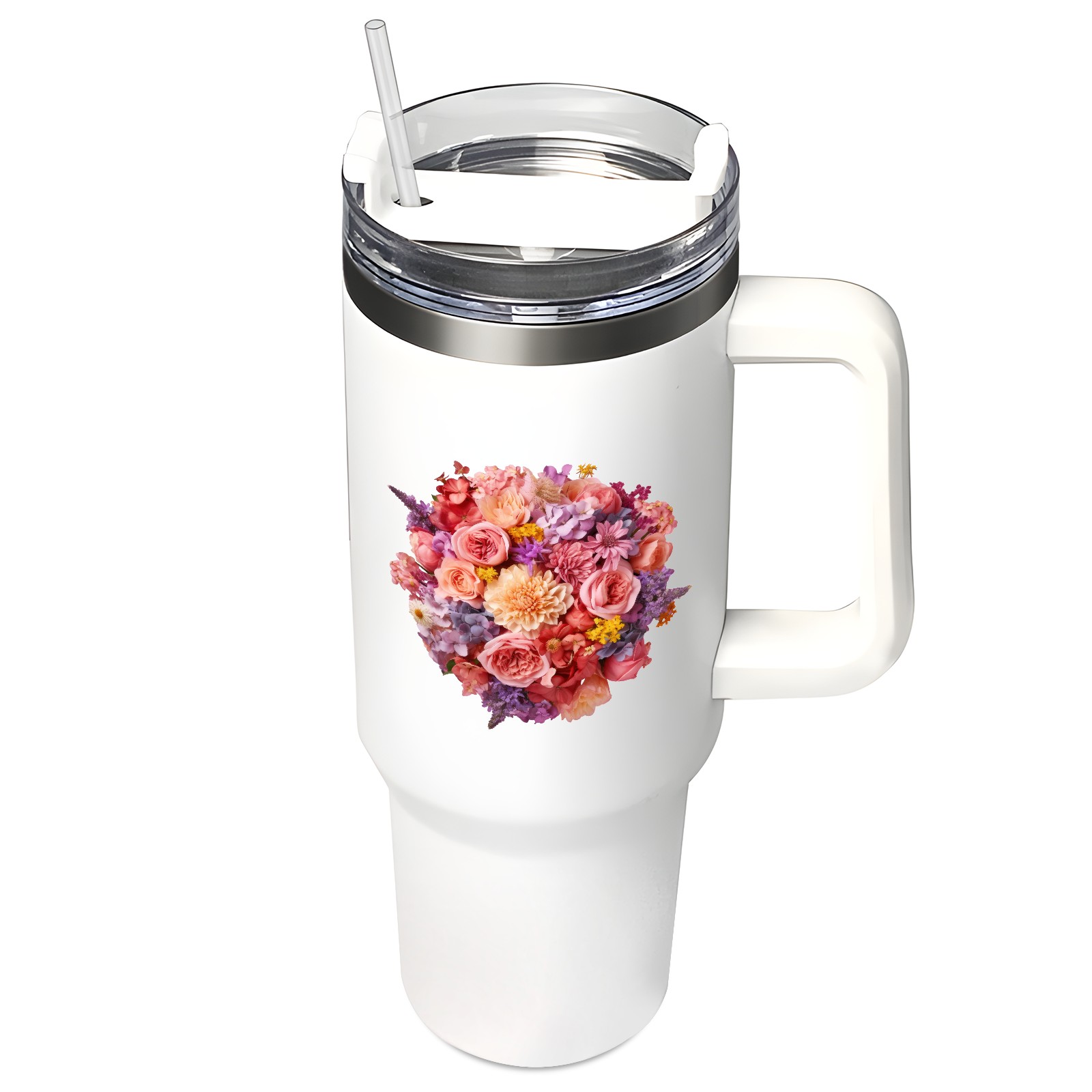 40oz Tumbler with Straw Lid , Handle& Double Wall Vacuum Insulated Cup Reusable Stainless Steel Bottle Trave Mug coffee tumblers BPA Powder Coated Flower (203)