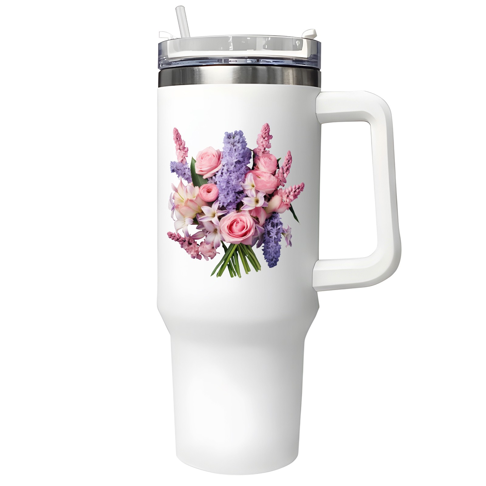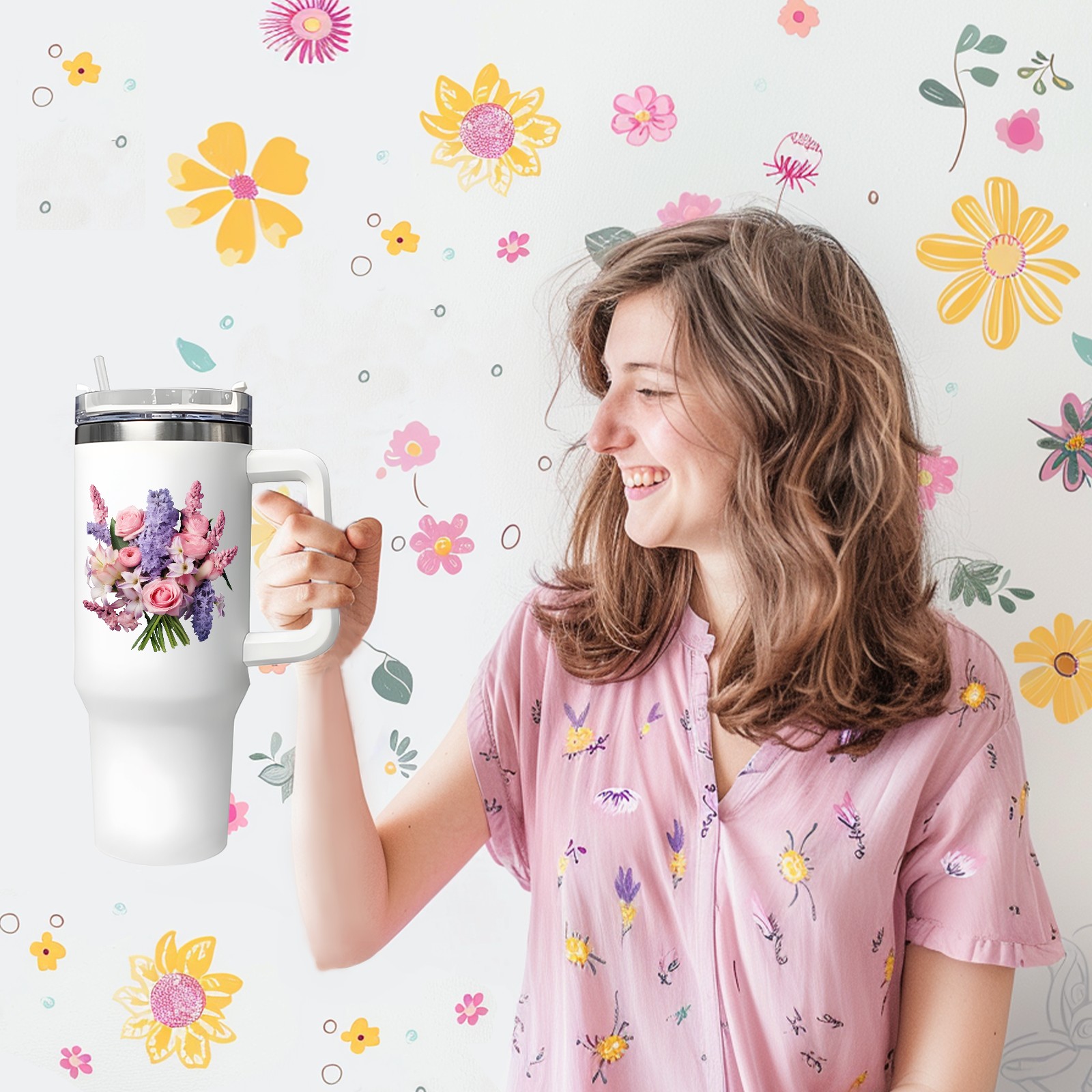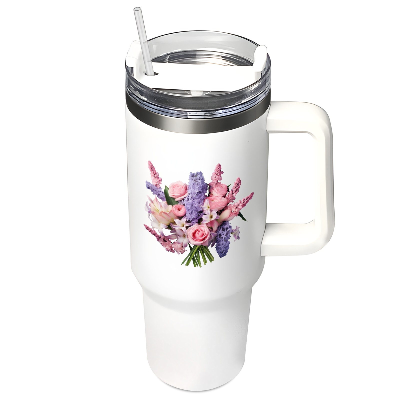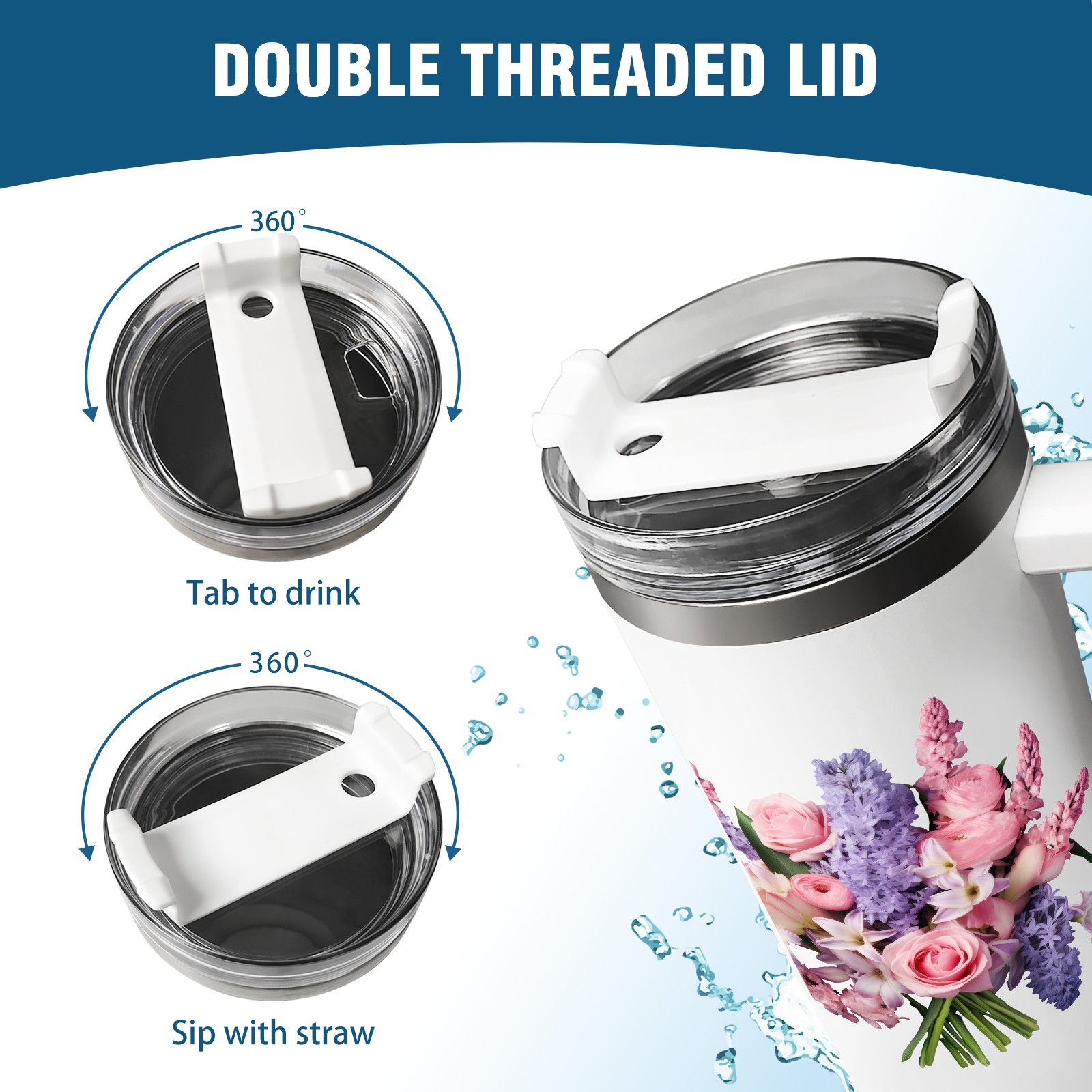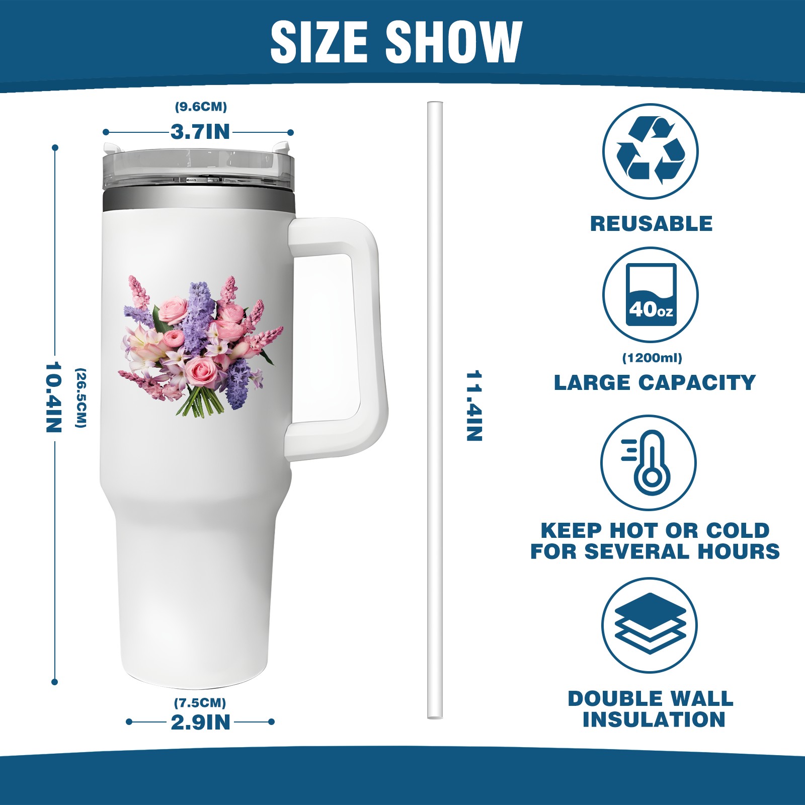40oz Tumbler with Straw Lid , Handle& Double Wall Vacuum Insulated Cup Reusable Stainless Steel Bottle Trave Mug coffee tumblers BPA Powder Coated Flower (191)