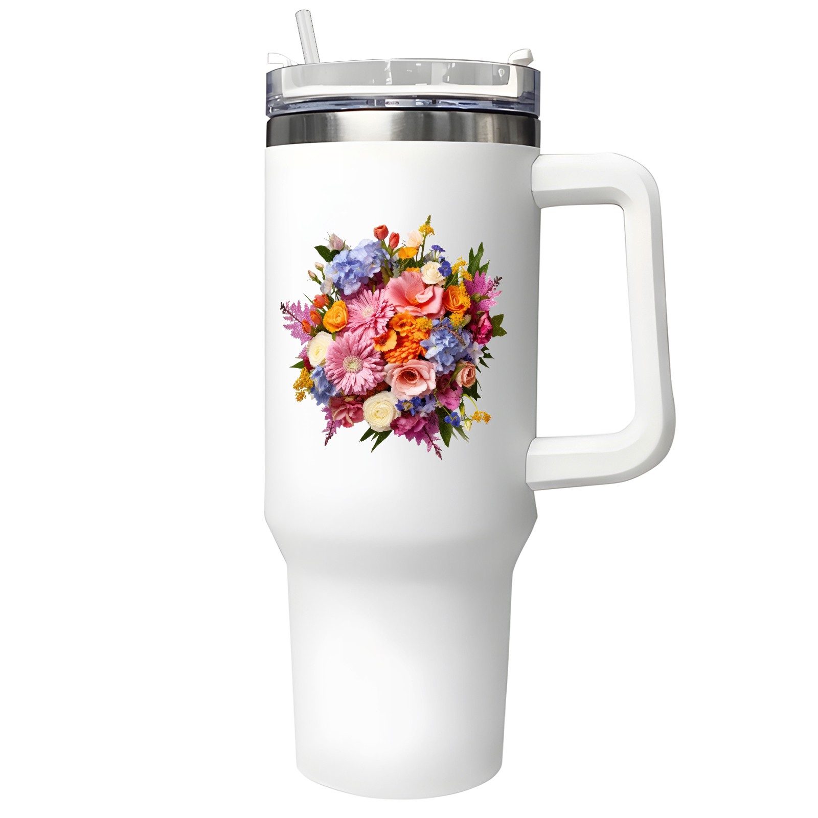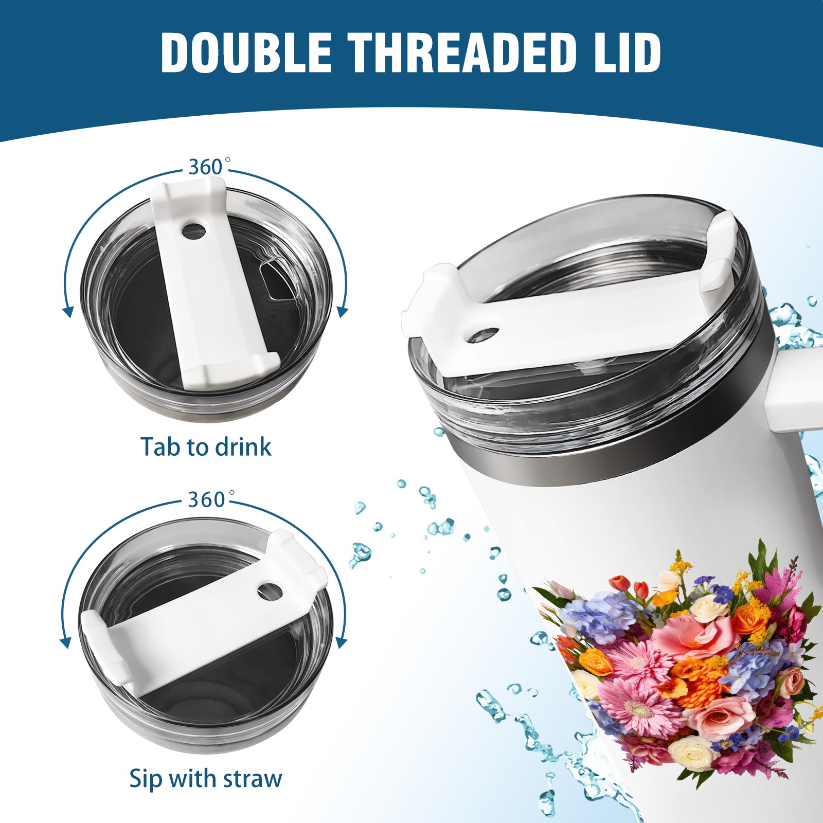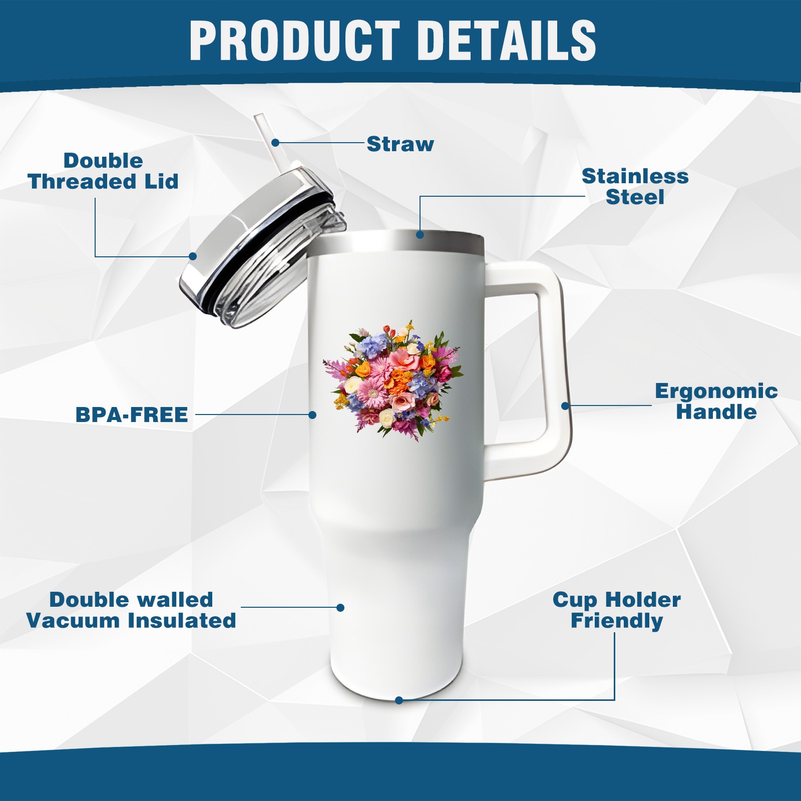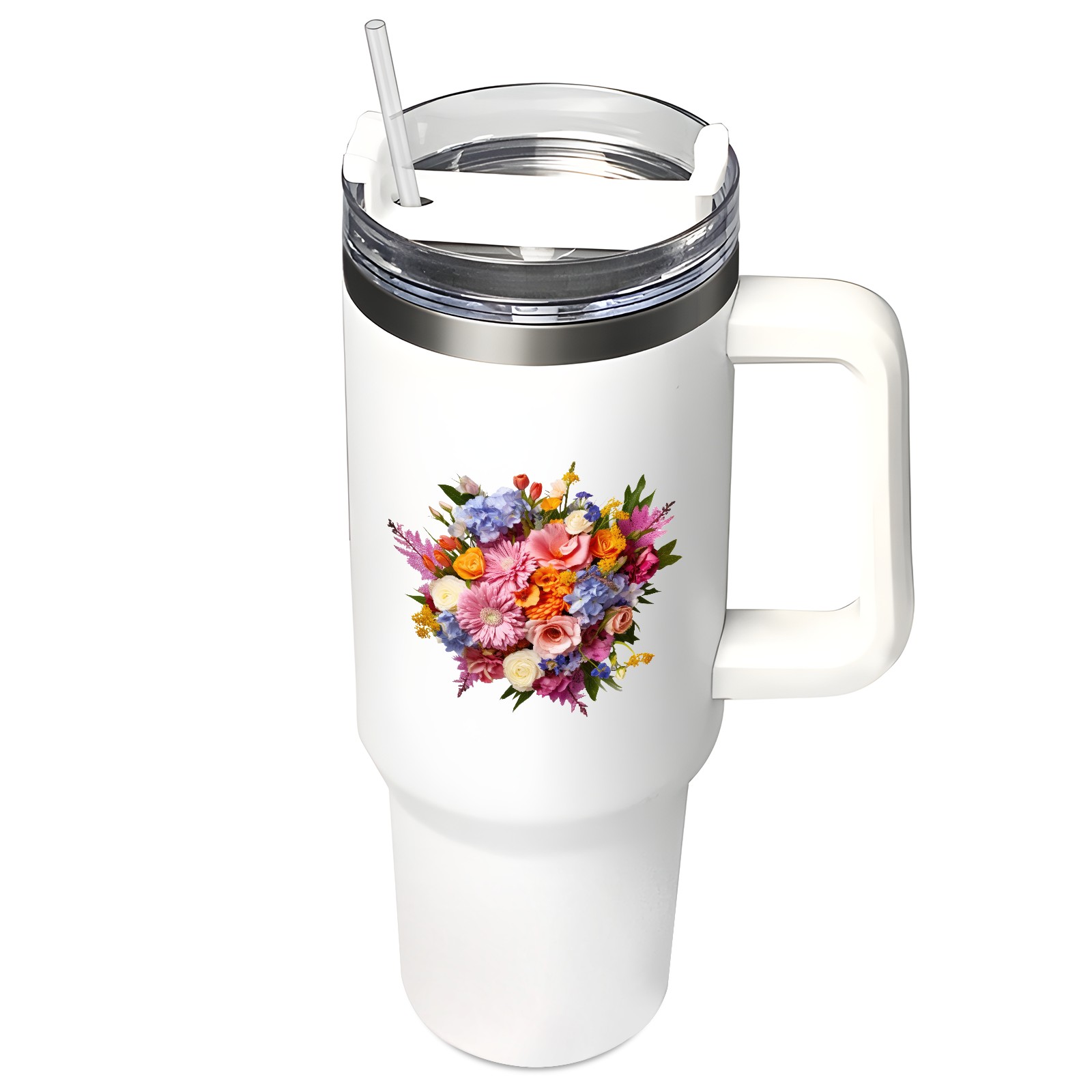 40oz Tumbler with Straw Lid , Handle& Double Wall Vacuum Insulated Cup Reusable Stainless Steel Bottle Trave Mug coffee tumblers BPA Powder Coated Flower (190)