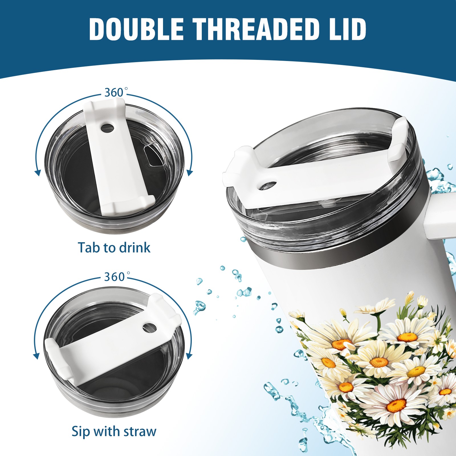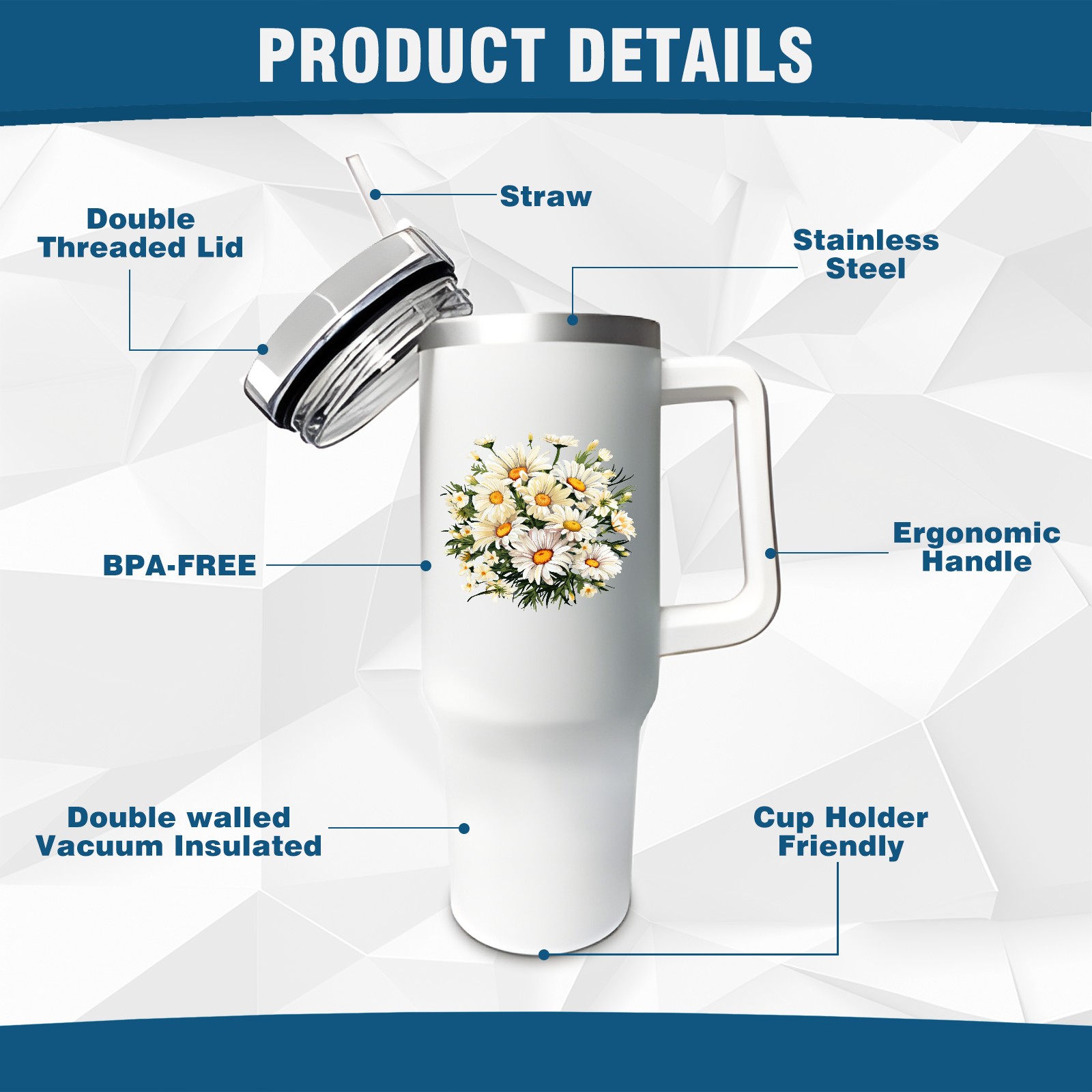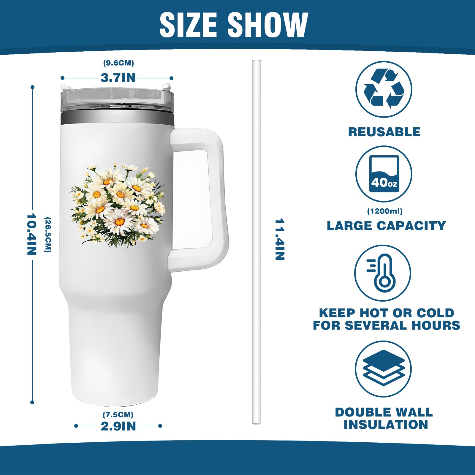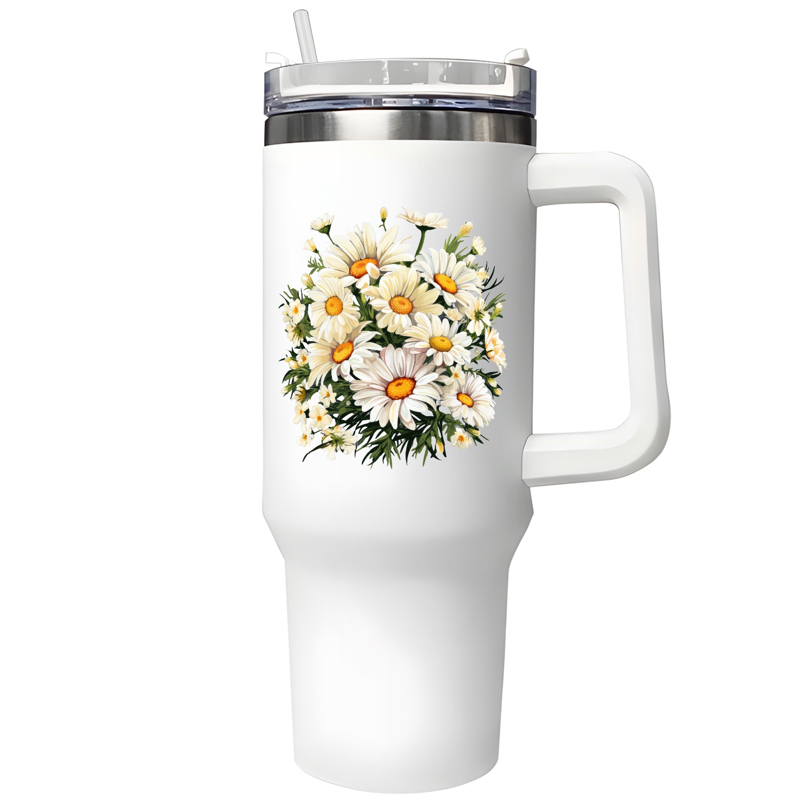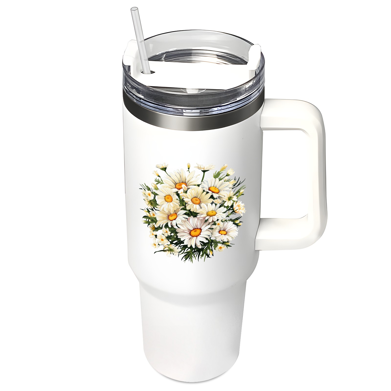 40oz Tumbler with Straw Lid , Handle& Double Wall Vacuum Insulated Cup Reusable Stainless Steel Bottle Trave Mug coffee tumblers BPA Powder Coated Flower (185)