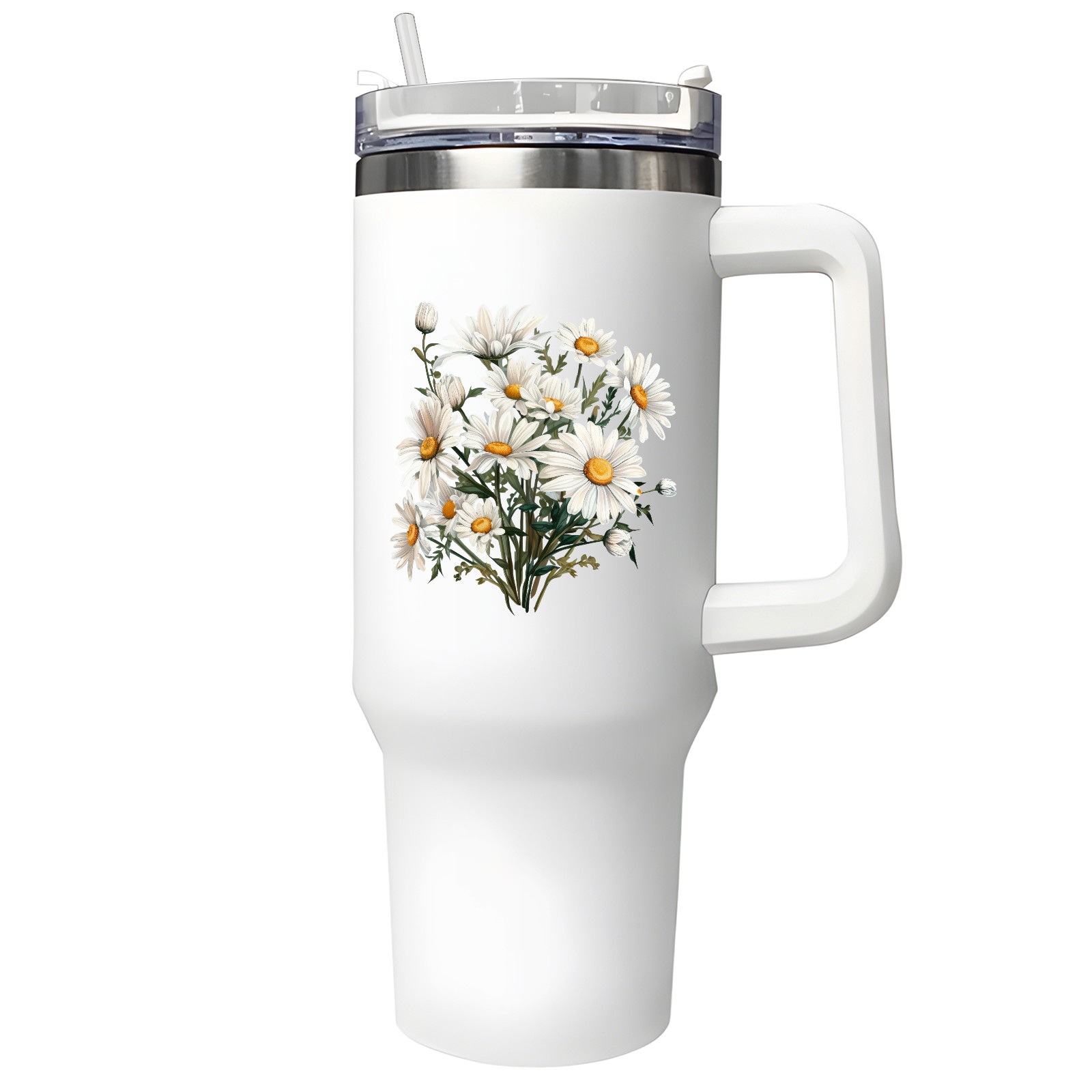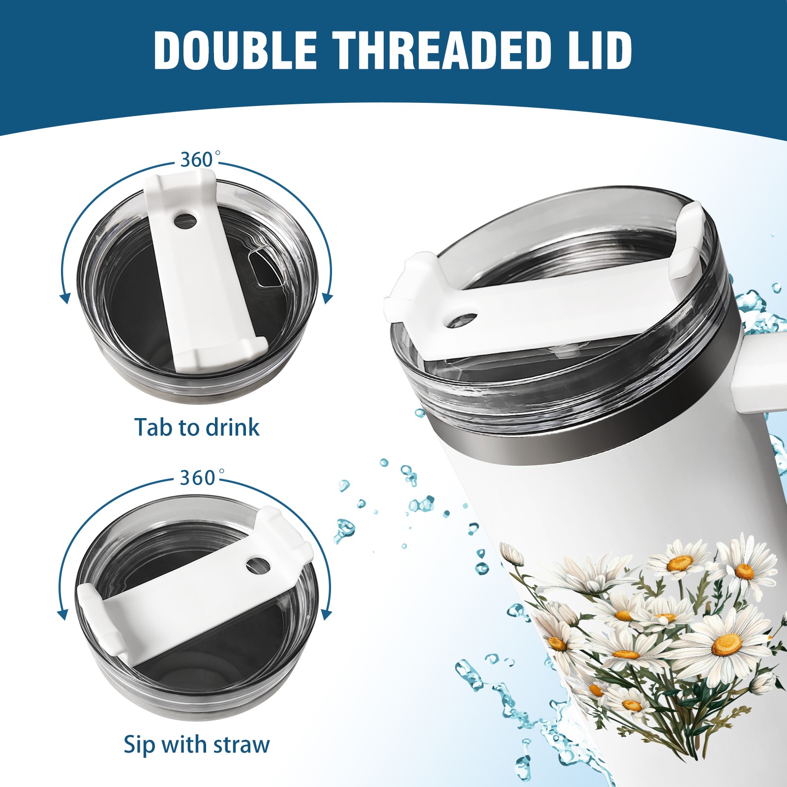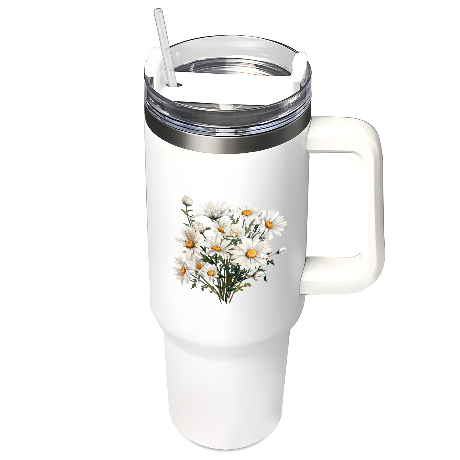 40oz Tumbler with Straw Lid , Handle& Double Wall Vacuum Insulated Cup Reusable Stainless Steel Bottle Trave Mug coffee tumblers BPA Powder Coated Flower (184)