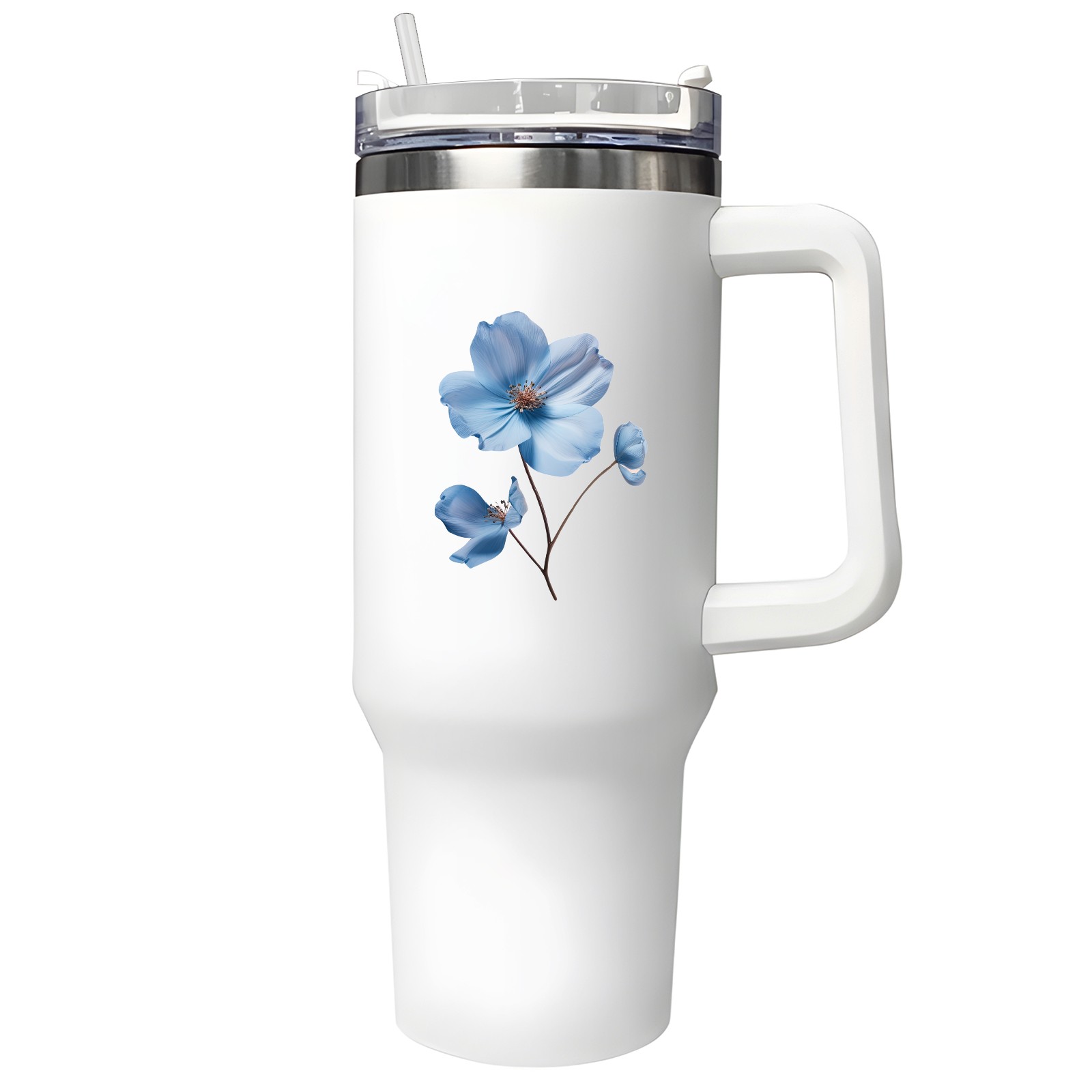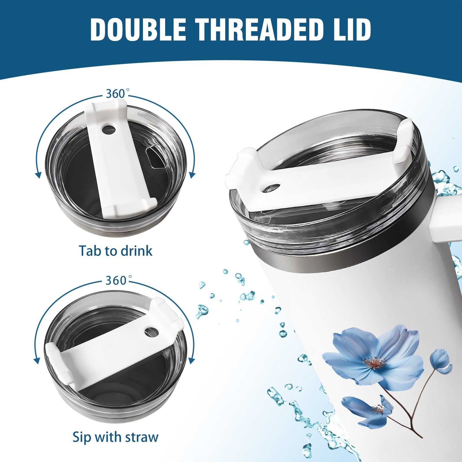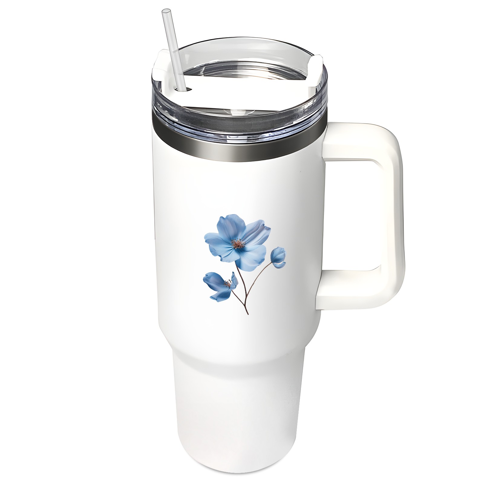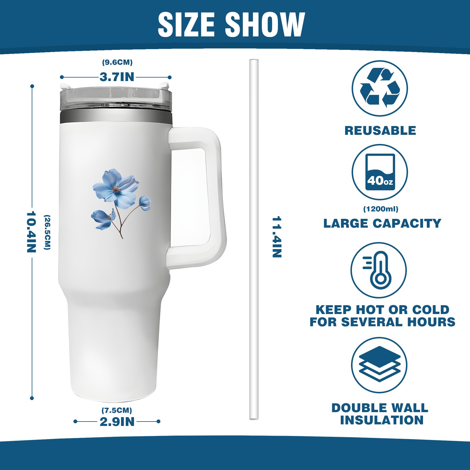 40oz Tumbler with Straw Lid , Handle& Double Wall Vacuum Insulated Cup Reusable Stainless Steel Bottle Trave Mug coffee tumblers BPA Powder Coated Flower (183)