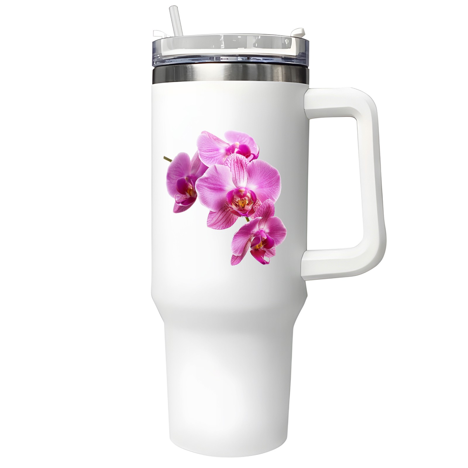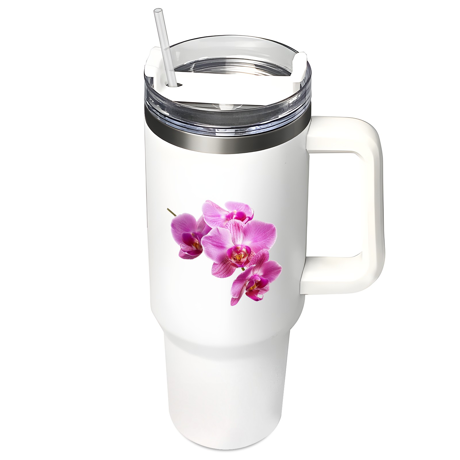 40oz Tumbler with Straw Lid , Handle& Double Wall Vacuum Insulated Cup Reusable Stainless Steel Bottle Trave Mug coffee tumblers BPA Powder Coated Flower (180)