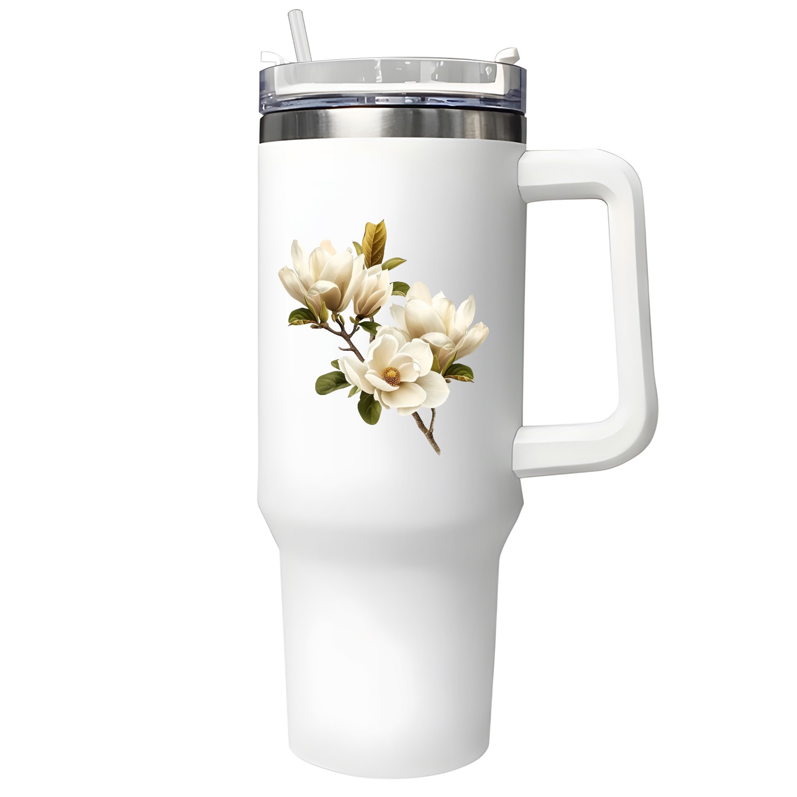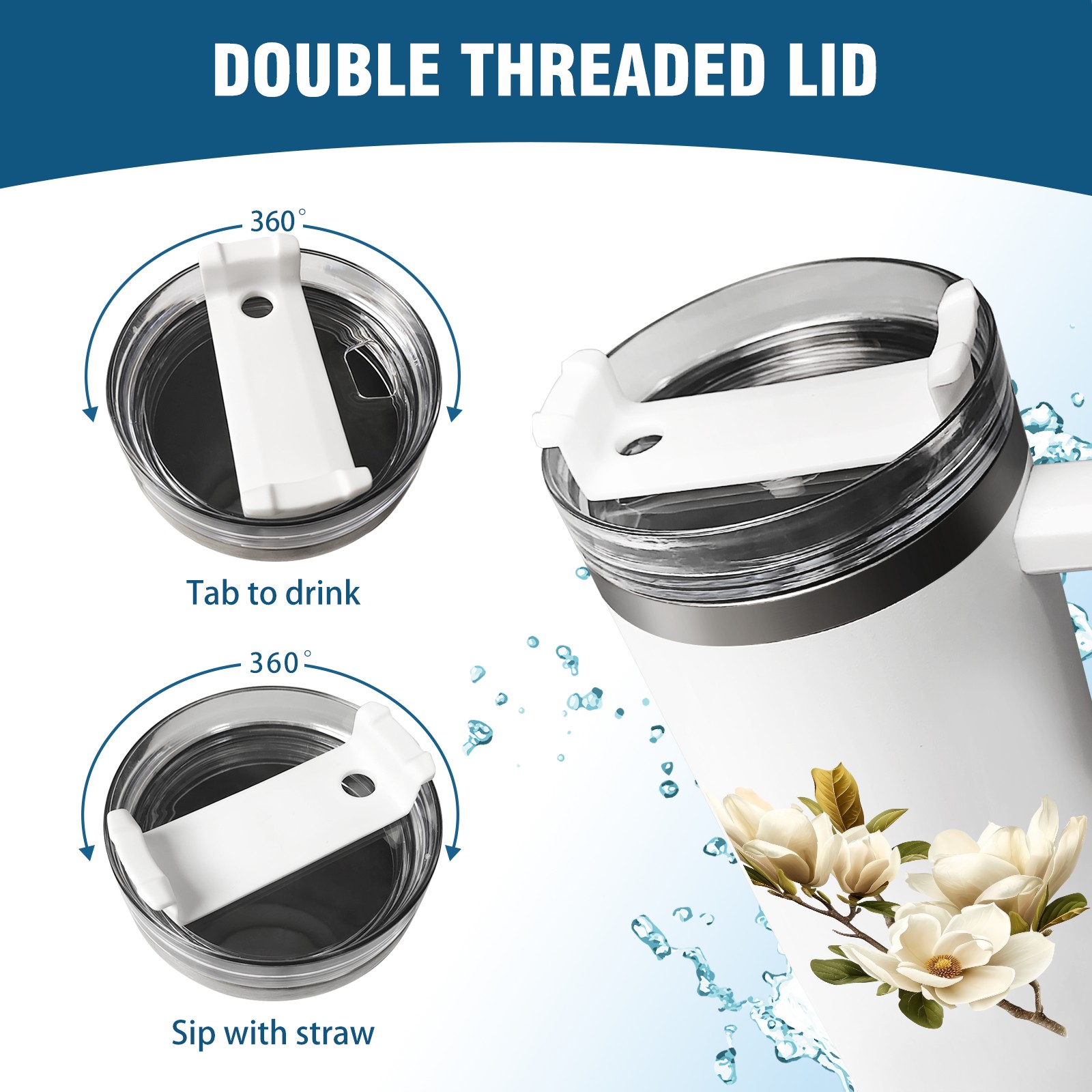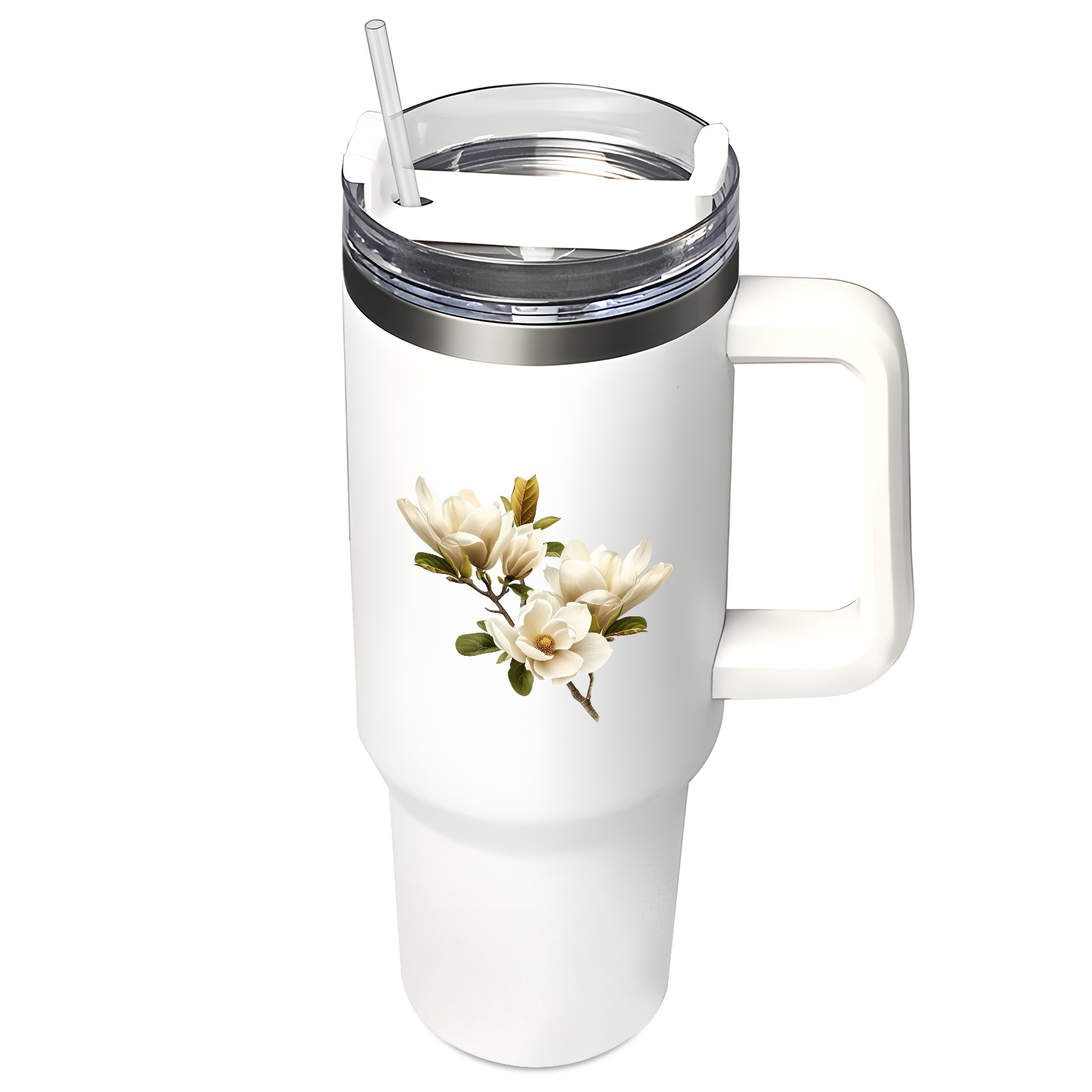 40oz Tumbler with Straw Lid , Handle& Double Wall Vacuum Insulated Cup Reusable Stainless Steel Bottle Trave Mug coffee tumblers BPA Powder Coated Flower (179)