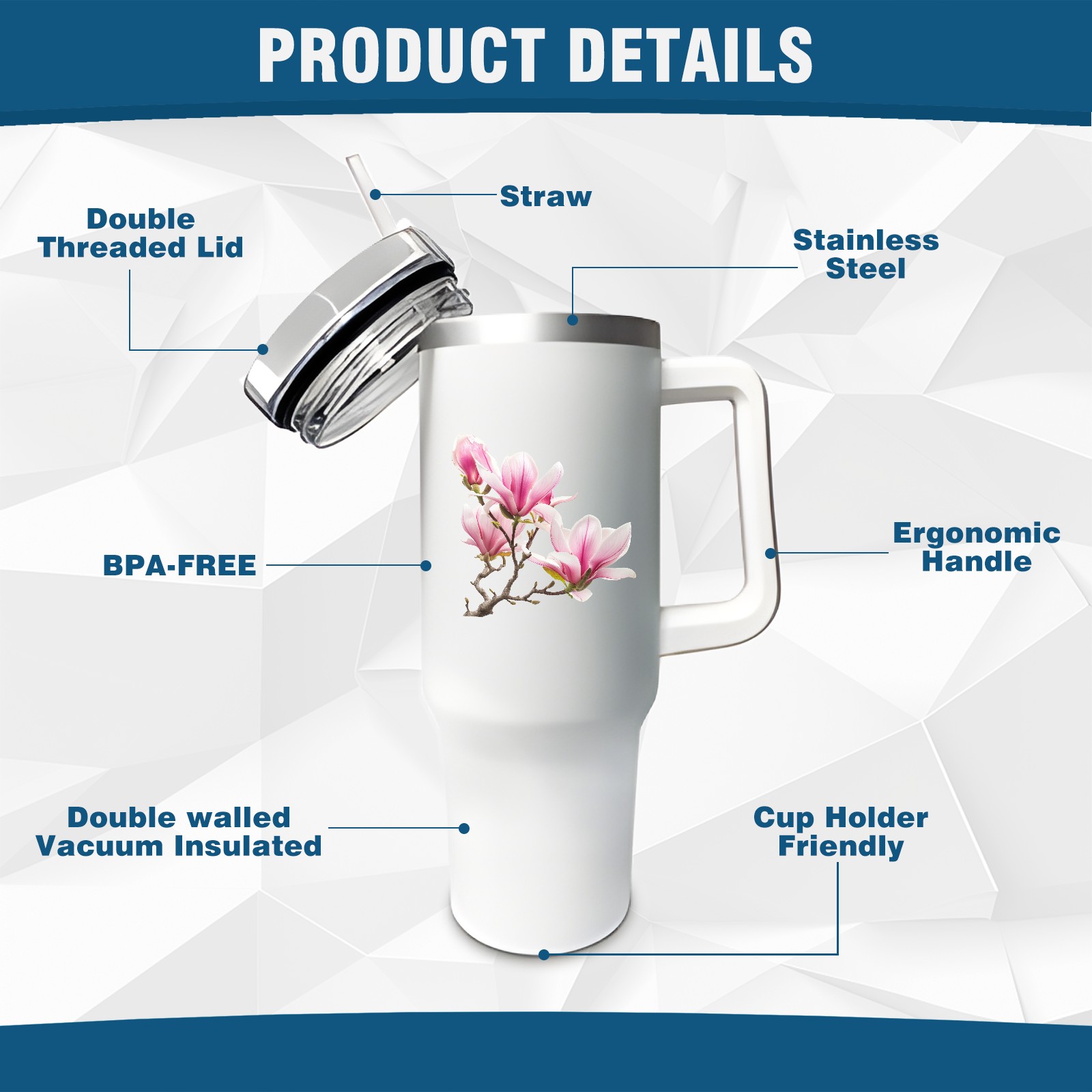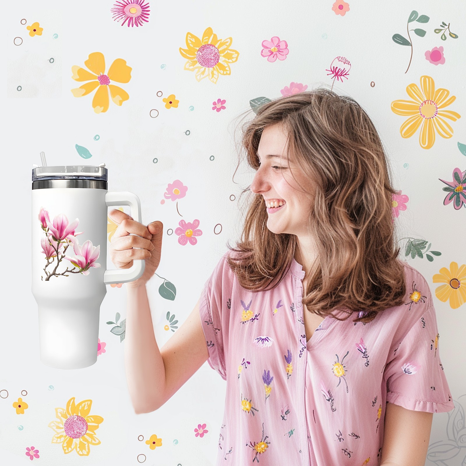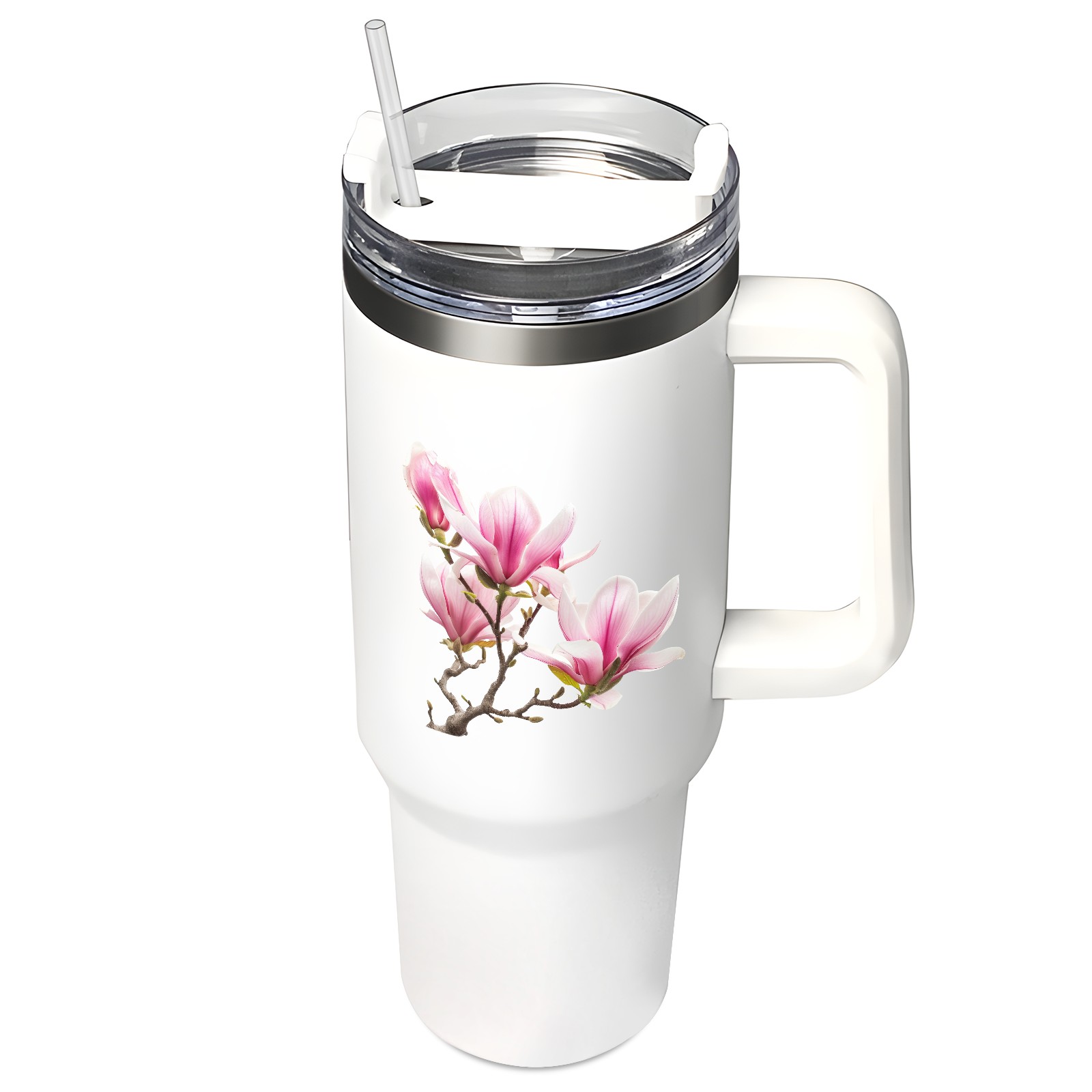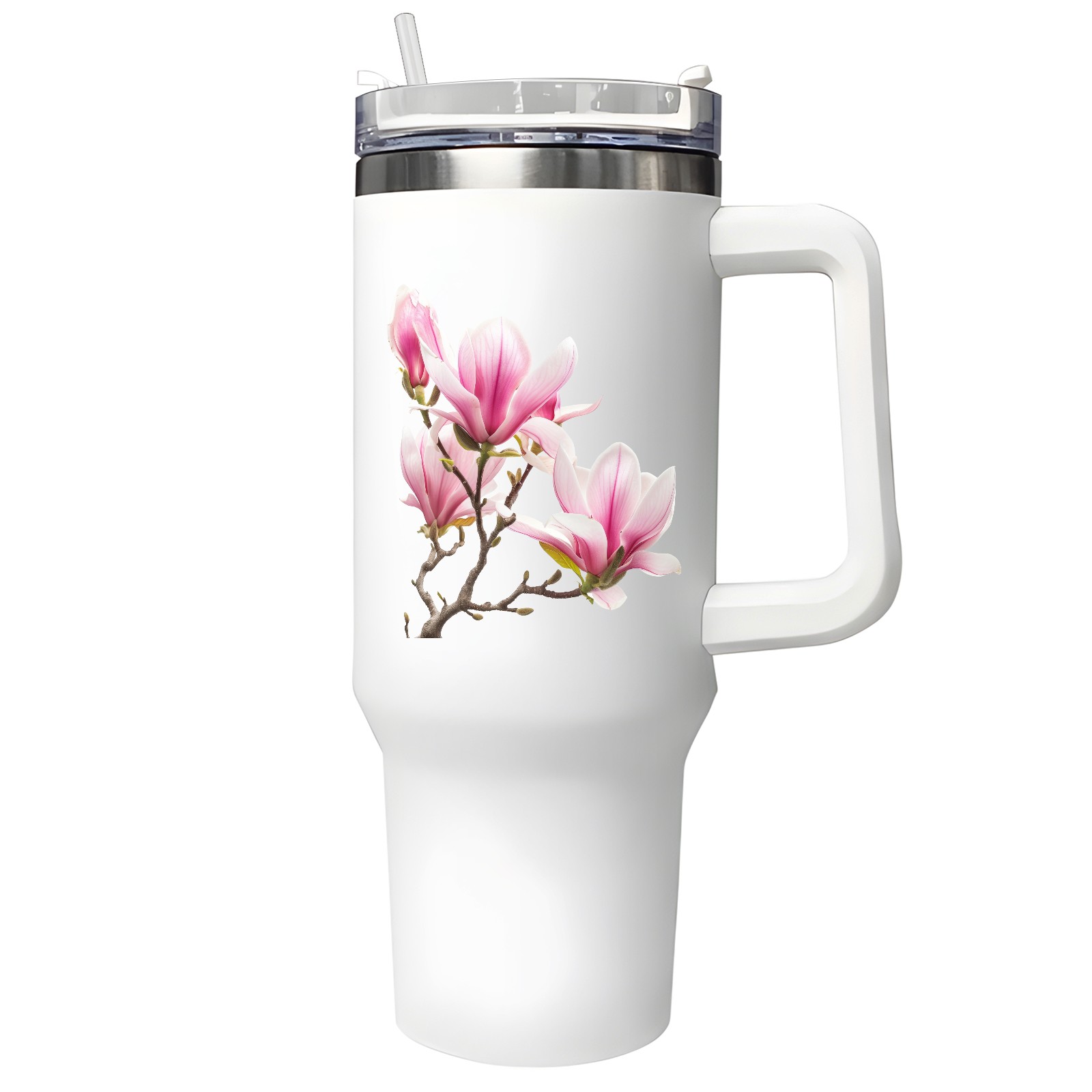 40oz Tumbler with Straw Lid , Handle& Double Wall Vacuum Insulated Cup Reusable Stainless Steel Bottle Trave Mug coffee tumblers BPA Powder Coated Flower (178)