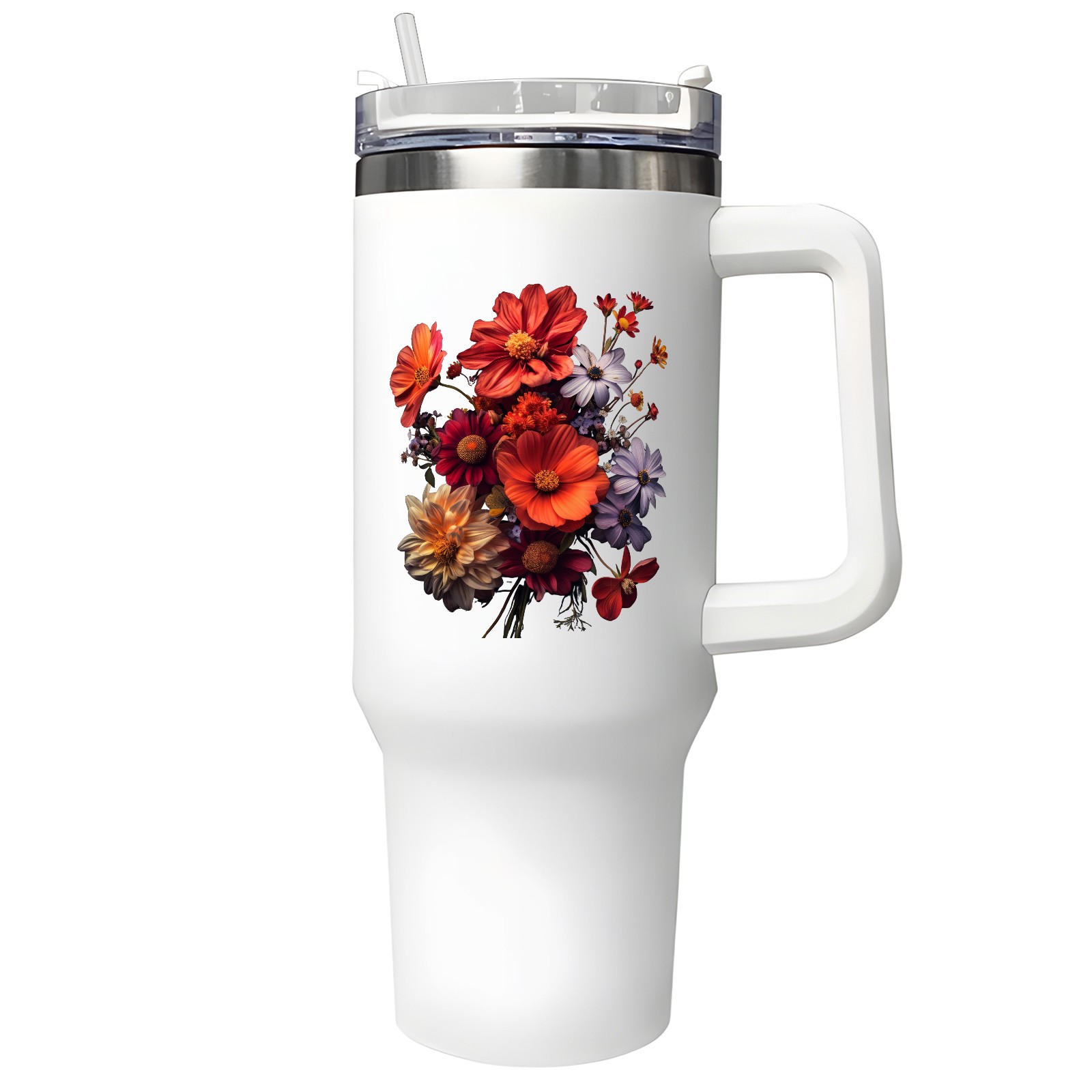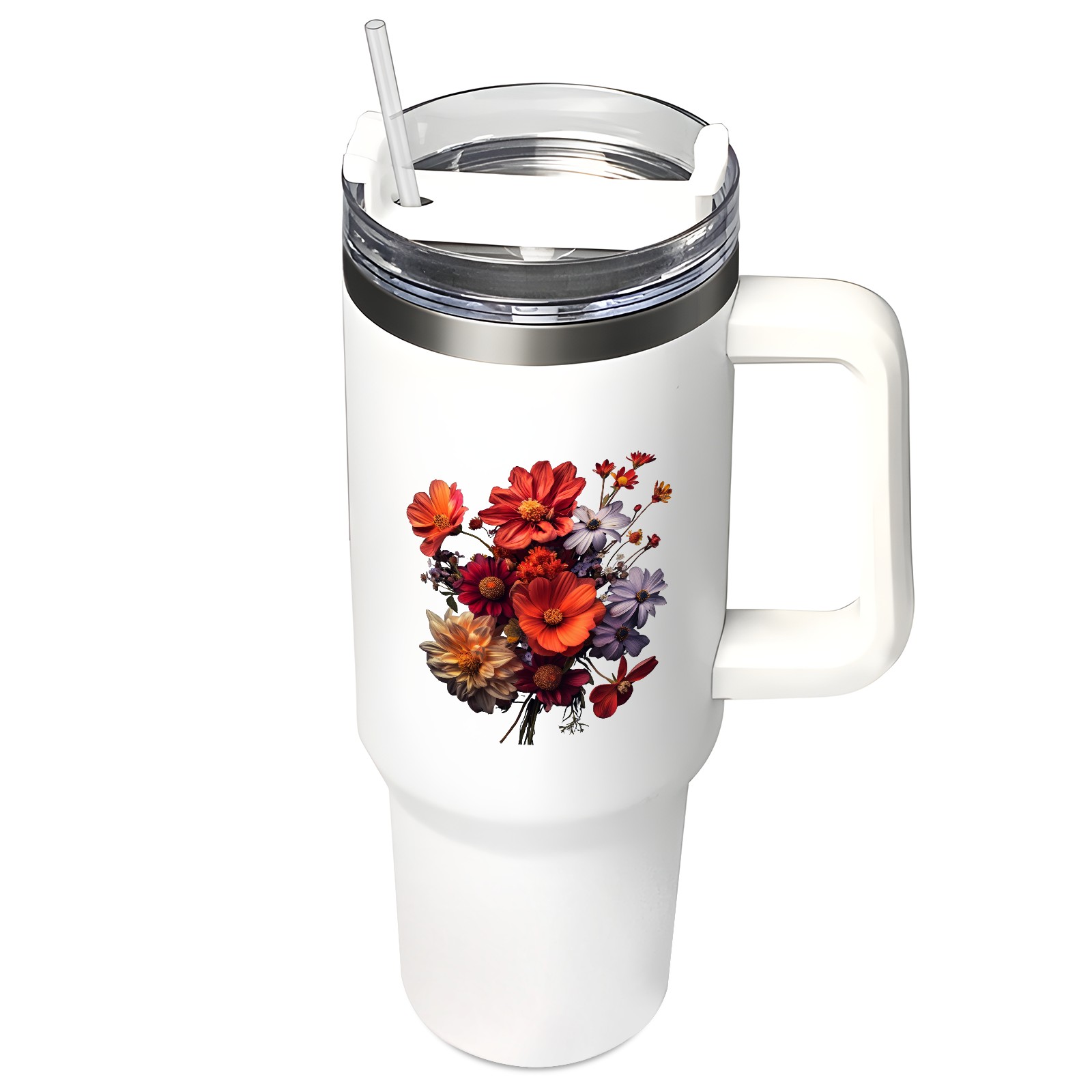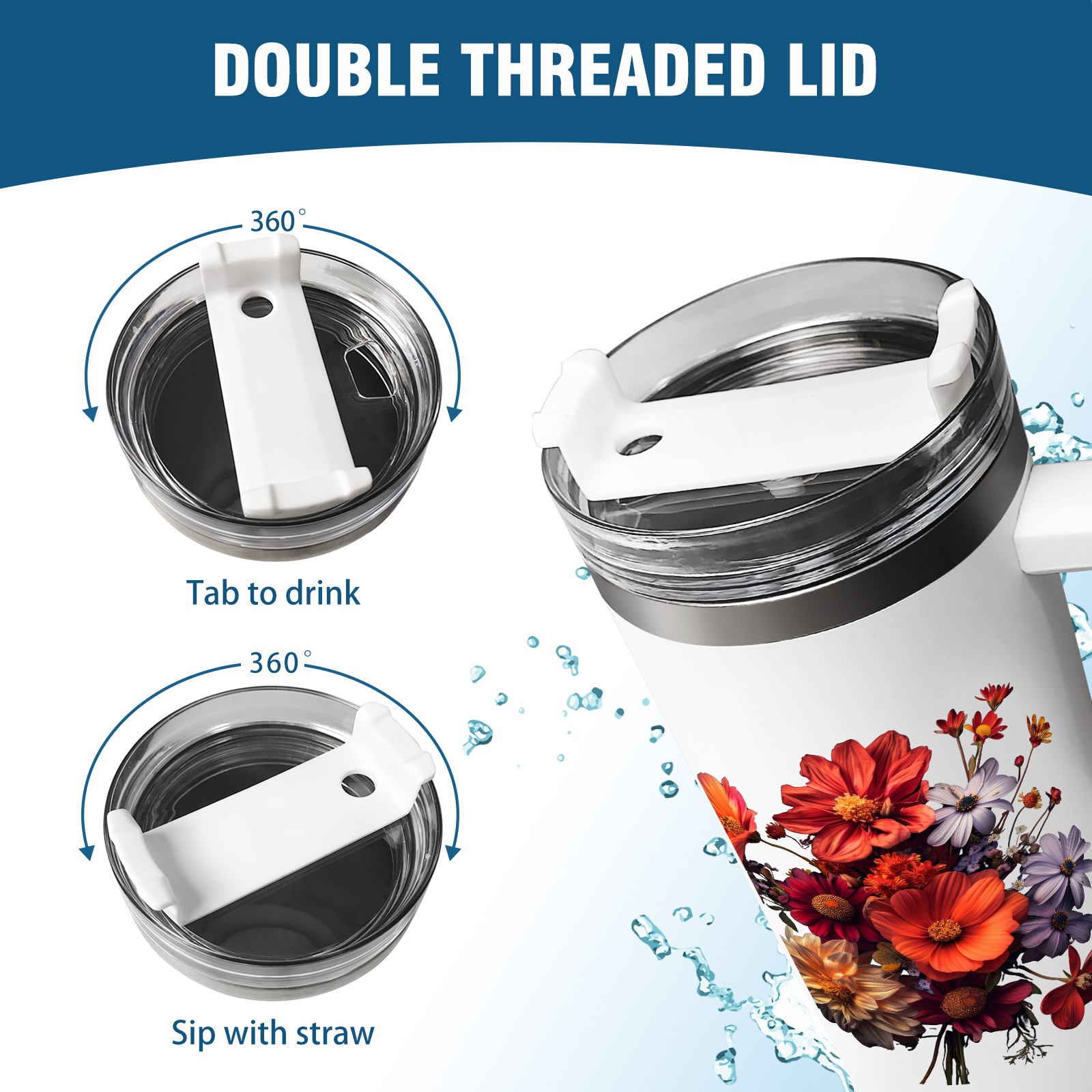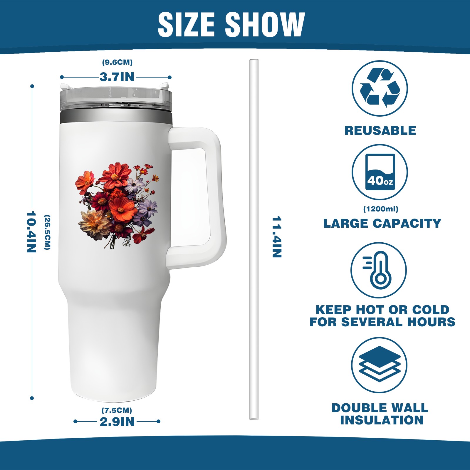 40oz Tumbler with Straw Lid , Handle& Double Wall Vacuum Insulated Cup Reusable Stainless Steel Bottle Trave Mug coffee tumblers BPA Powder Coated Flower (176)