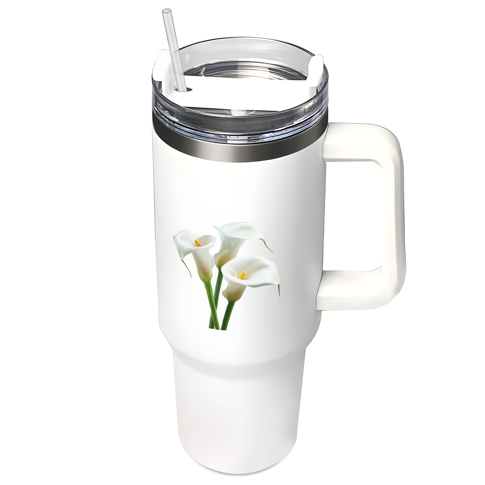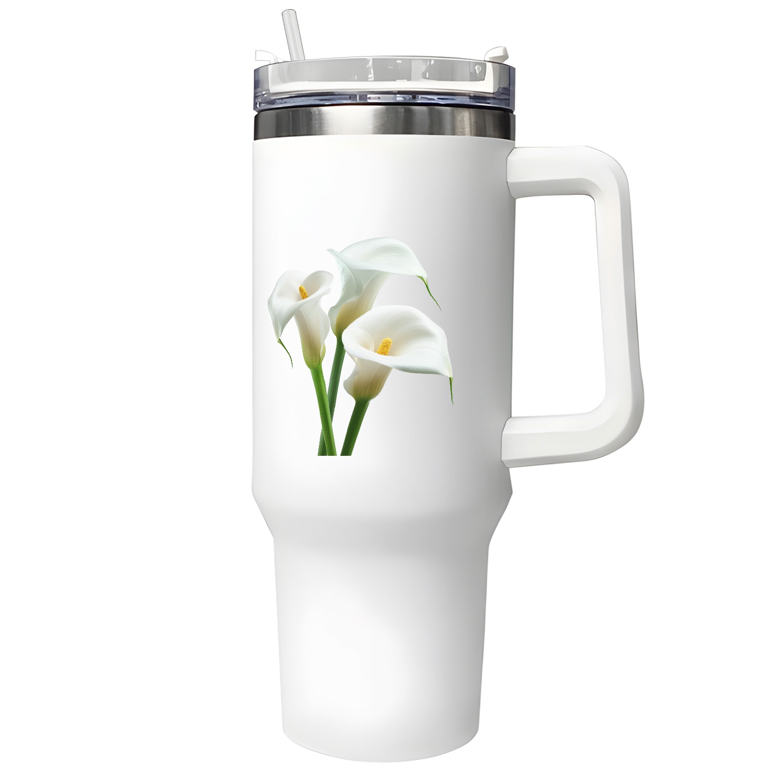 40oz Tumbler with Straw Lid , Handle& Double Wall Vacuum Insulated Cup Reusable Stainless Steel Bottle Trave Mug coffee tumblers BPA Powder Coated Flower (169)