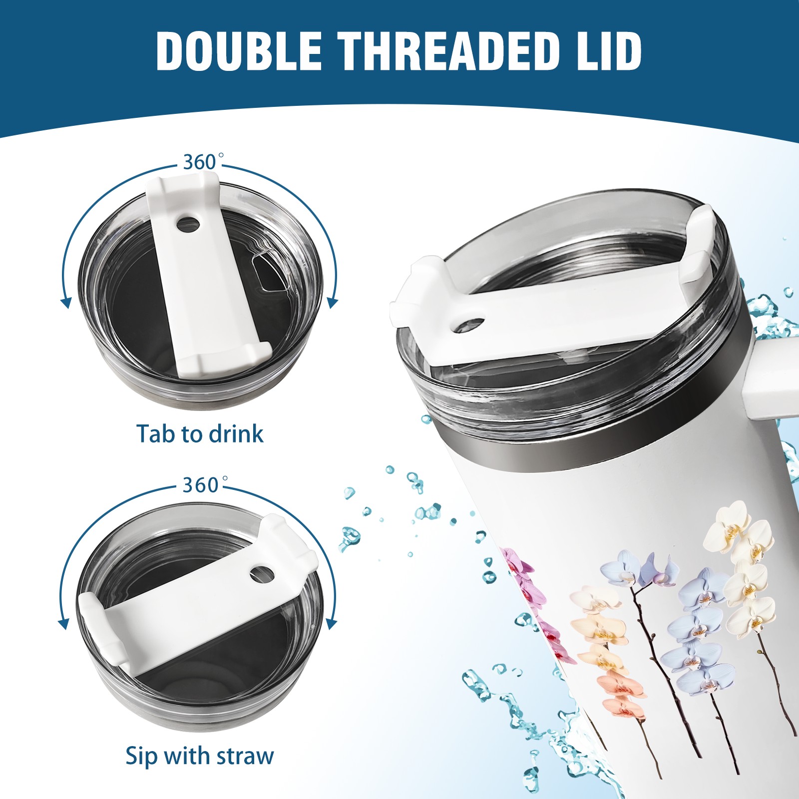 • <b>ZXIVGOQFR Tumbler Is Your Dream Cup! </b>Whichever way your day flows, tumbler keeps you refreshed with fewer refills. </br> </br> ●<b>Double Wall Vacuum Insulation </b>means drinks stay cold, iced or hot for hours. </br> ●With advanced lid construction,STRAW OPENING designed to resist splashes with a seal that holds the reusable straw in place, a drink opening, and a full-cover top for added leak resistance. Totally spill proof! </br> ●ZXIVGOQFR Tumbler also included an ergonomic, comfort-grip HANDLE, 40 ounce tumbler cup is 2.9” wide at the base and 3.7” at the top. Narrow base fits just about any car cup holder. So you can bring a smoothie cup, iced coffee cup or extra espresso for your daily commute or weekend outing.