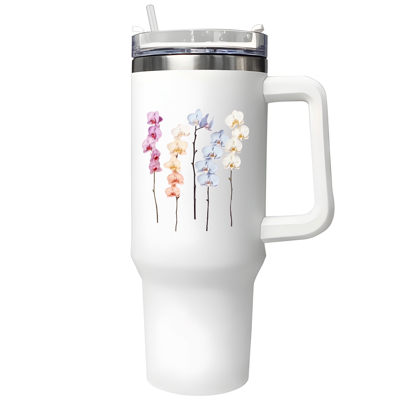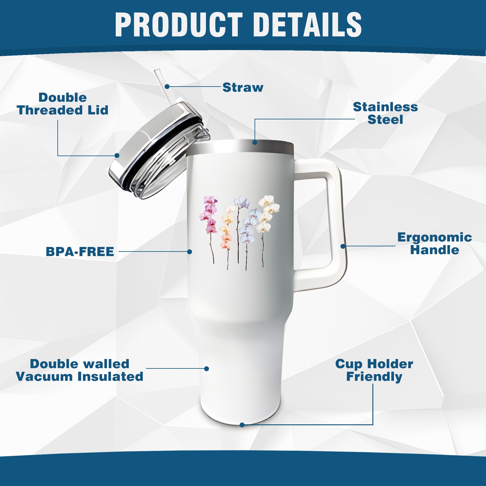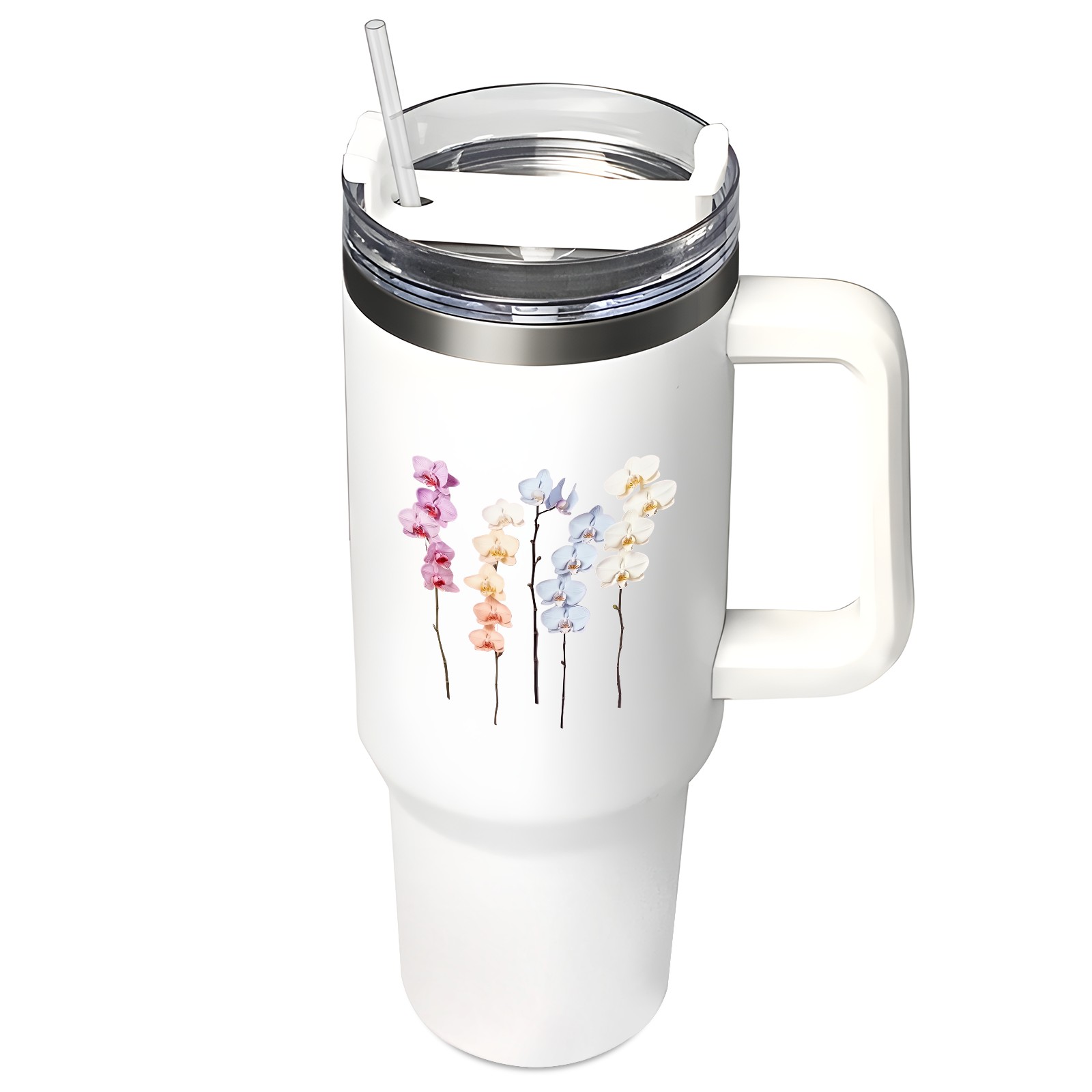 40oz Tumbler with Straw Lid , Handle& Double Wall Vacuum Insulated Cup Reusable Stainless Steel Bottle Trave Mug coffee tumblers BPA Powder Coated Flower (165)