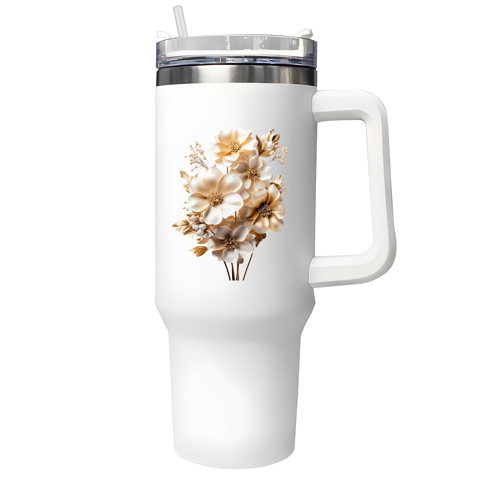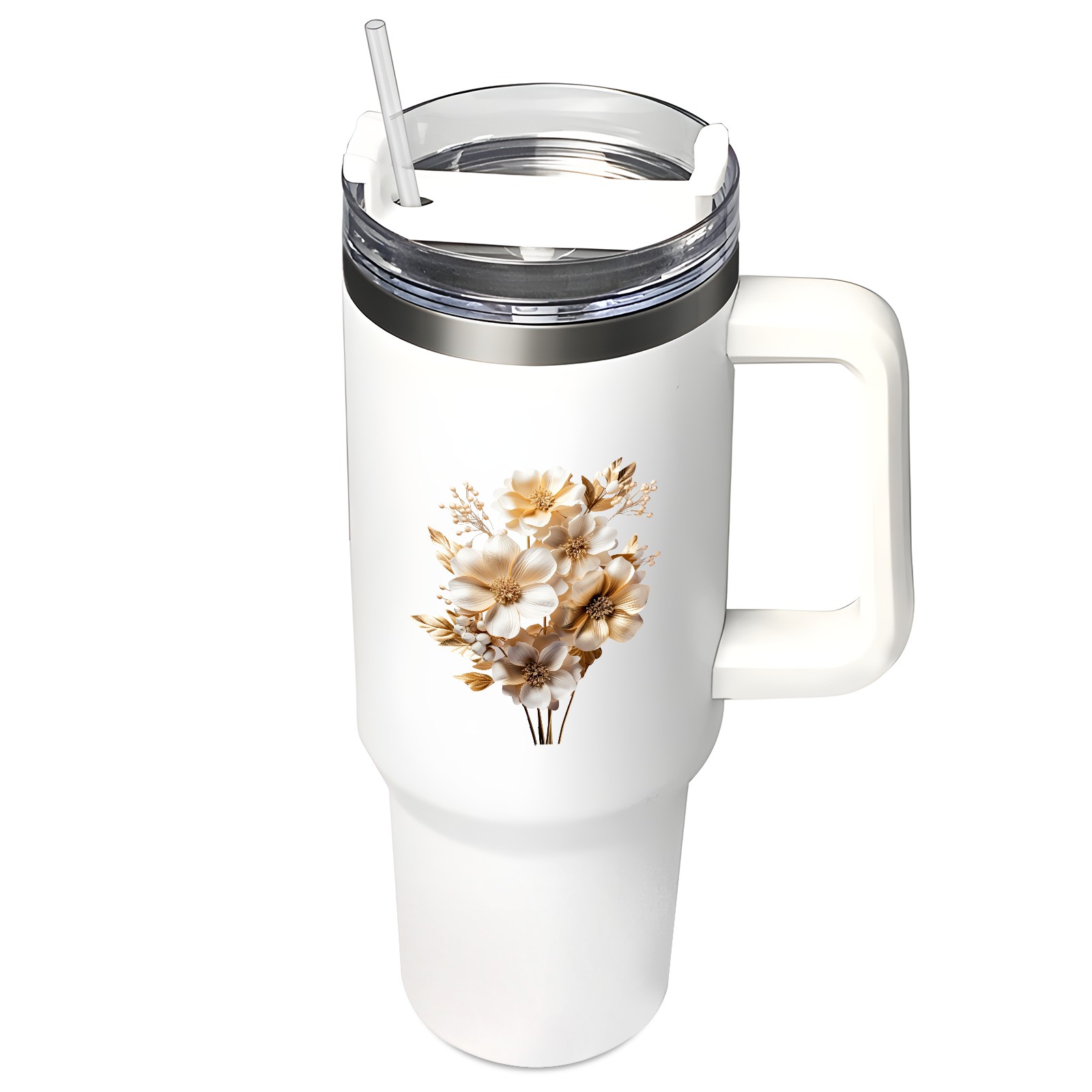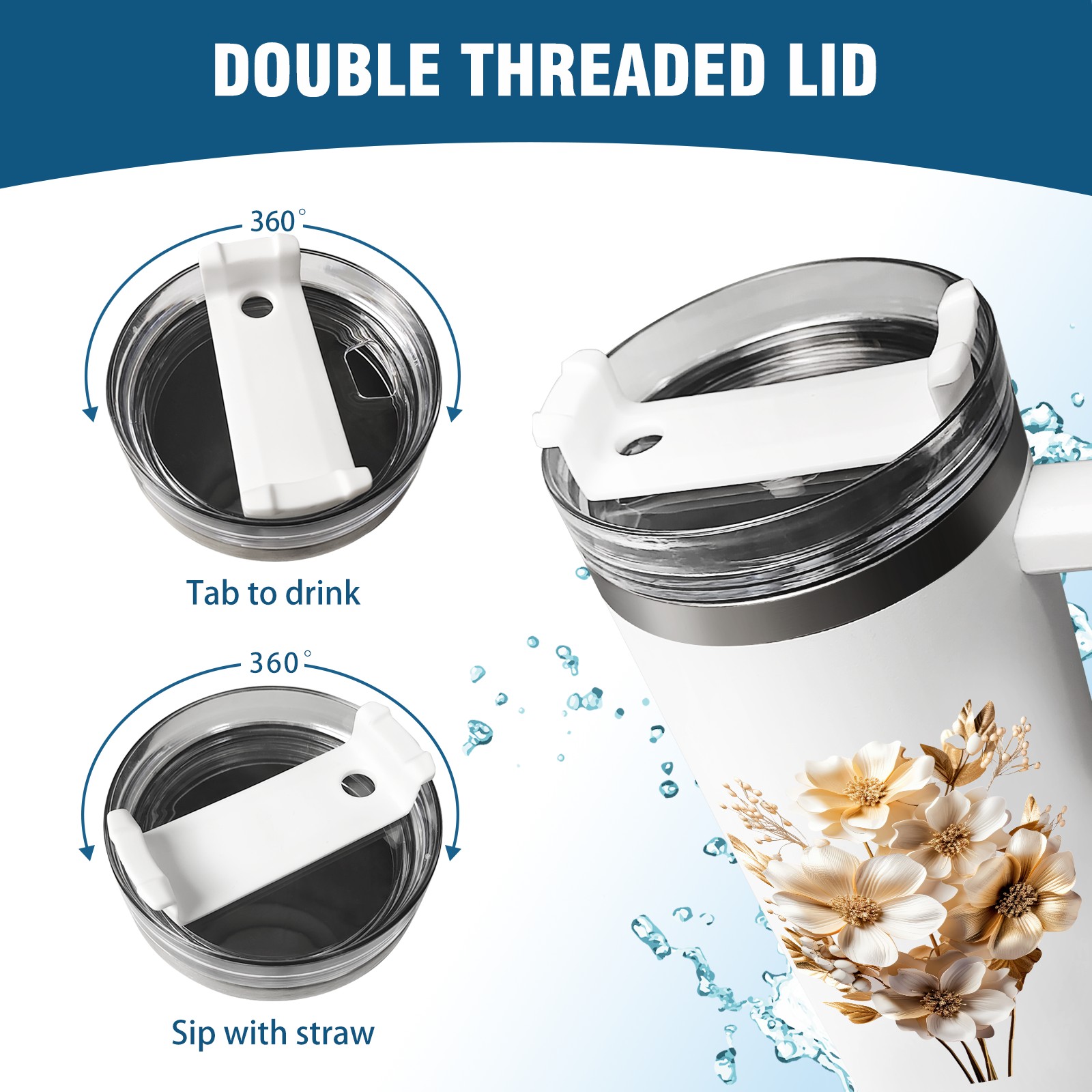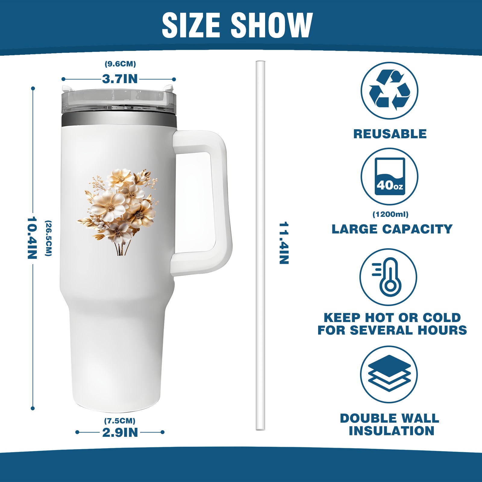 40oz Tumbler with Straw Lid , Handle& Double Wall Vacuum Insulated Cup Reusable Stainless Steel Bottle Trave Mug coffee tumblers BPA Powder Coated Flower (162)