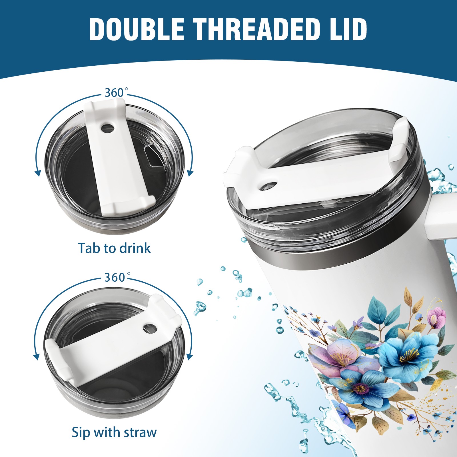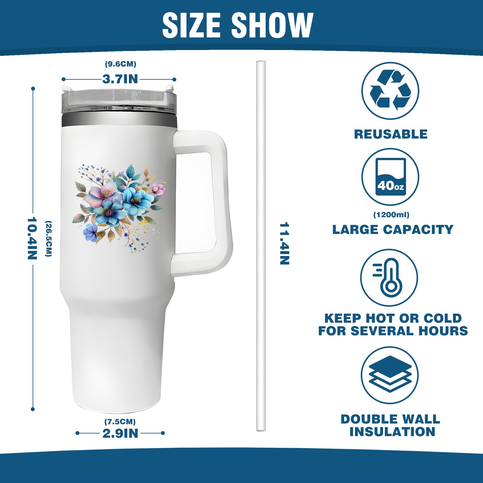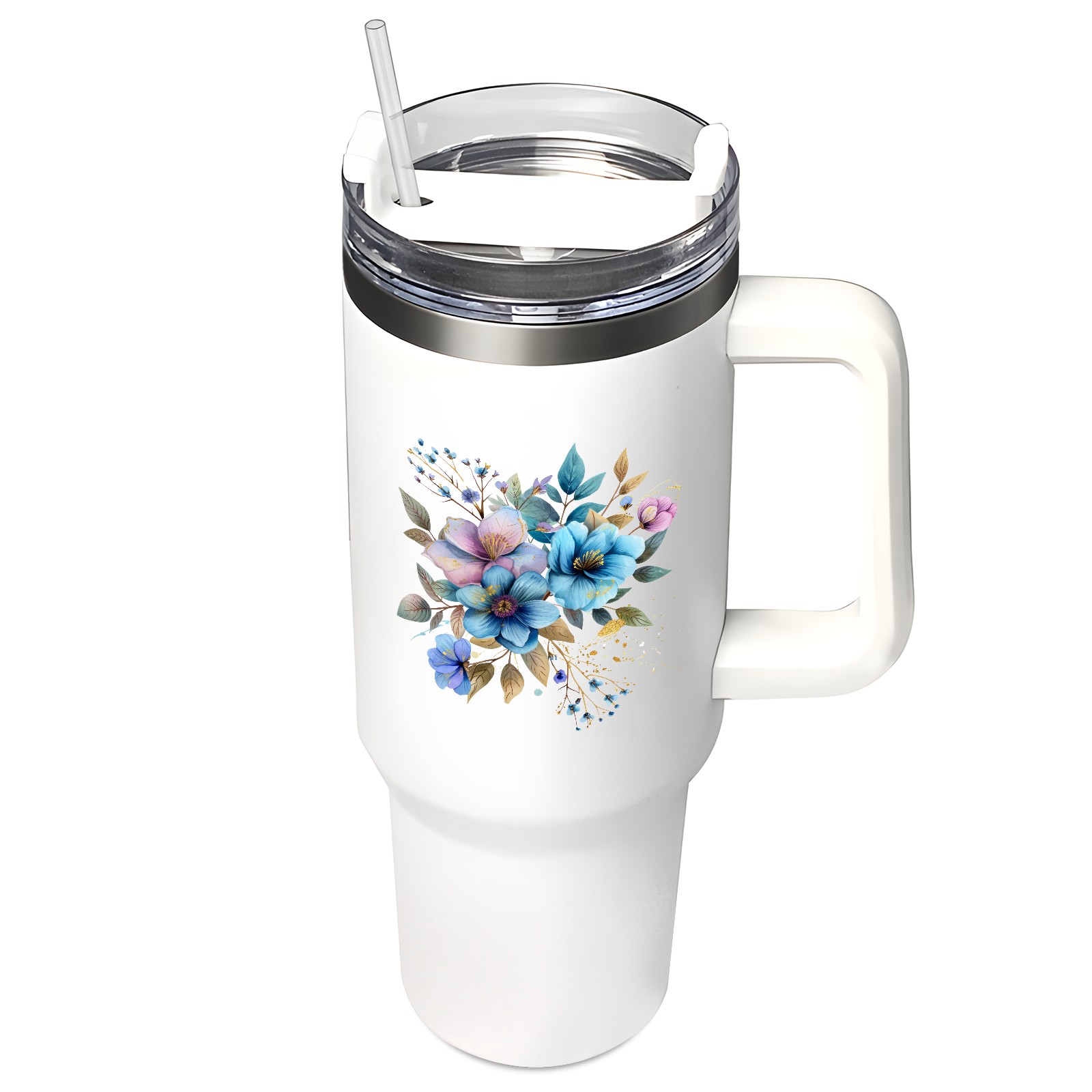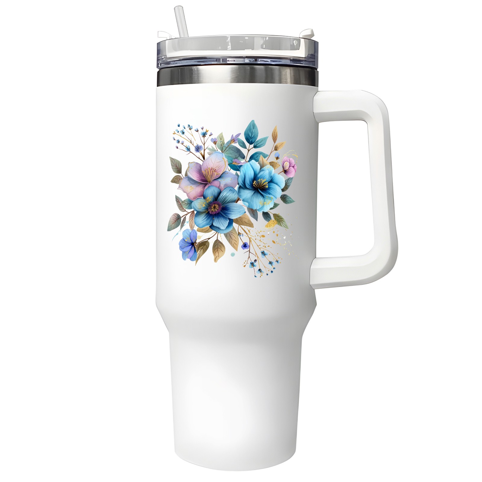 40oz Tumbler with Straw Lid , Handle& Double Wall Vacuum Insulated Cup Reusable Stainless Steel Bottle Trave Mug coffee tumblers BPA Powder Coated Flower (154)