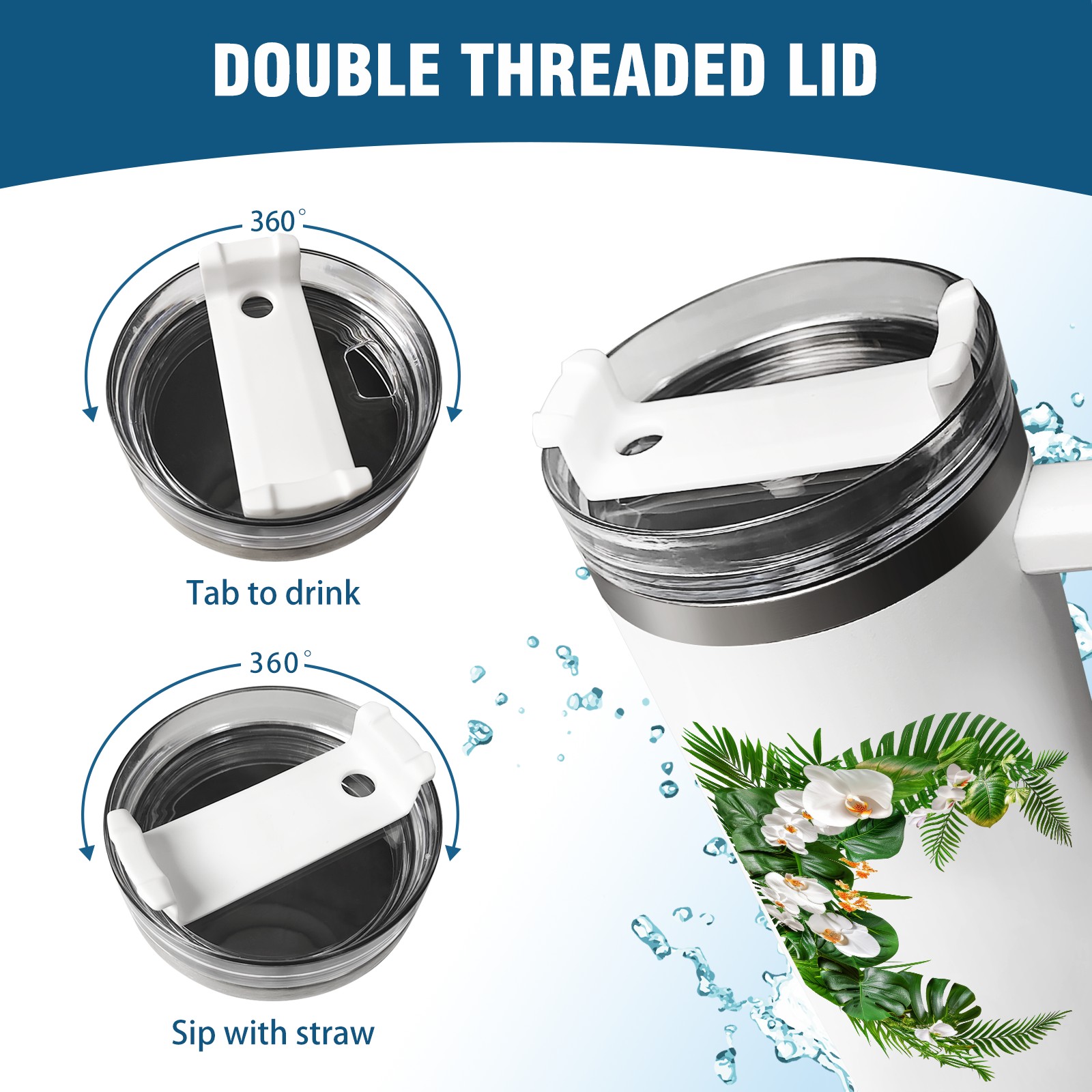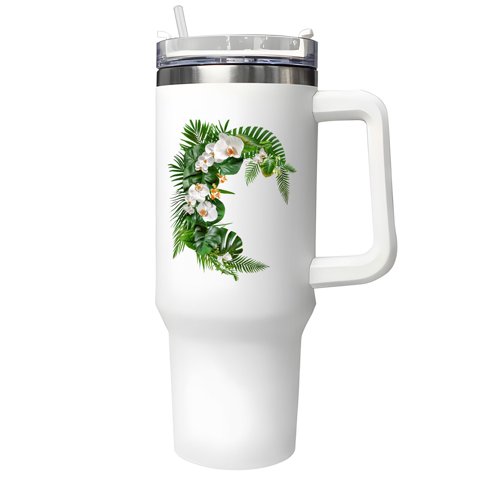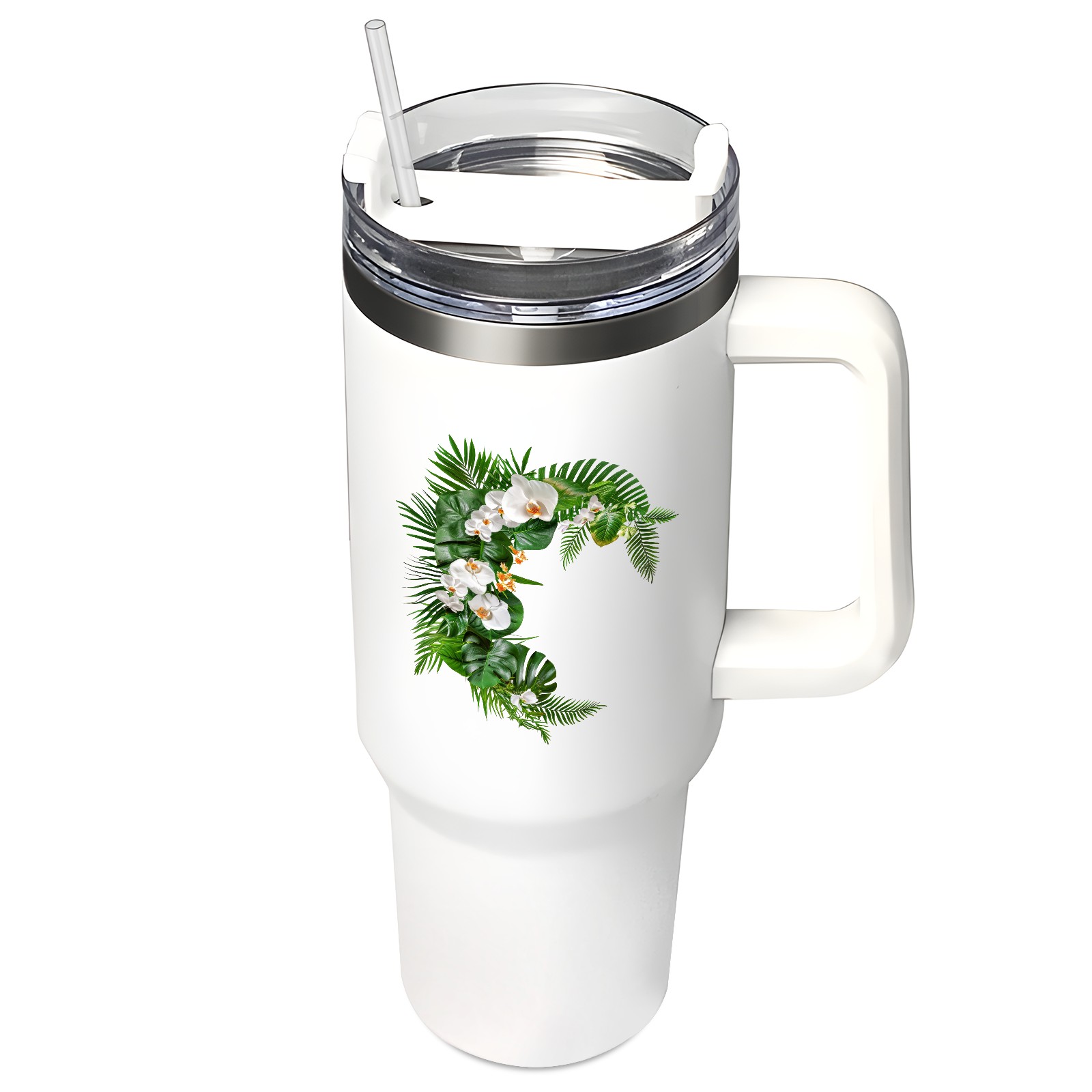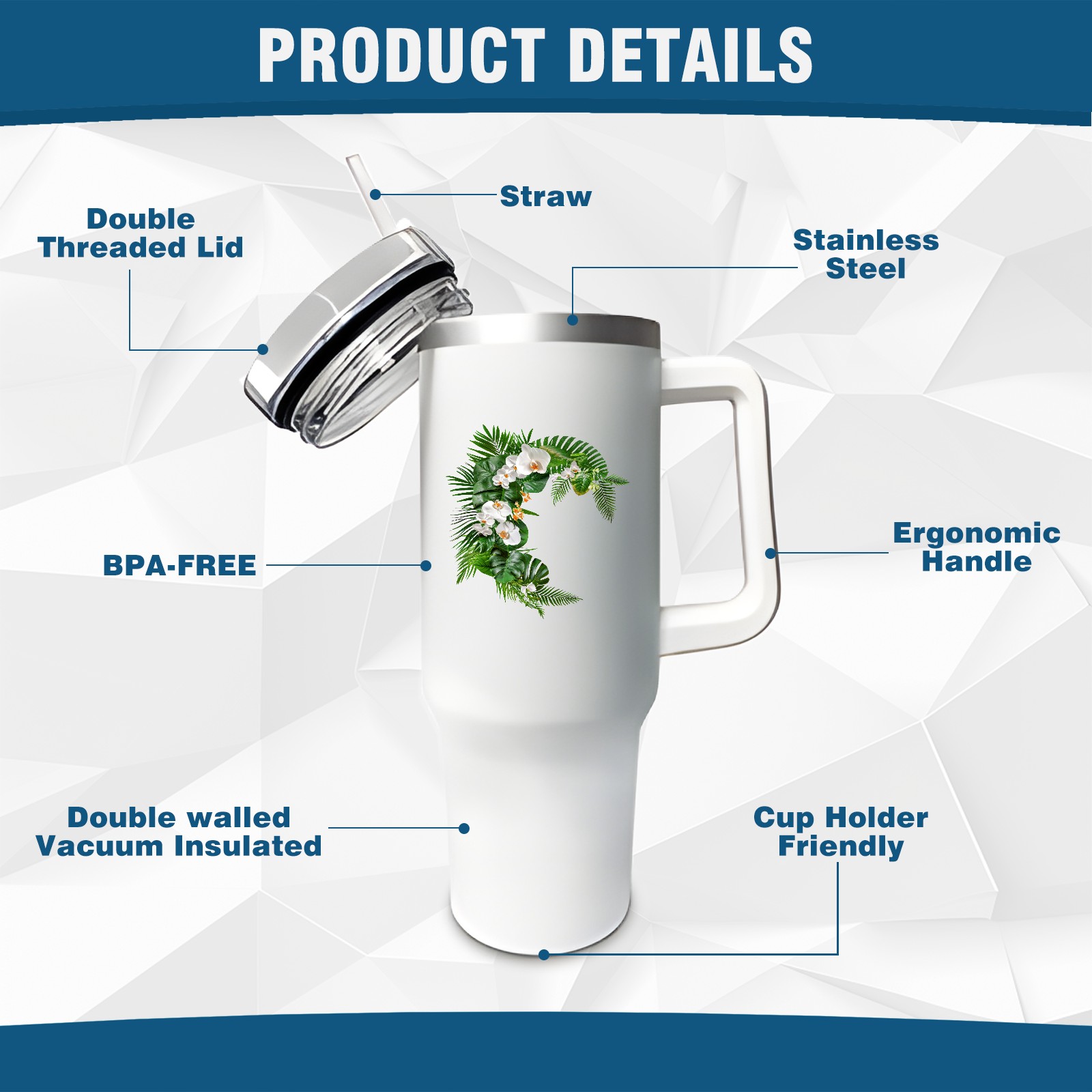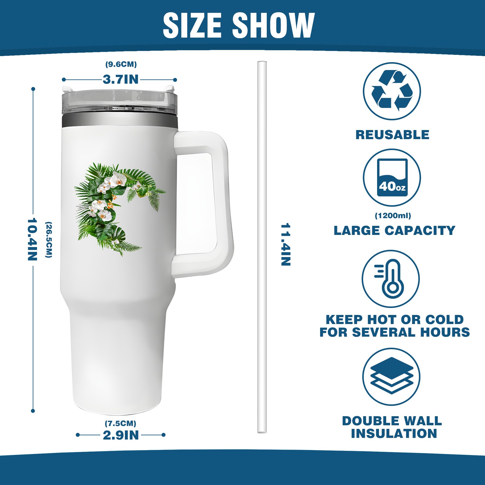 40oz Tumbler with Straw Lid , Handle& Double Wall Vacuum Insulated Cup Reusable Stainless Steel Bottle Trave Mug coffee tumblers BPA Powder Coated Flower (151)