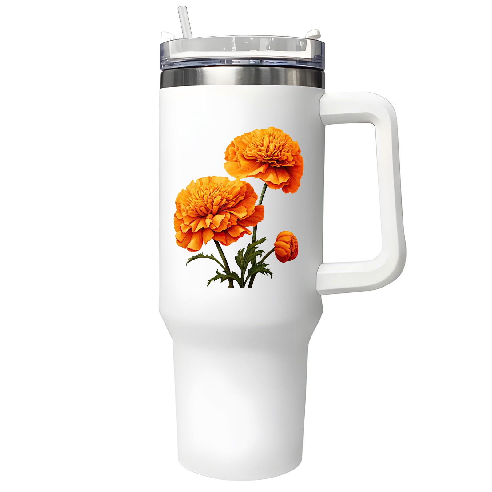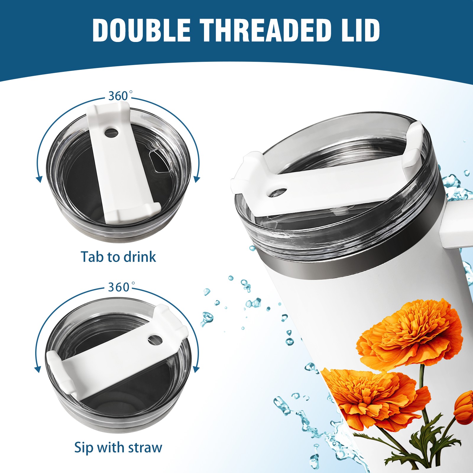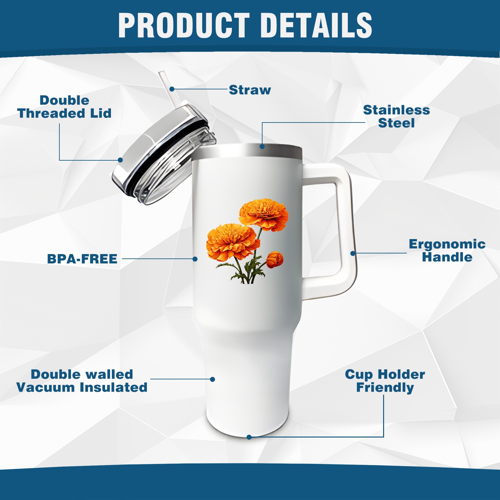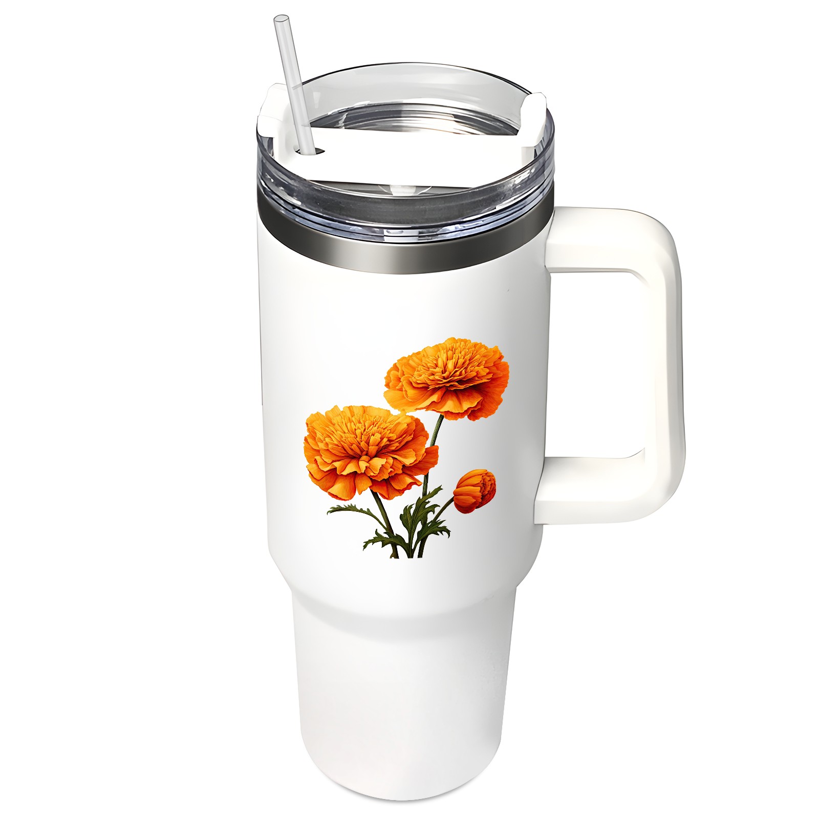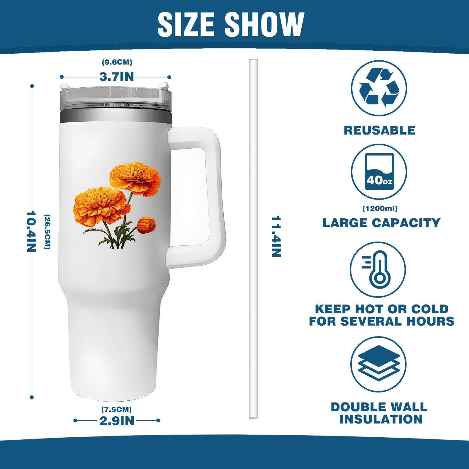 40oz Tumbler with Straw Lid , Handle& Double Wall Vacuum Insulated Cup Reusable Stainless Steel Bottle Trave Mug coffee tumblers BPA Powder Coated Flower (145)