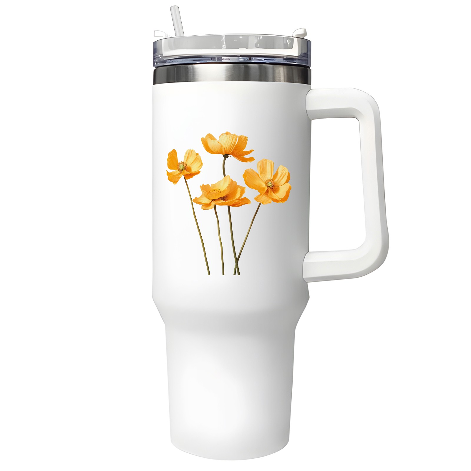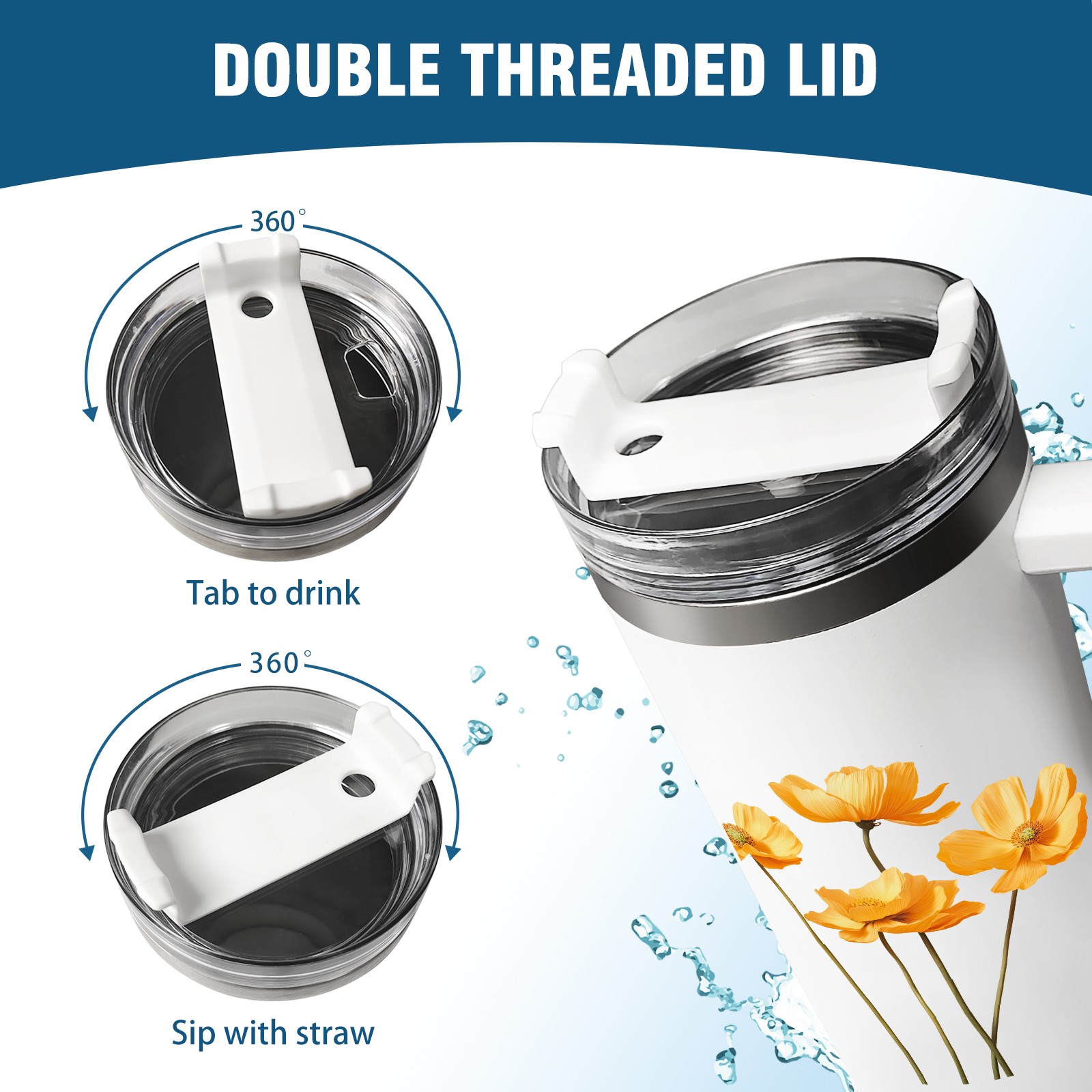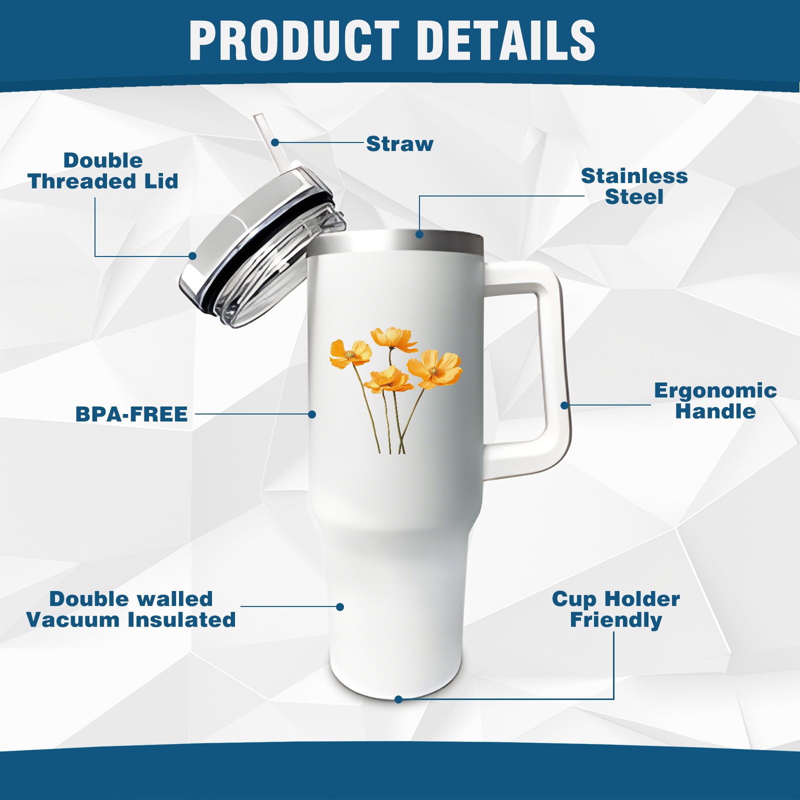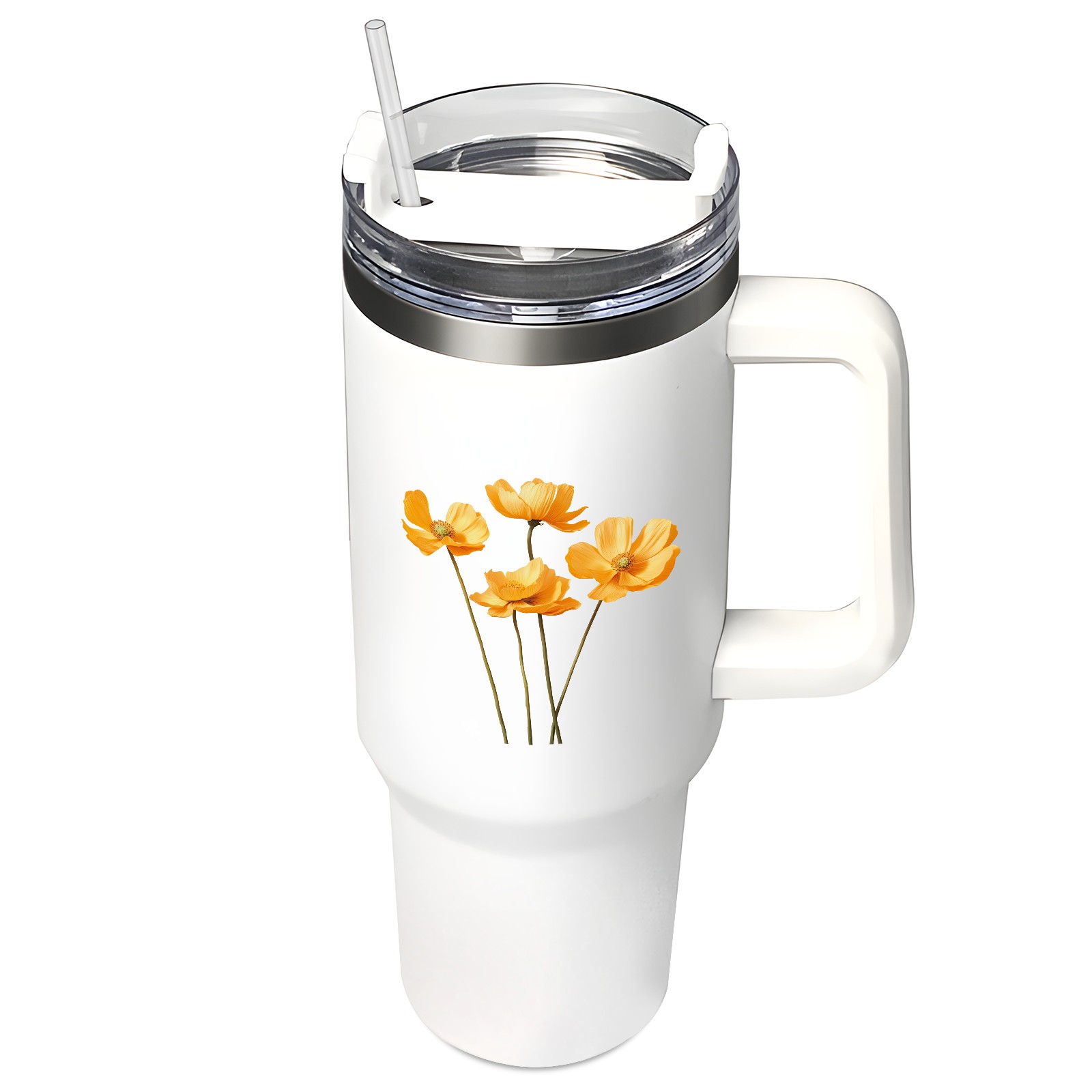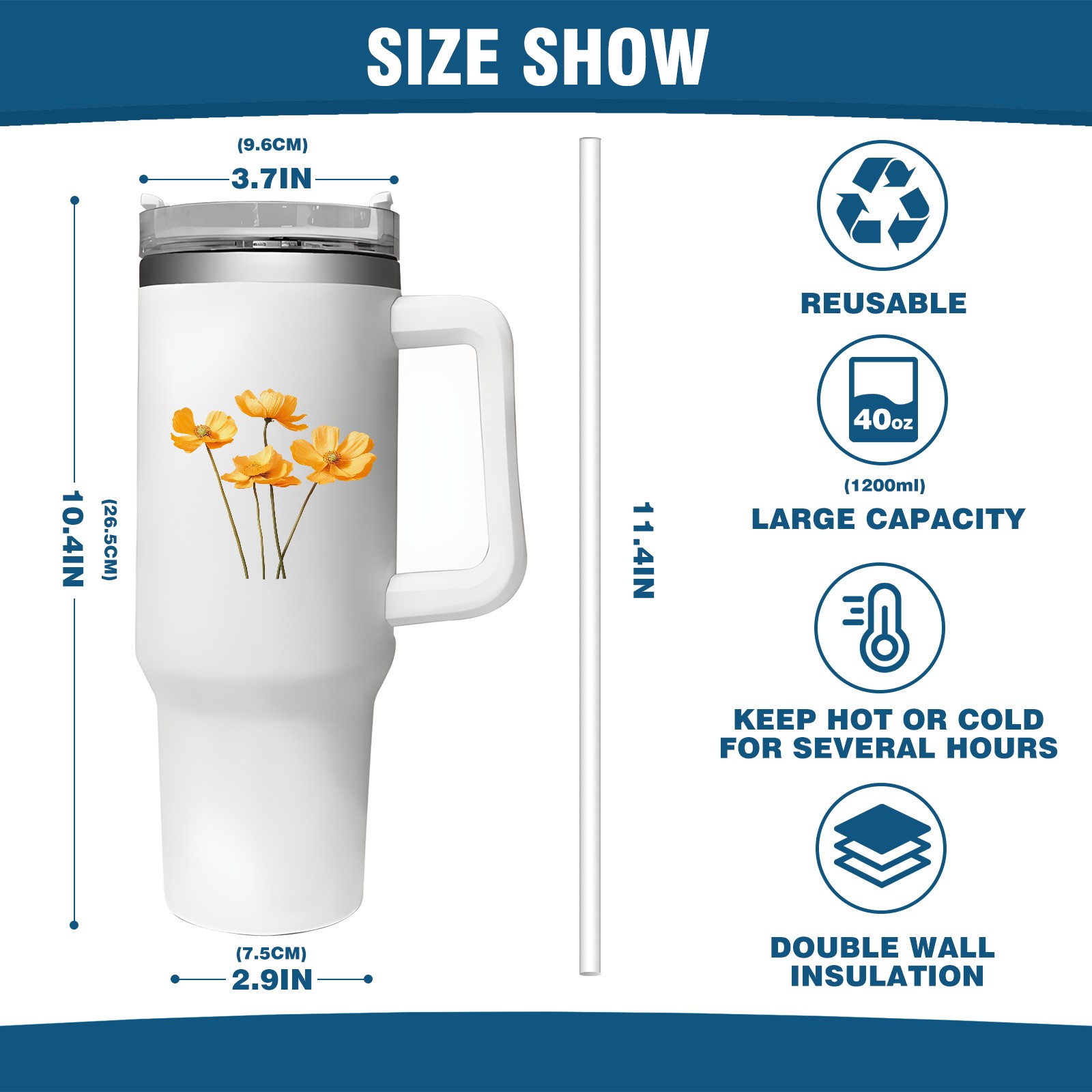 40oz Tumbler with Straw Lid , Handle& Double Wall Vacuum Insulated Cup Reusable Stainless Steel Bottle Trave Mug coffee tumblers BPA Powder Coated Flower (146)