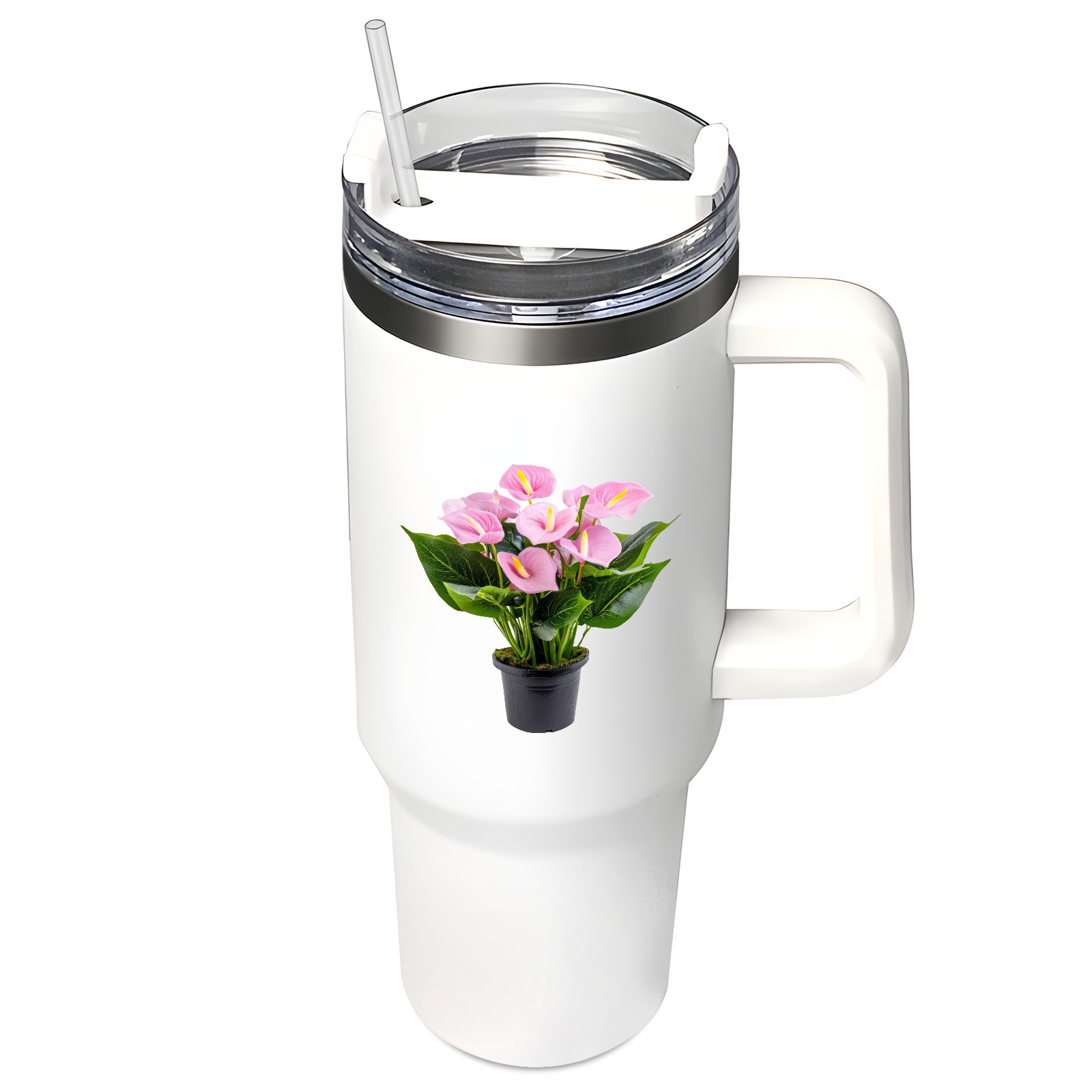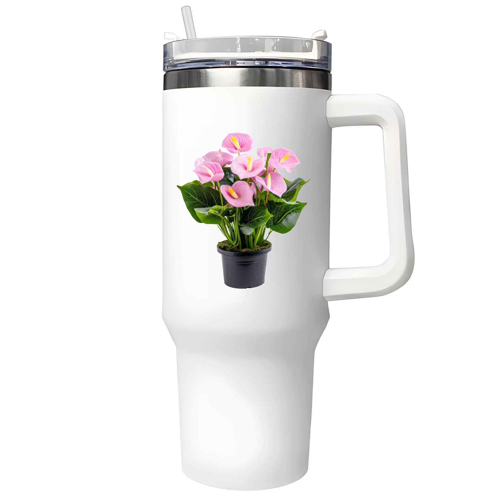 40oz Tumbler with Straw Lid , Handle& Double Wall Vacuum Insulated Cup Reusable Stainless Steel Bottle Trave Mug coffee tumblers BPA Powder Coated Flower (143)