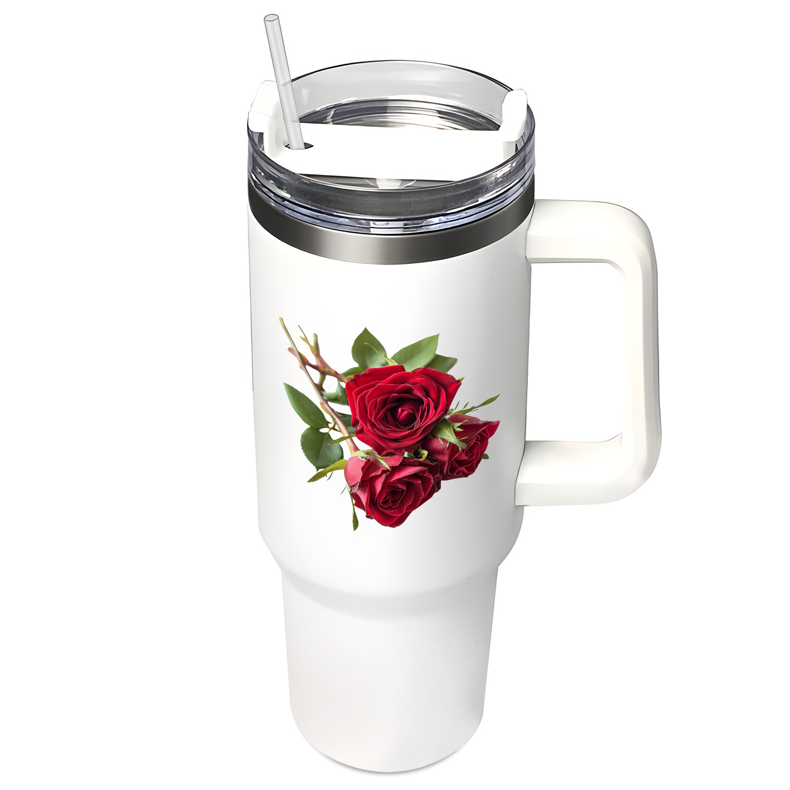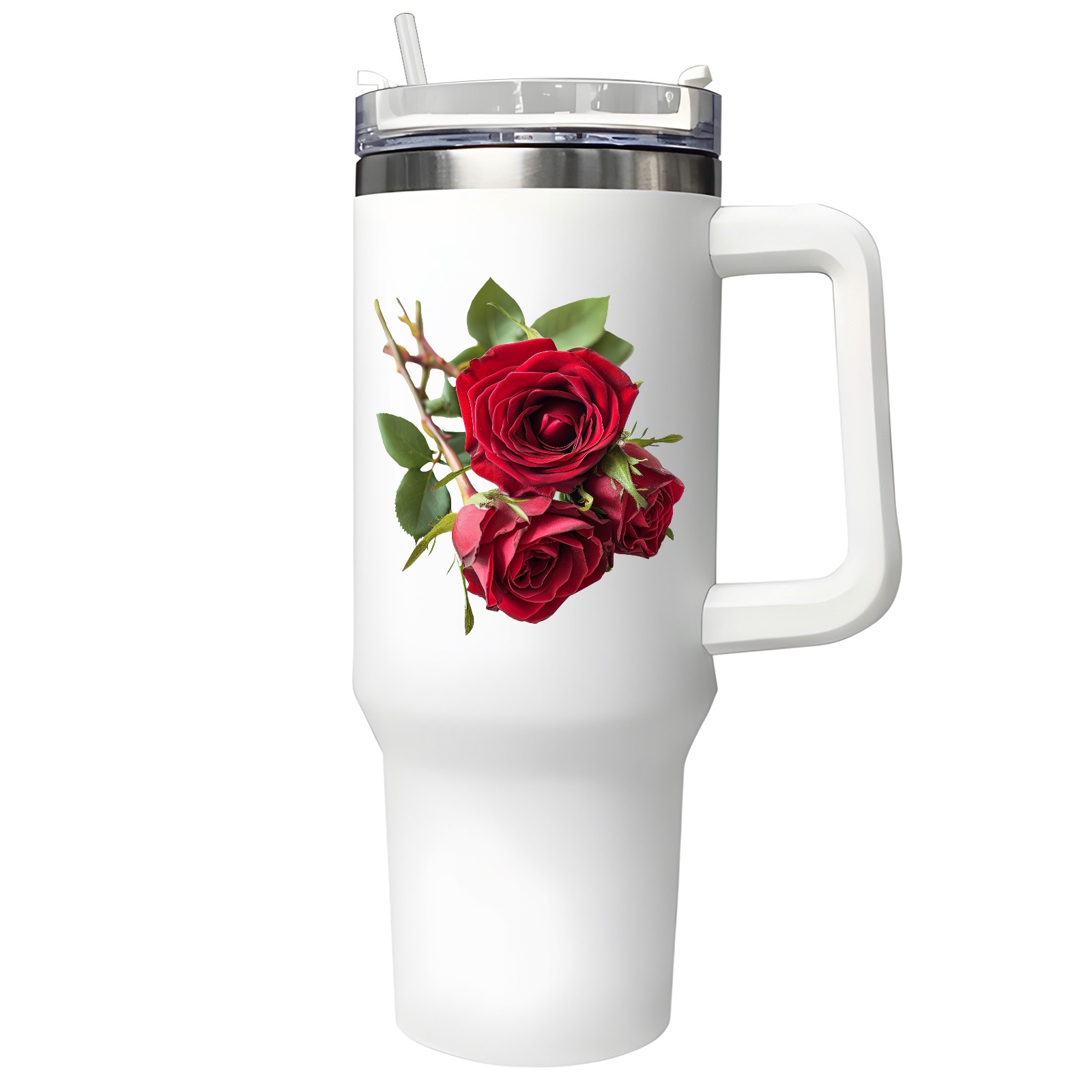 40oz Tumbler with Straw Lid , Handle& Double Wall Vacuum Insulated Cup Reusable Stainless Steel Bottle Trave Mug coffee tumblers BPA Powder Coated Flower (142)
