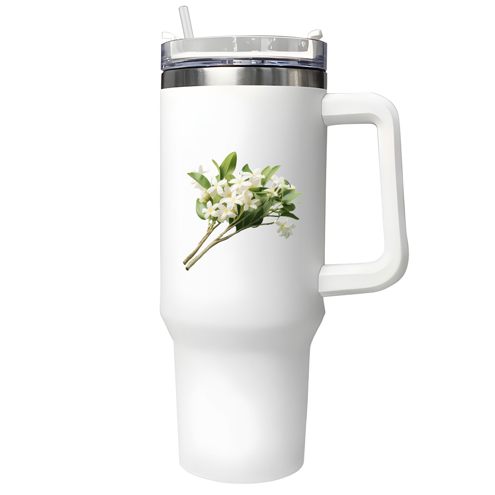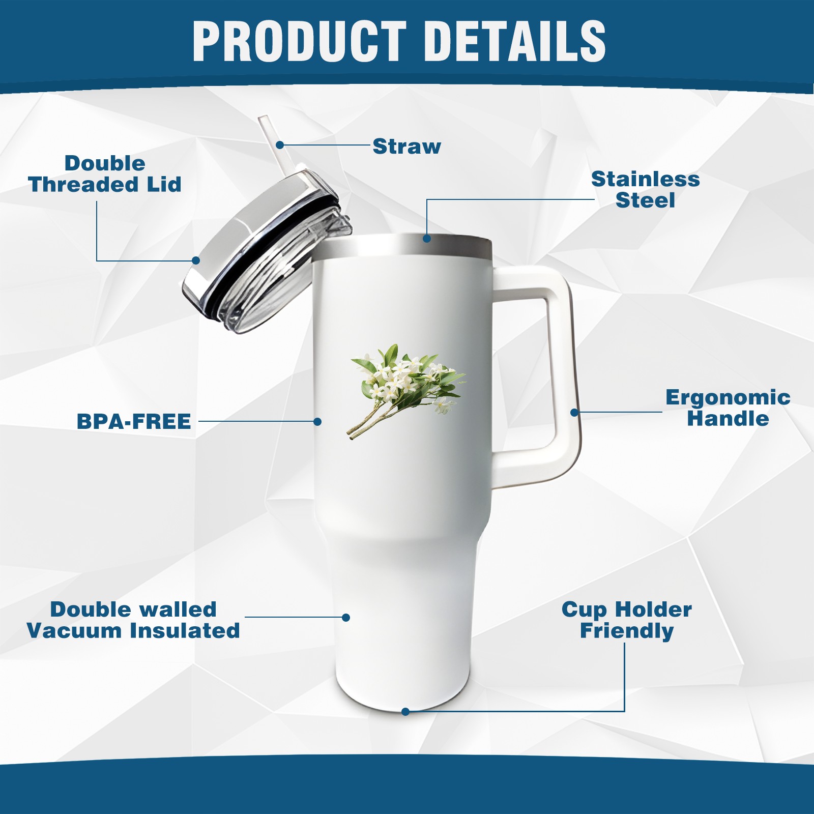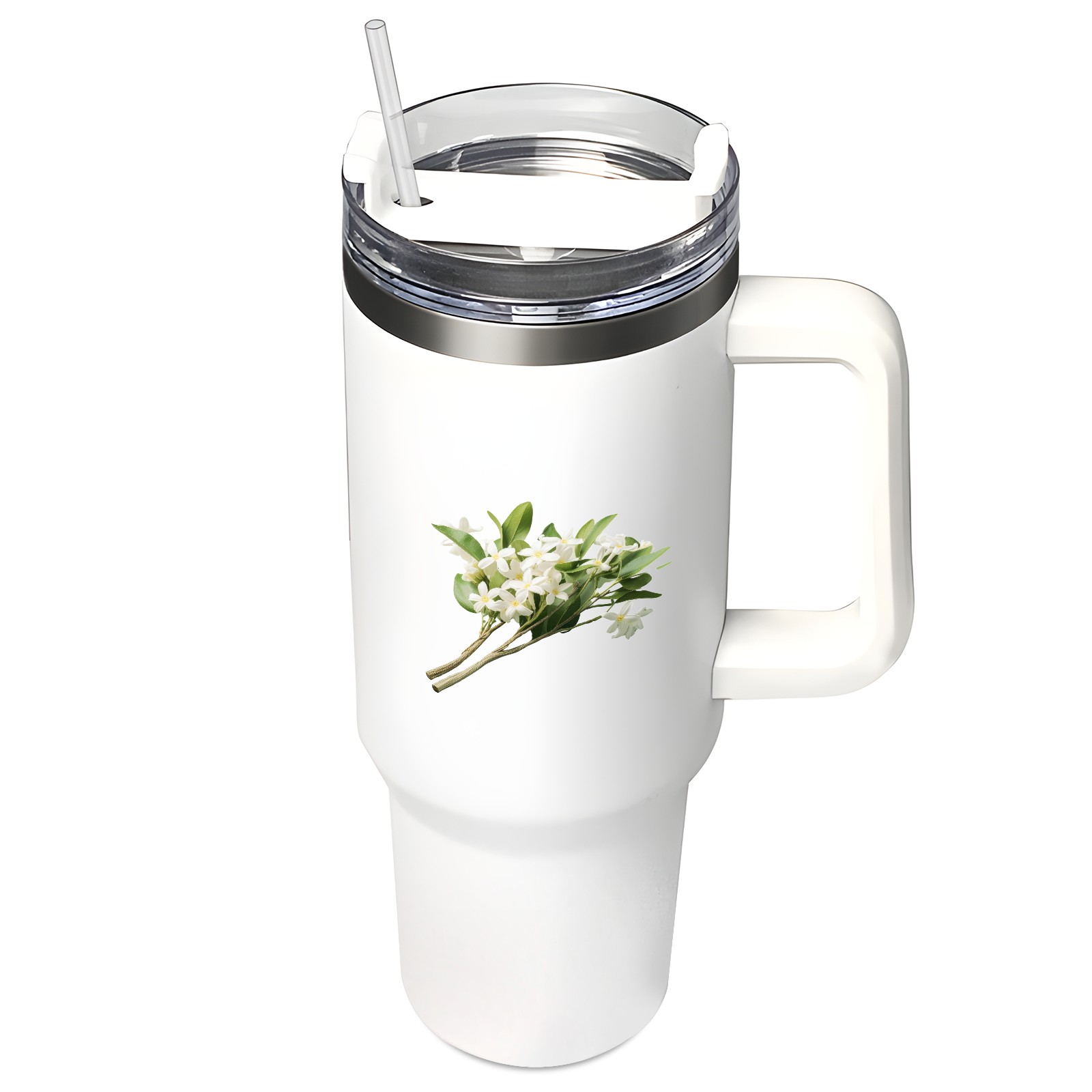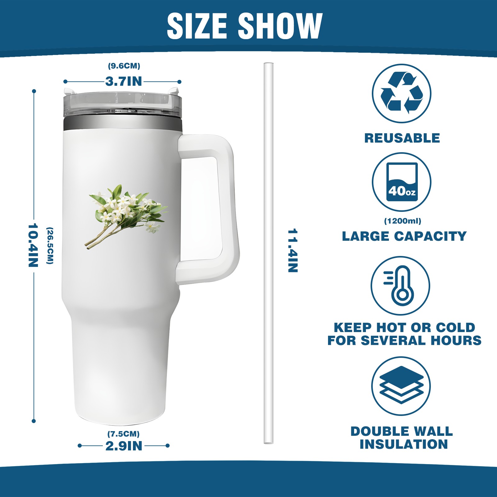 40oz Tumbler with Straw Lid , Handle& Double Wall Vacuum Insulated Cup Reusable Stainless Steel Bottle Trave Mug coffee tumblers BPA Powder Coated Flower (144)