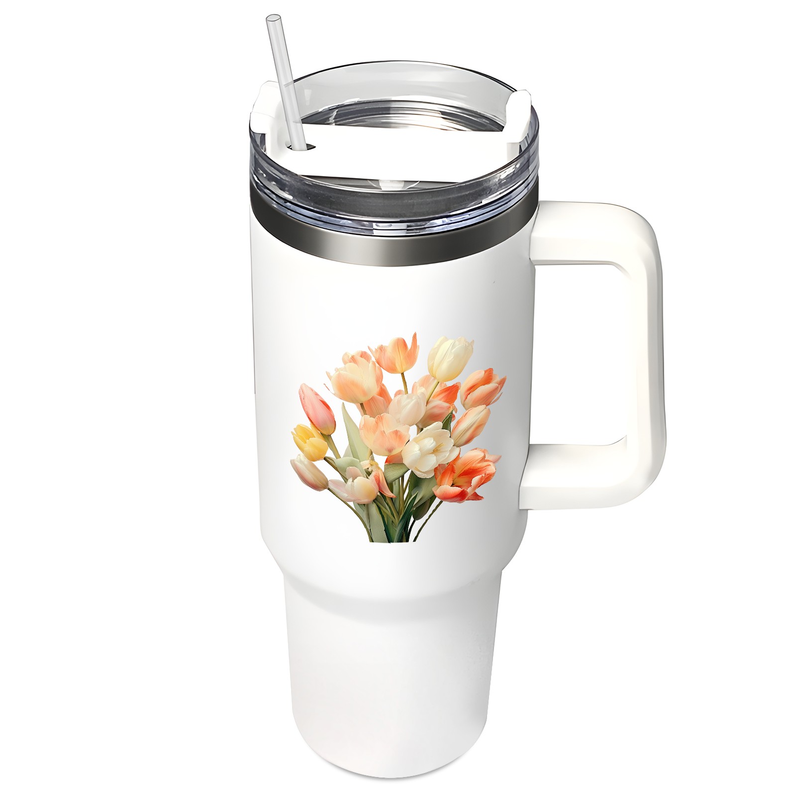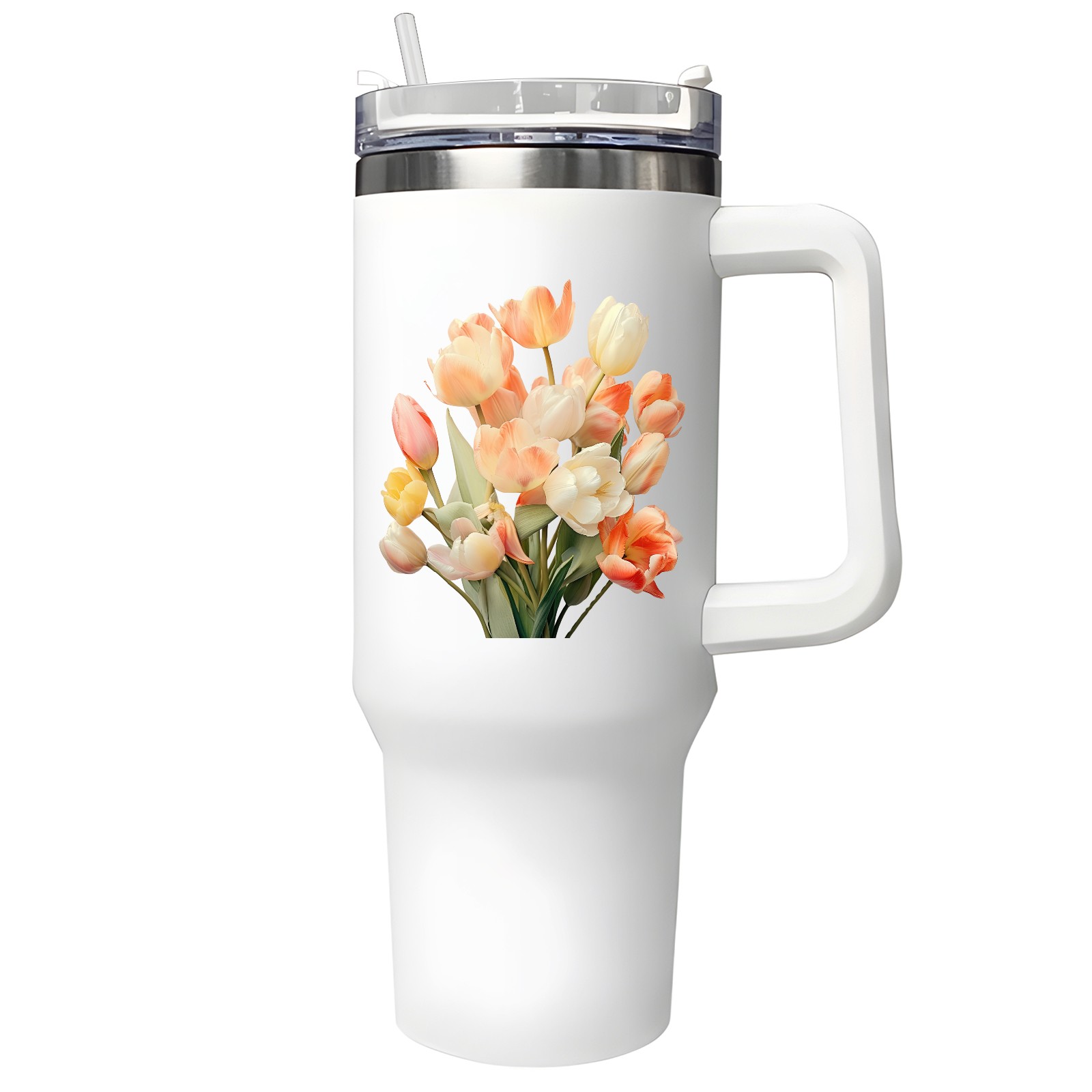40oz Tumbler with Straw Lid , Handle& Double Wall Vacuum Insulated Cup Reusable Stainless Steel Bottle Trave Mug coffee tumblers BPA Powder Coated Flower (140)
