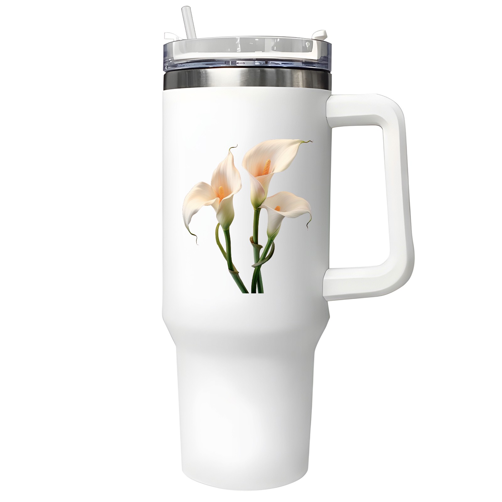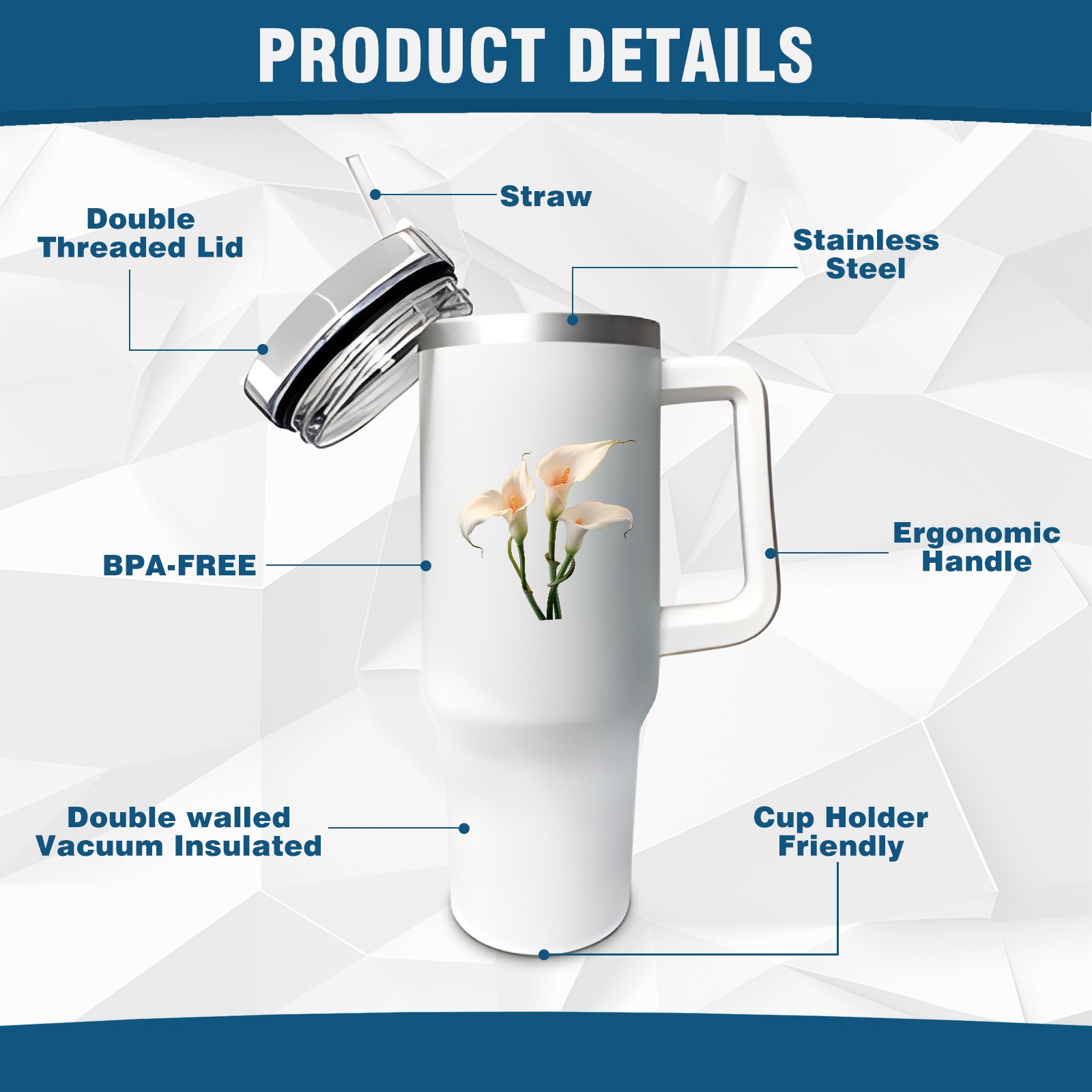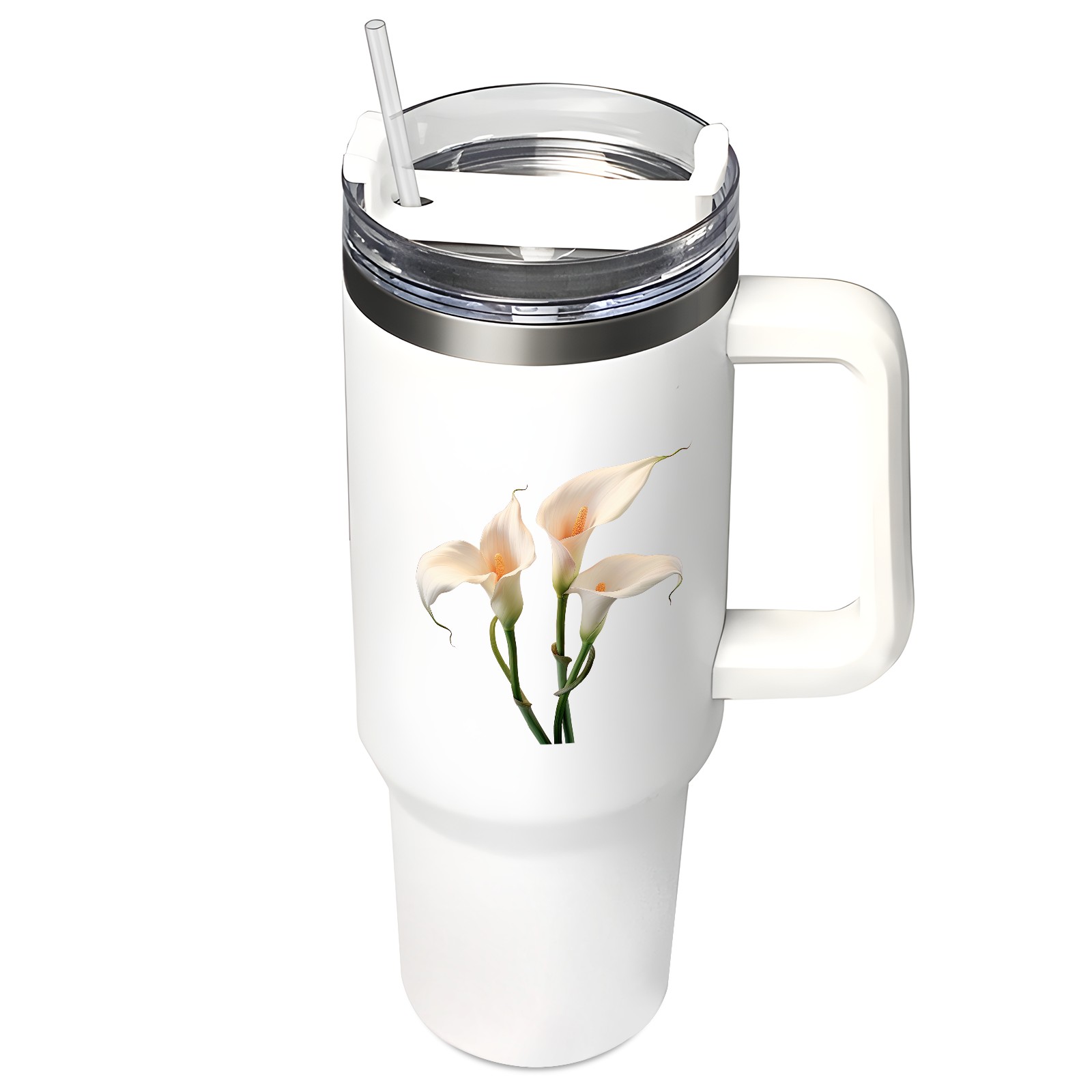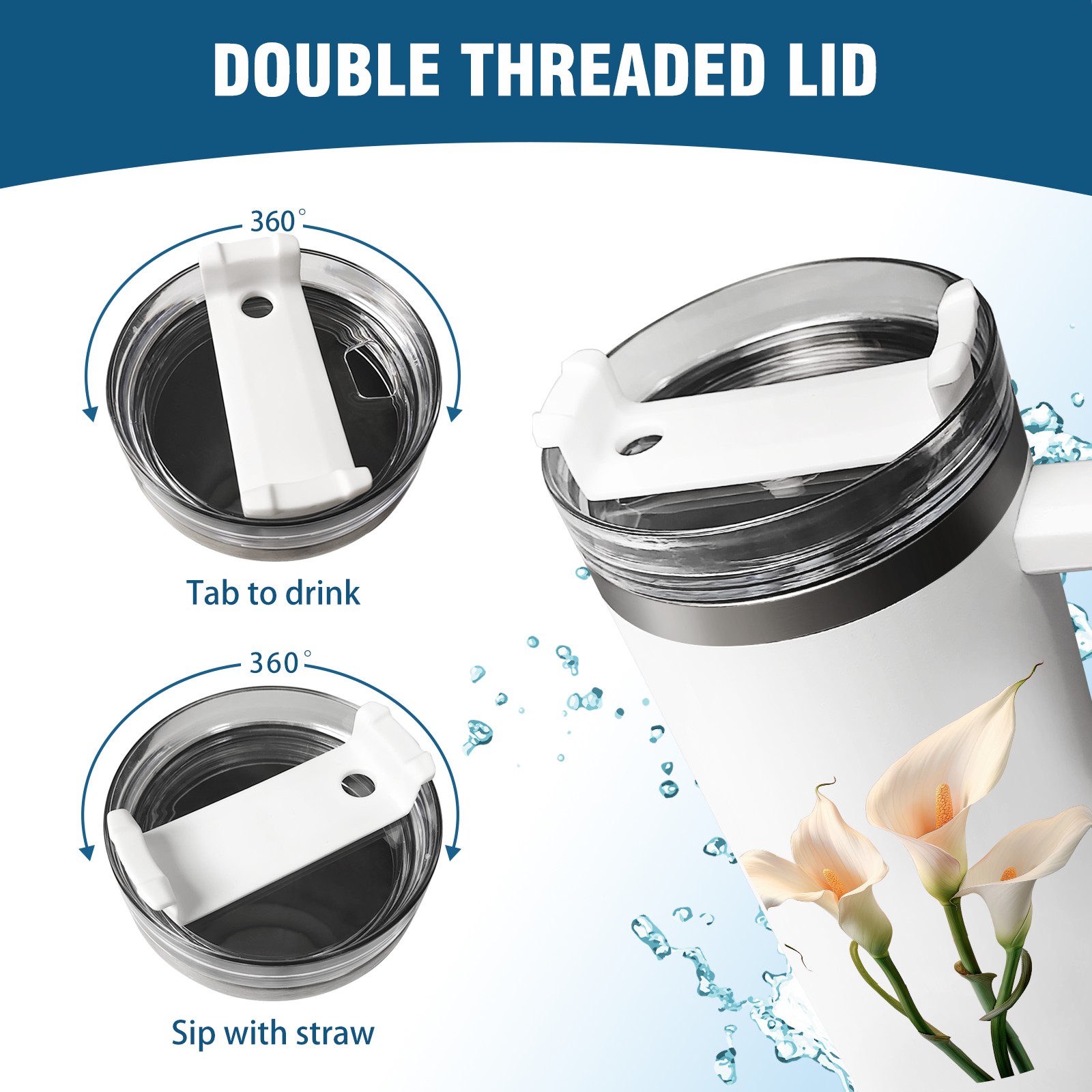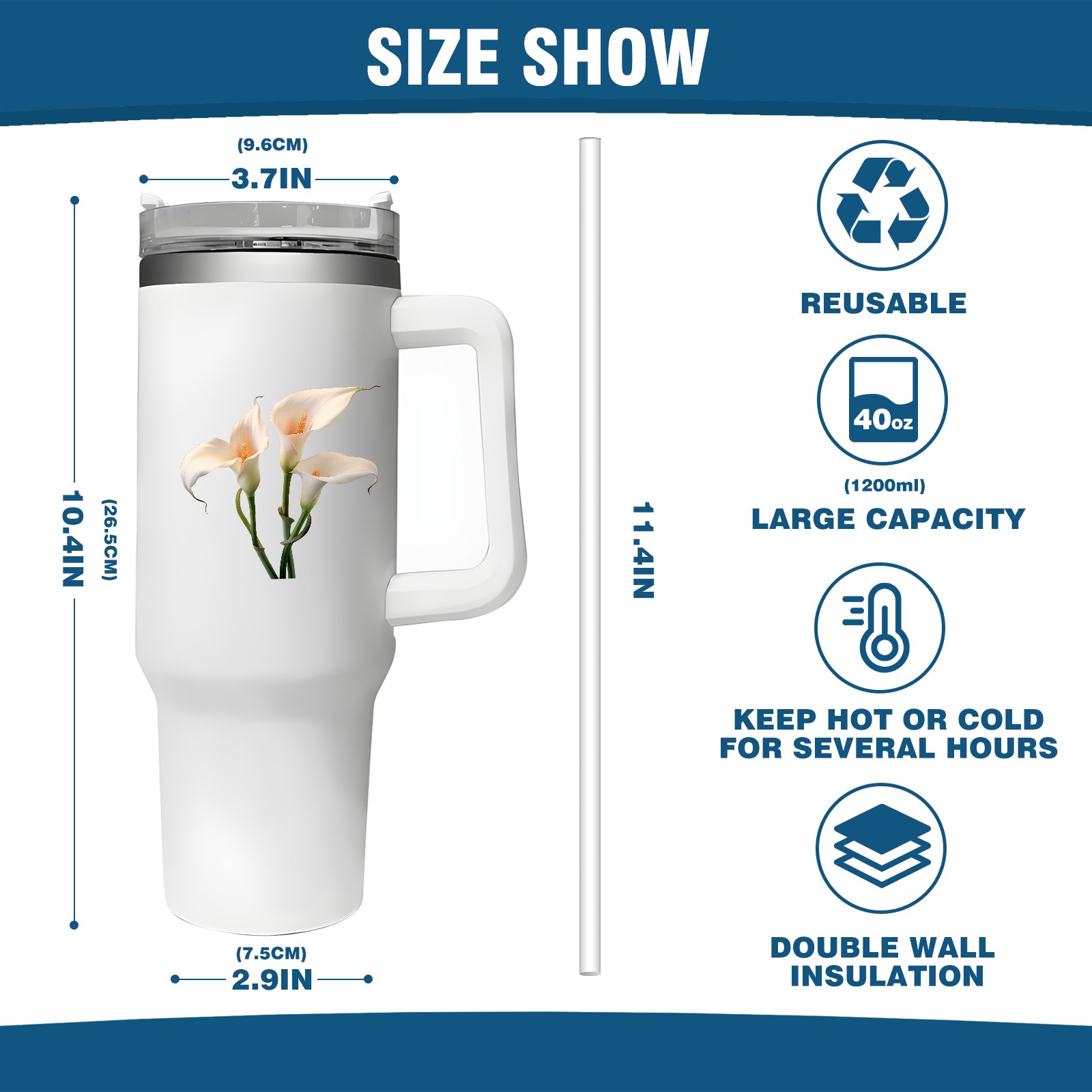 40oz Tumbler with Straw Lid , Handle& Double Wall Vacuum Insulated Cup Reusable Stainless Steel Bottle Trave Mug coffee tumblers BPA Powder Coated Flower (136)