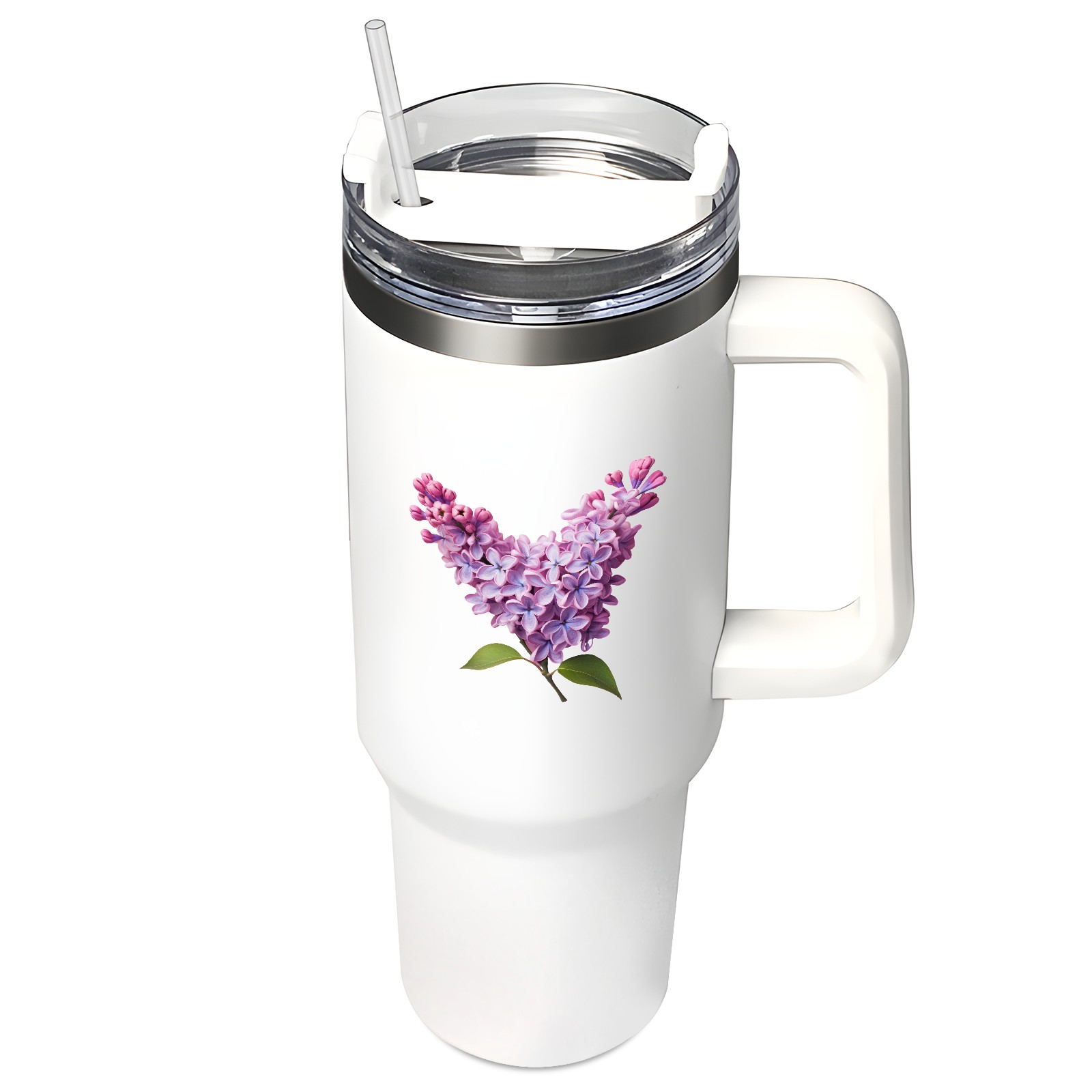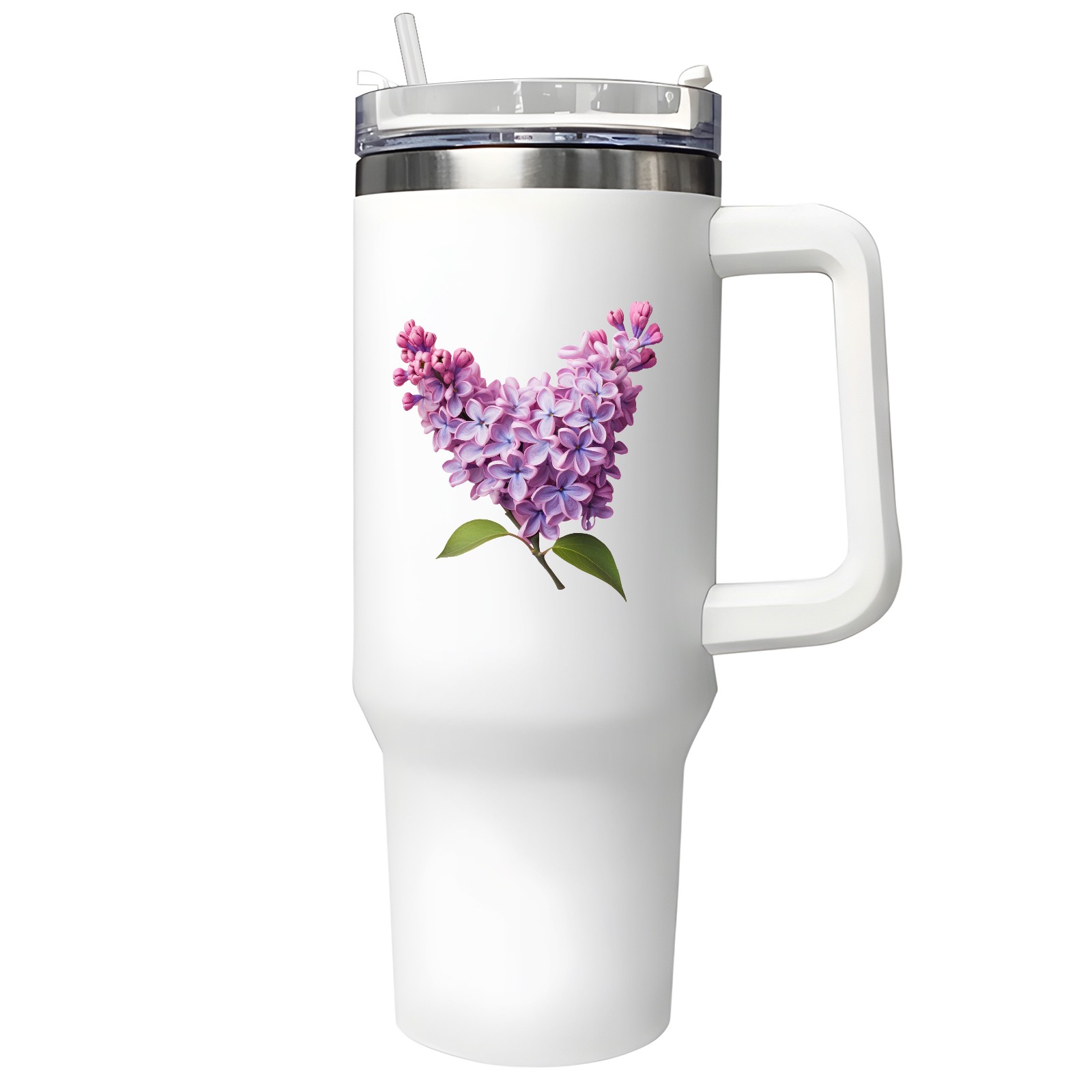 40oz Tumbler with Straw Lid , Handle& Double Wall Vacuum Insulated Cup Reusable Stainless Steel Bottle Trave Mug coffee tumblers BPA Powder Coated Flower (126)