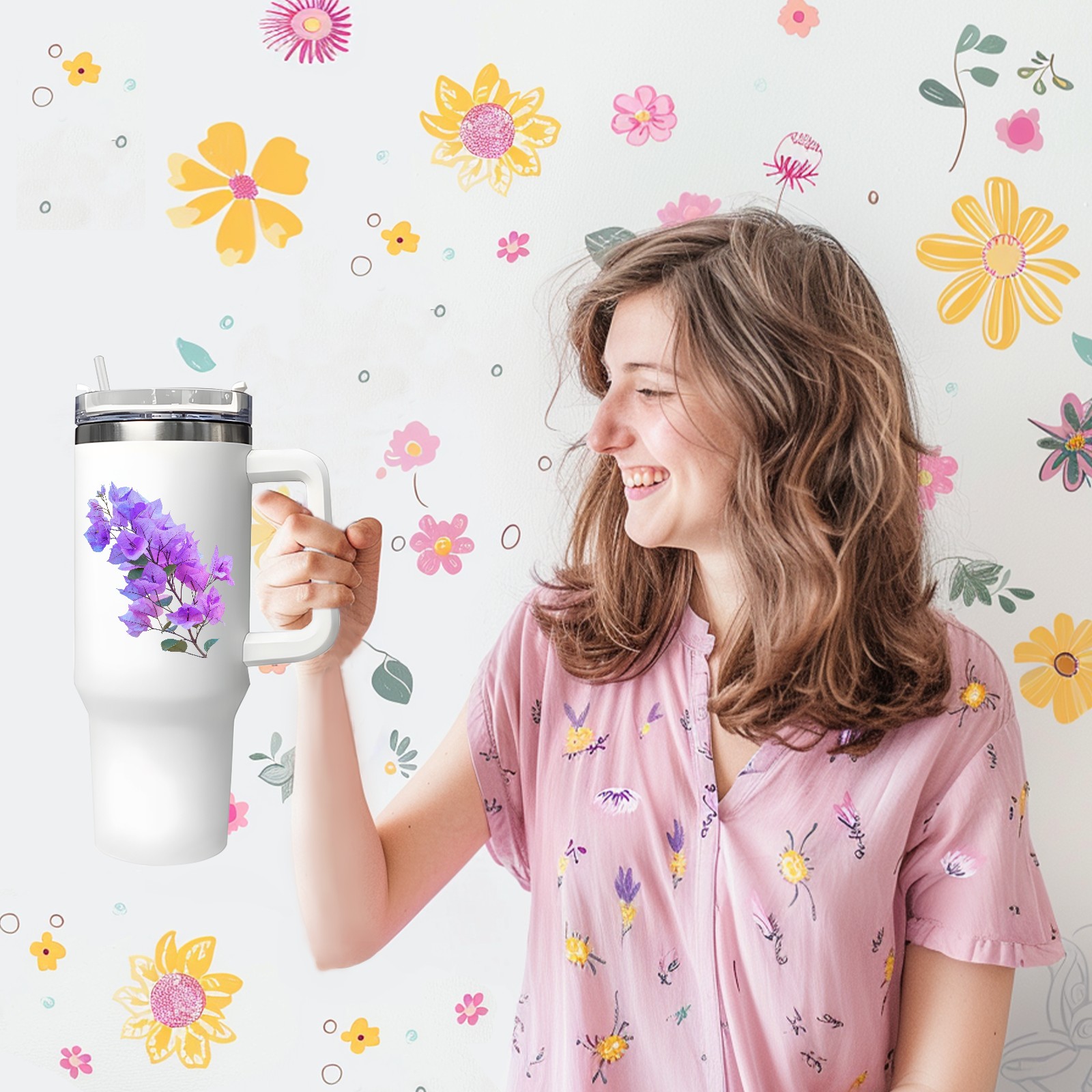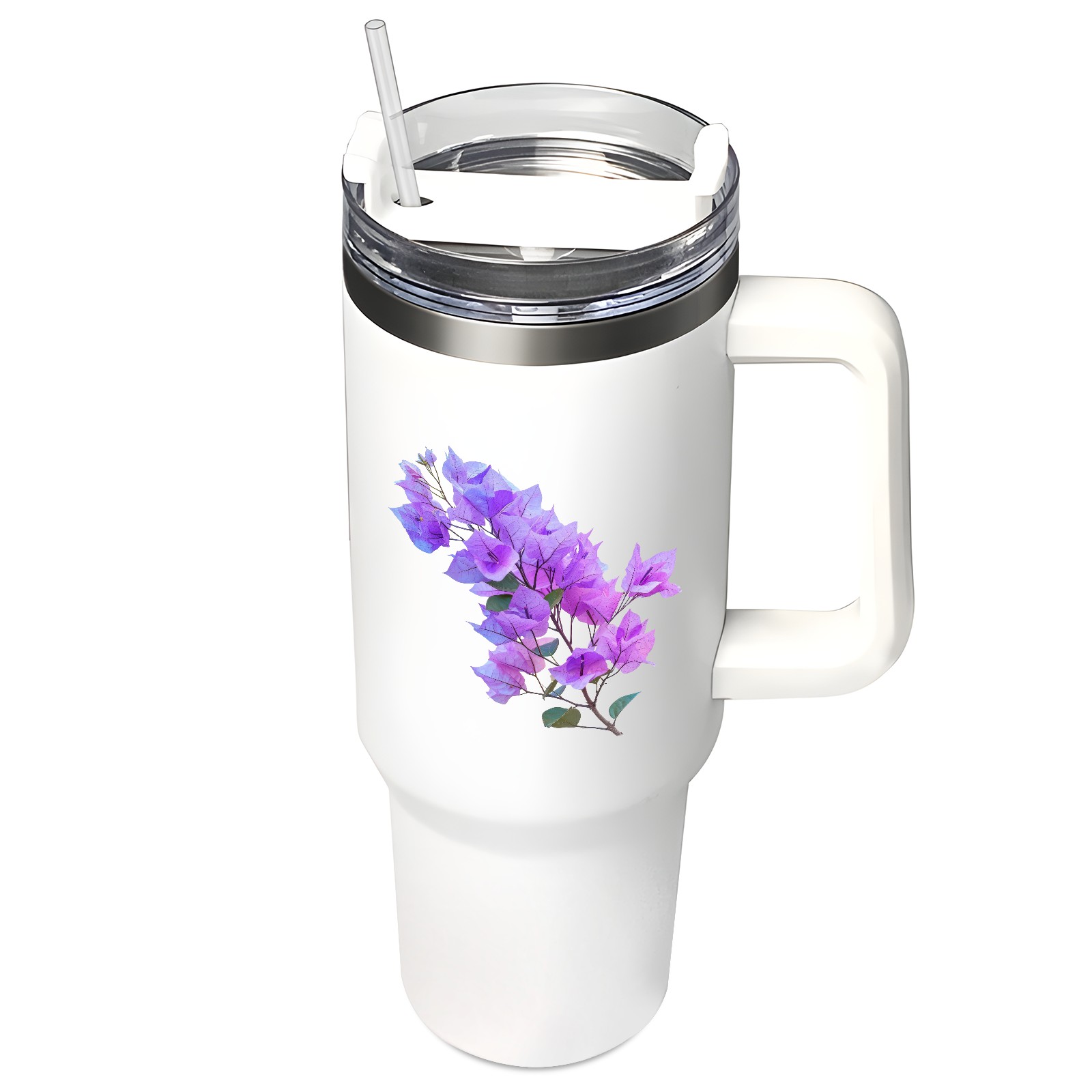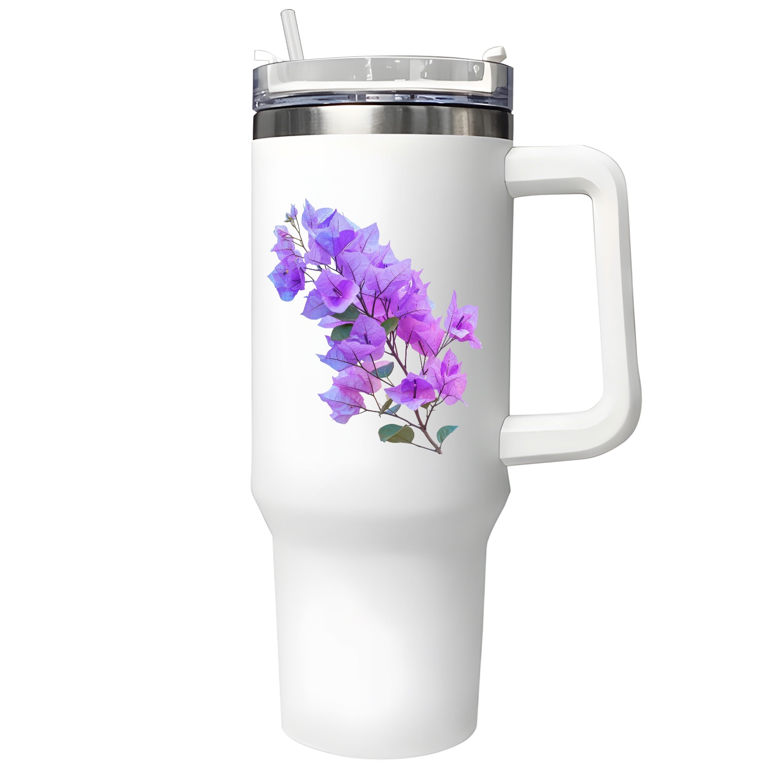 40oz Tumbler with Straw Lid , Handle& Double Wall Vacuum Insulated Cup Reusable Stainless Steel Bottle Trave Mug coffee tumblers BPA Powder Coated Flower (122)