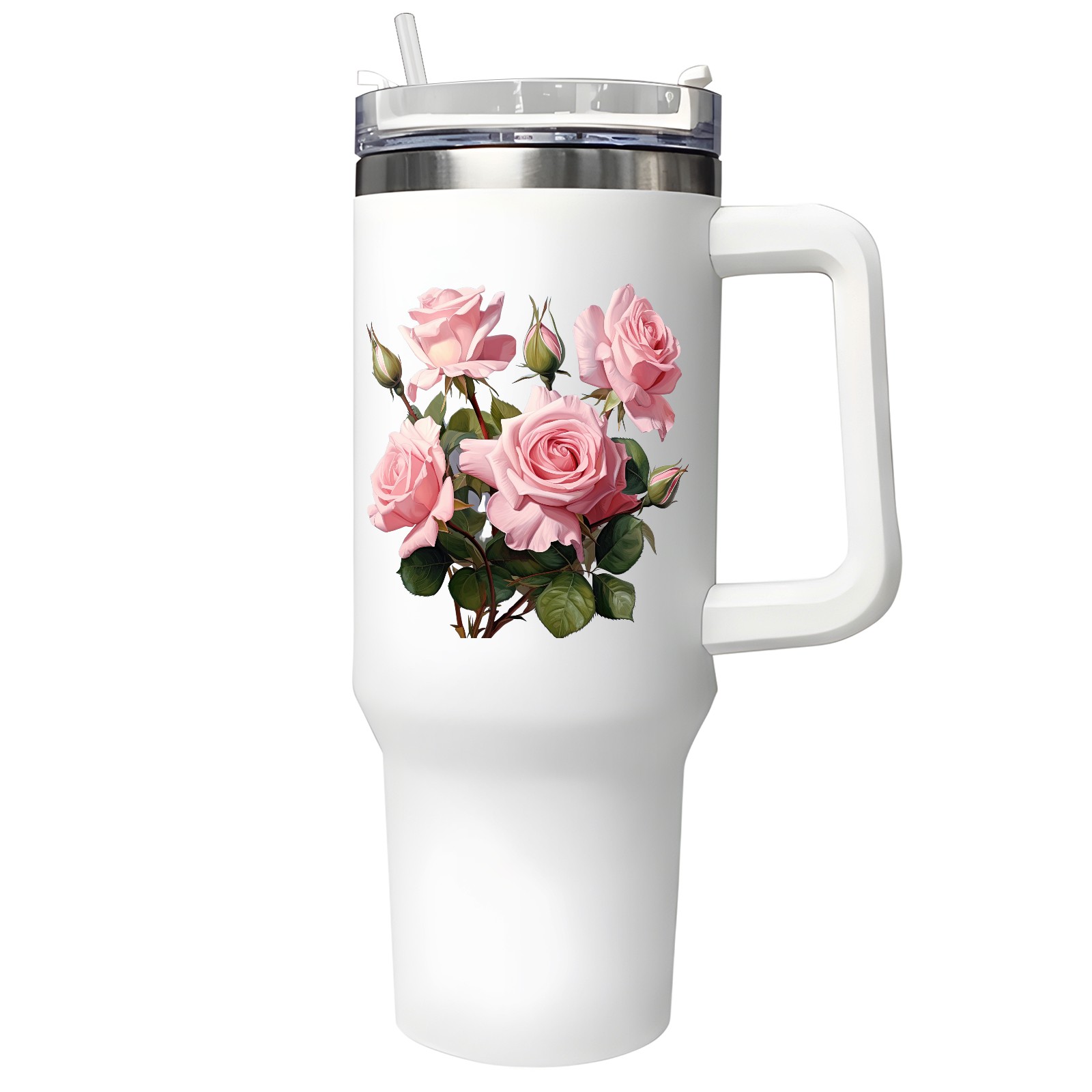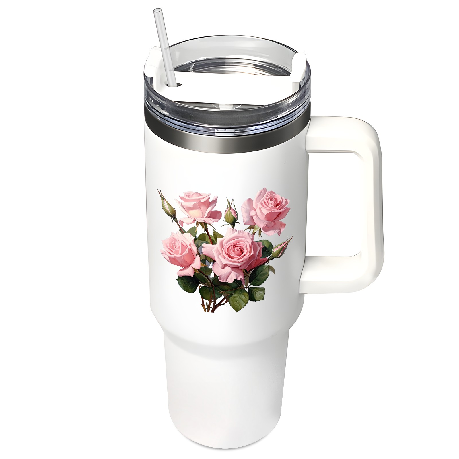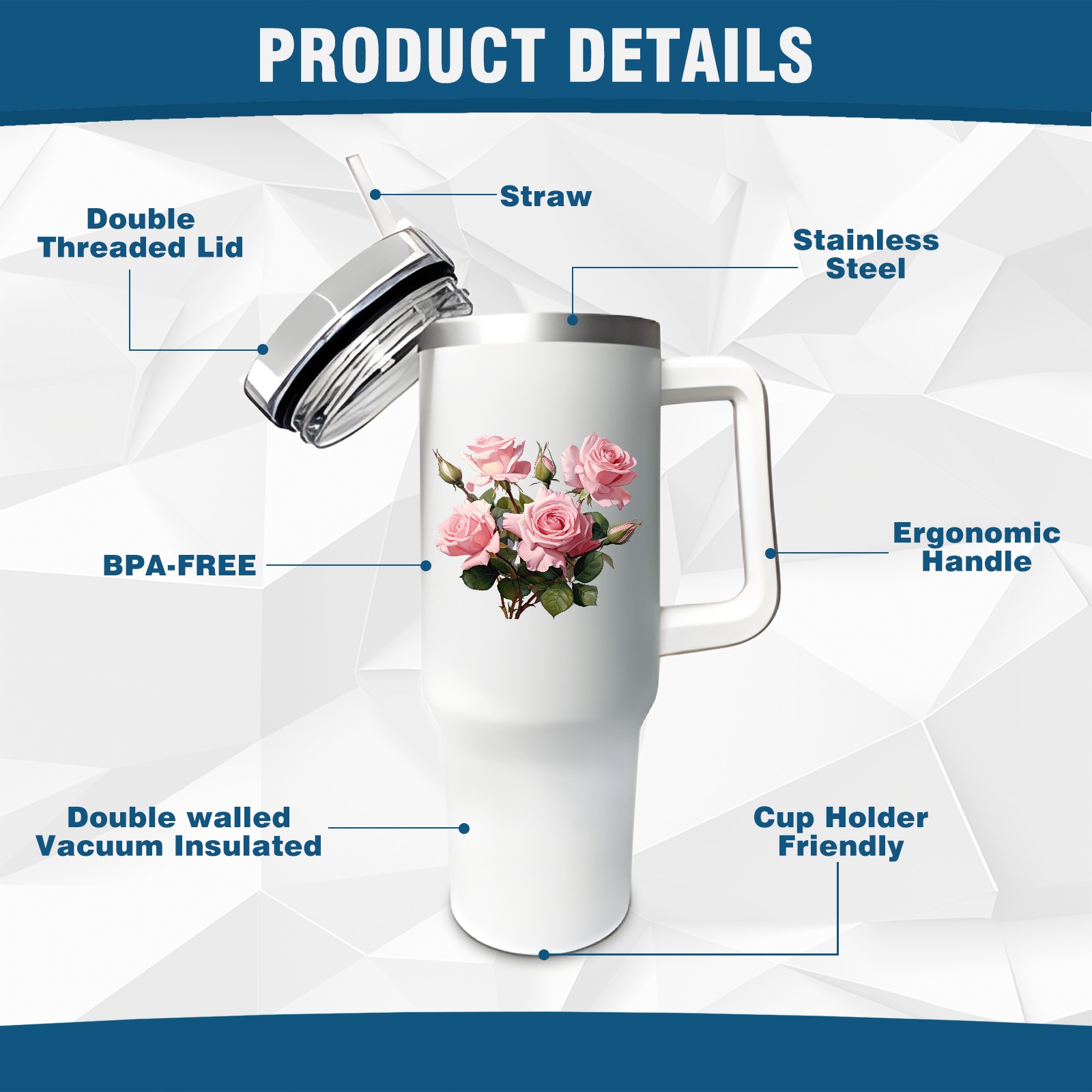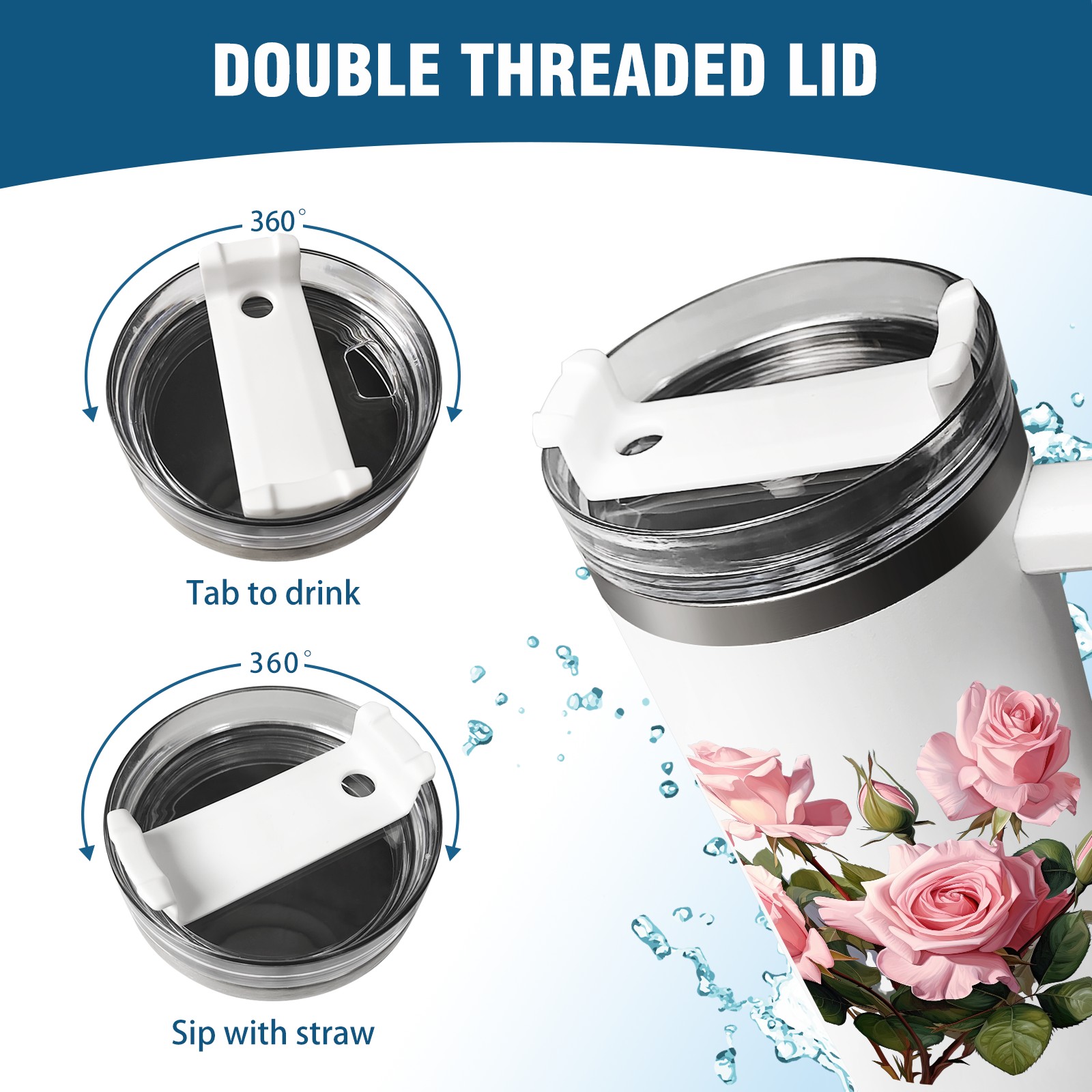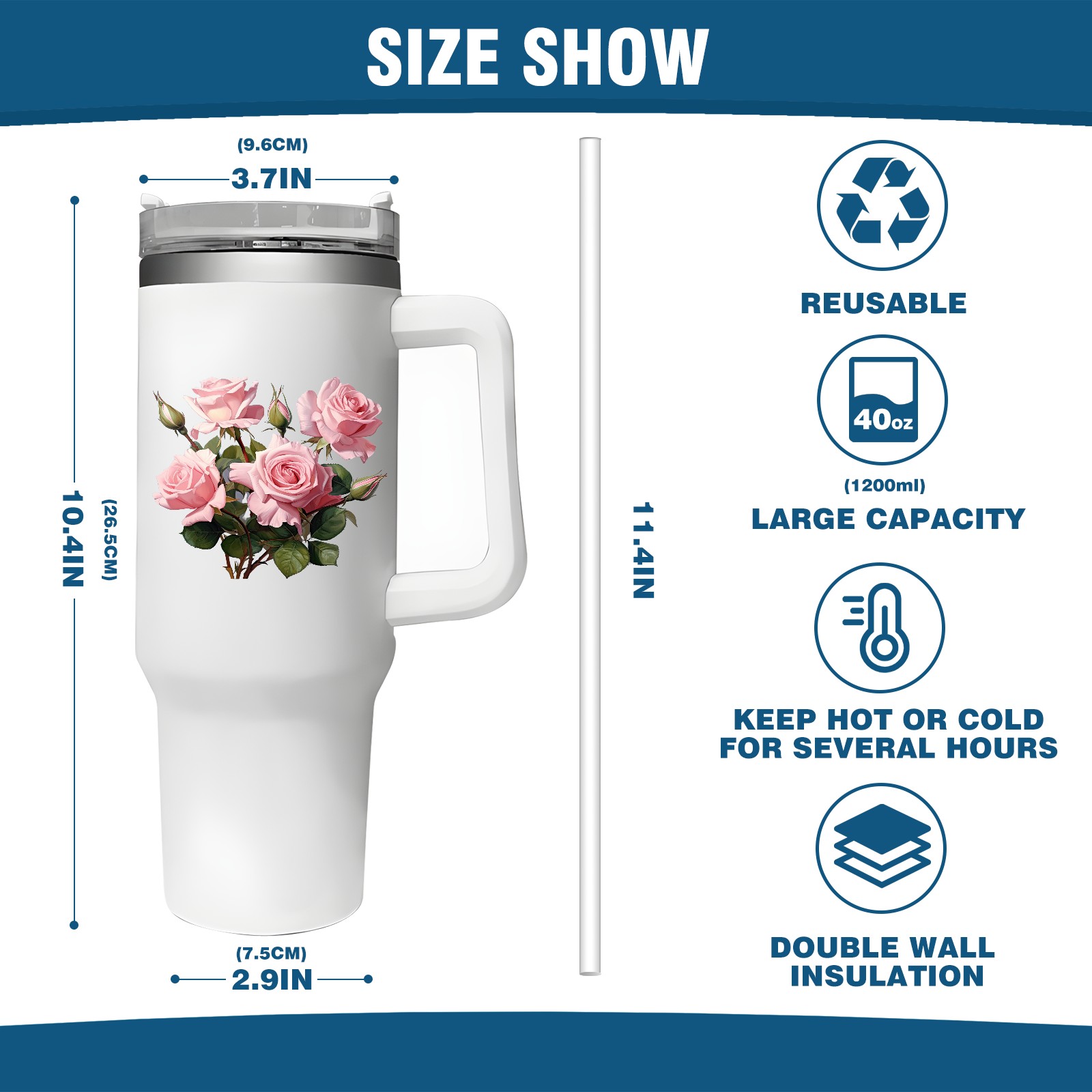 40oz Tumbler with Straw Lid , Handle& Double Wall Vacuum Insulated Cup Reusable Stainless Steel Bottle Trave Mug coffee tumblers BPA Powder Coated Flower (110)