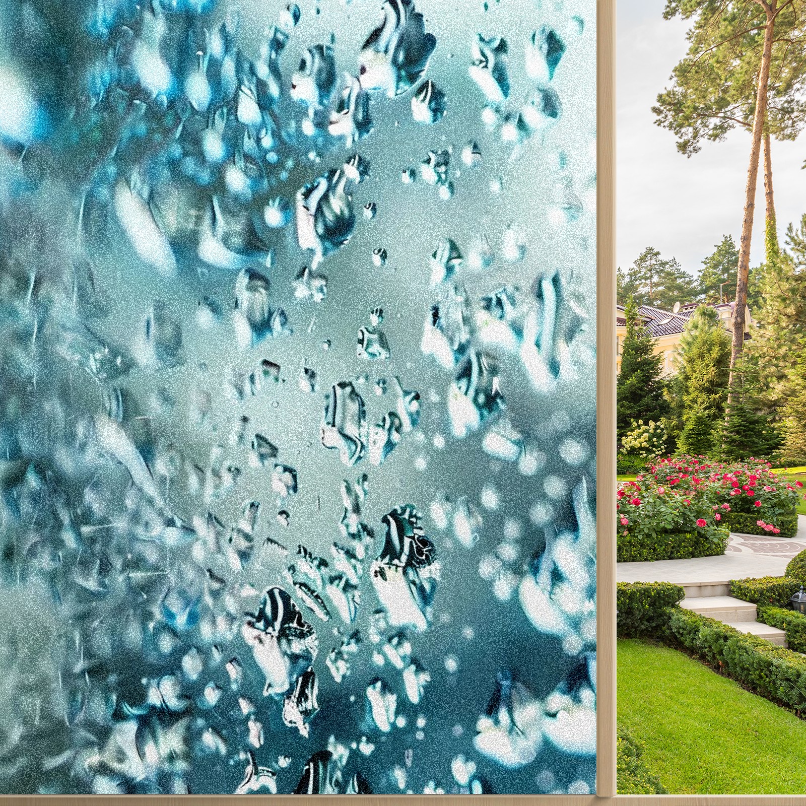 Static Cling Decorative Window Film Frosted Privacy Film Window Clings for Glass Windows No Glue Window Sticker for Bathroom Bedroom Office Water Droplets (2)