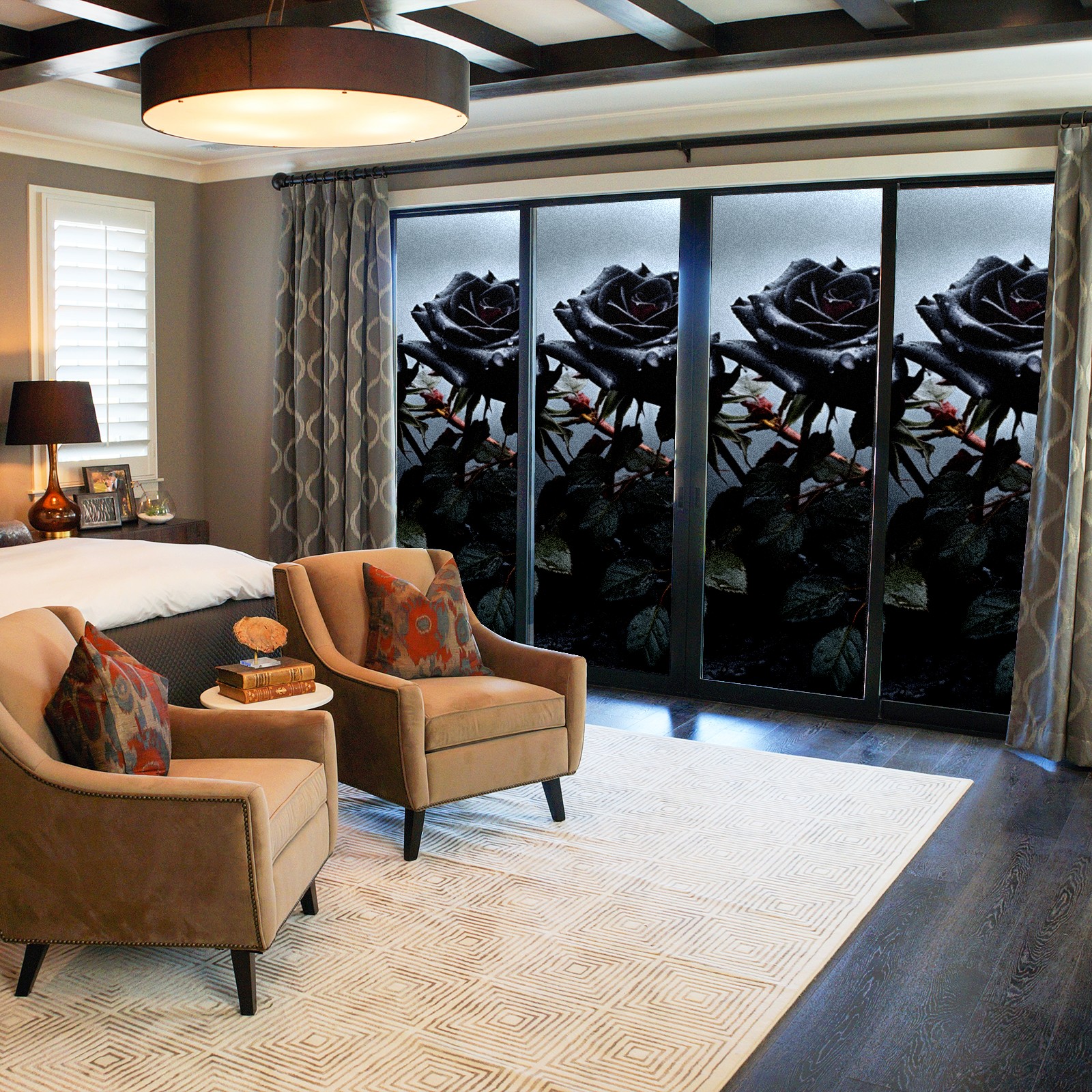 Static Cling Decorative Window Film Frosted Privacy Film Window Clings for Glass Windows No Glue Window Sticker for Bathroom Bedroom Office Roses (4)